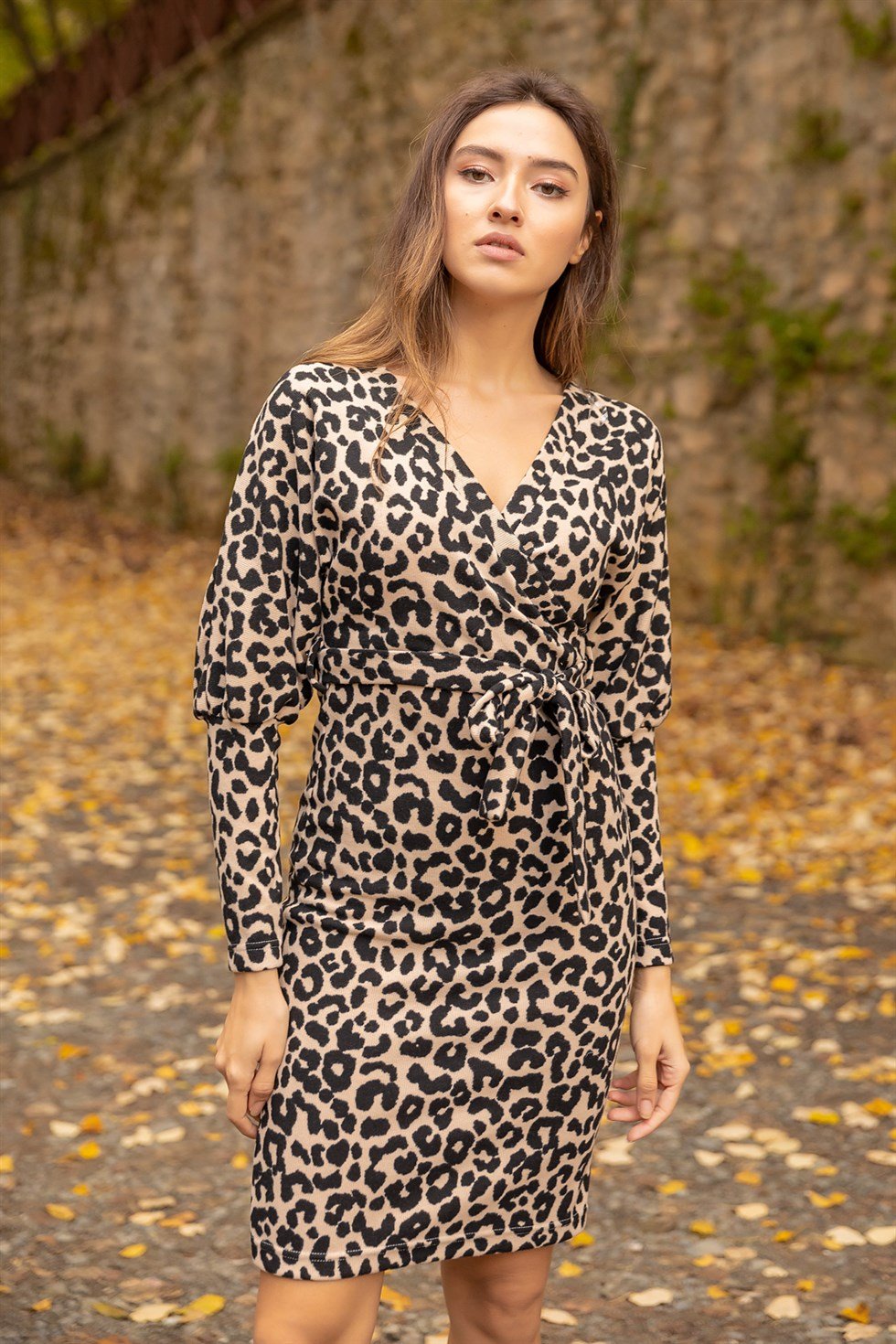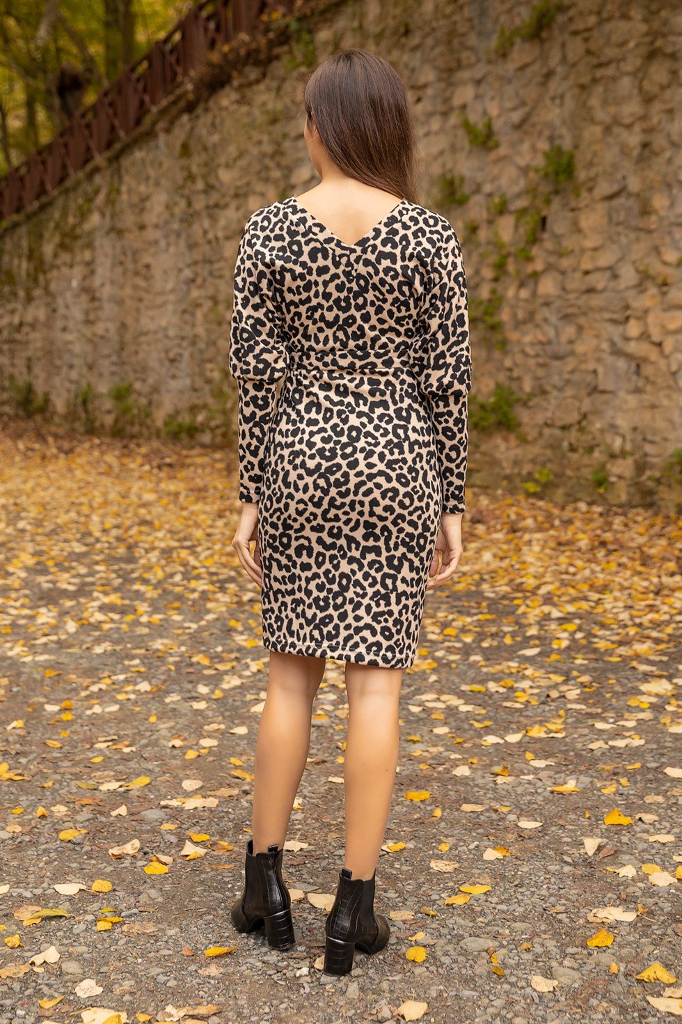 Kruvaze Yaka Zebra Desen Midi Elbise - BEJ (BAW157ELB0100146)