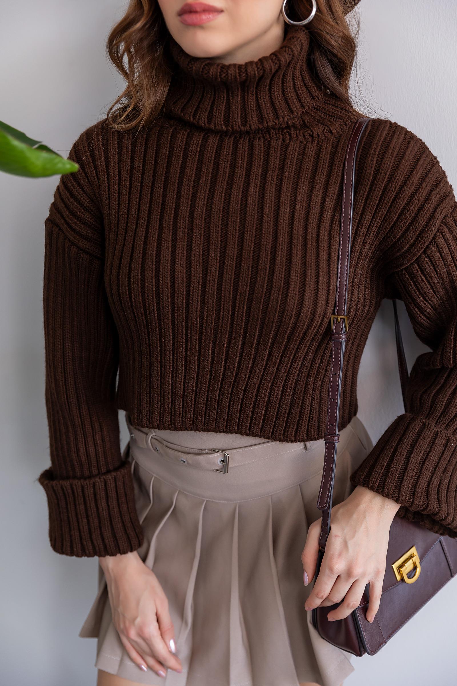 Ürün STD beden olup, 36-42 bedene kadar uyumlu, balıkçı yaka, örgü kumaş, kol uçları katlı, basic, kısa kazak olarak tasarlanmıştır.