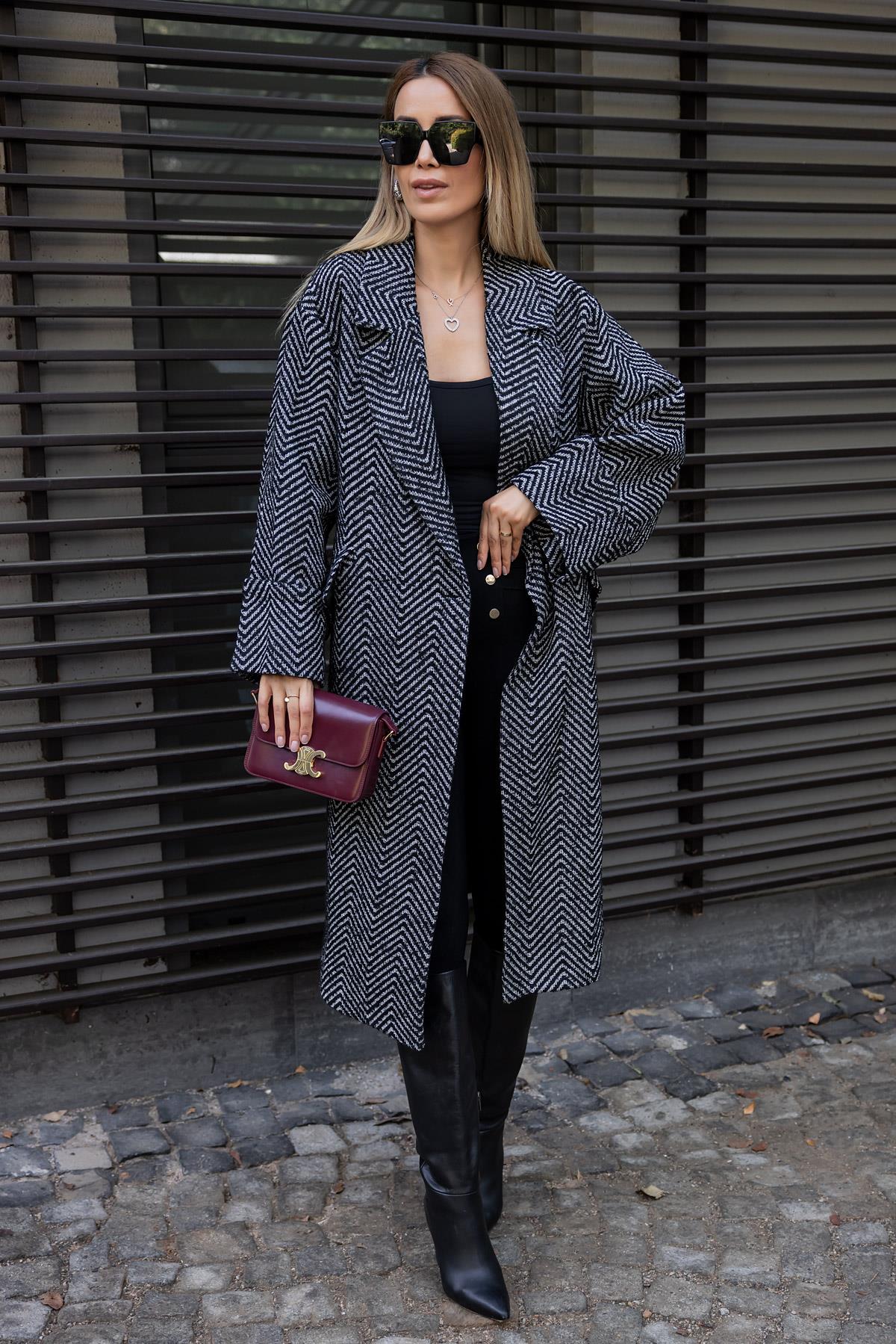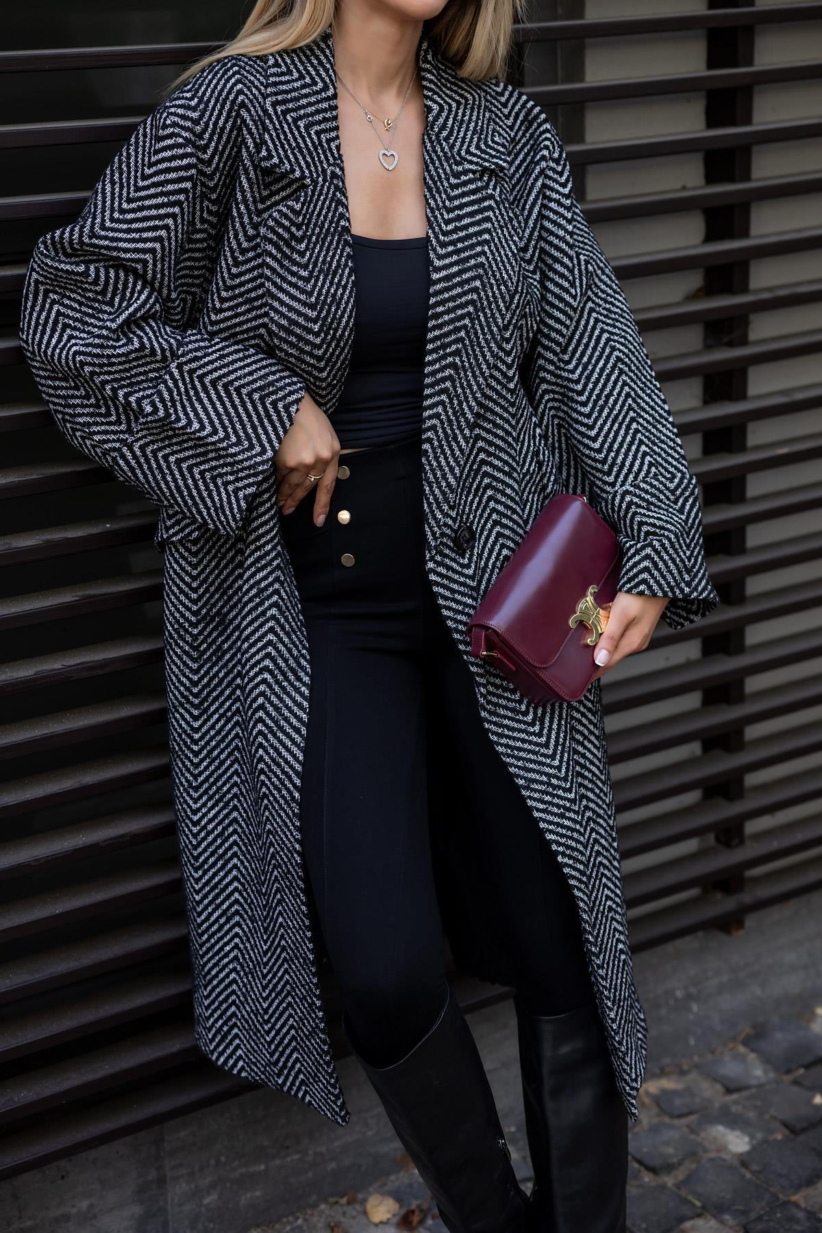 Ürün 34-40 bedene kadar uyumlu, balıksırtı desenli, cepli, asatrlı, uzun, kaşe, kaban olarak tasarlanmıştır.
