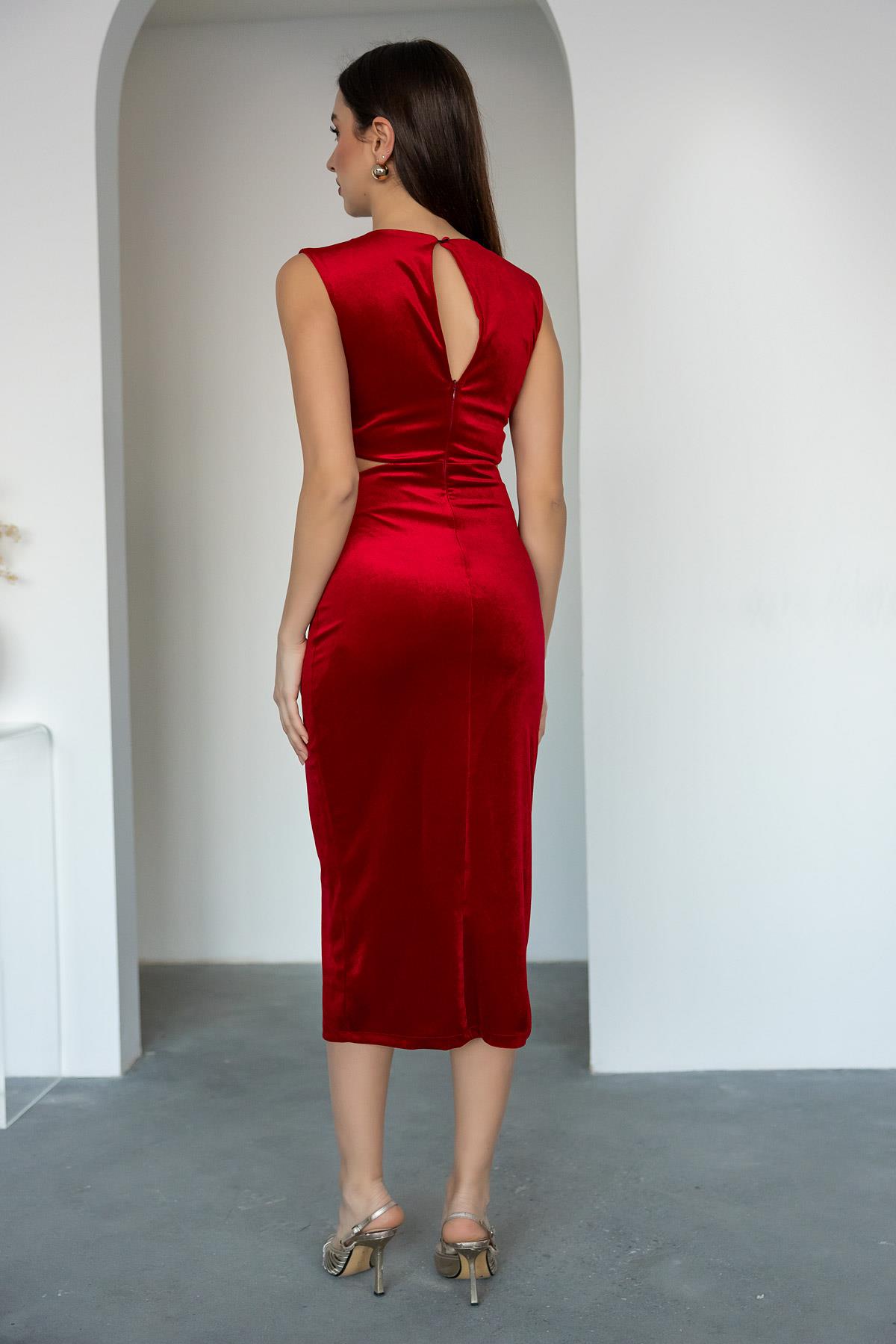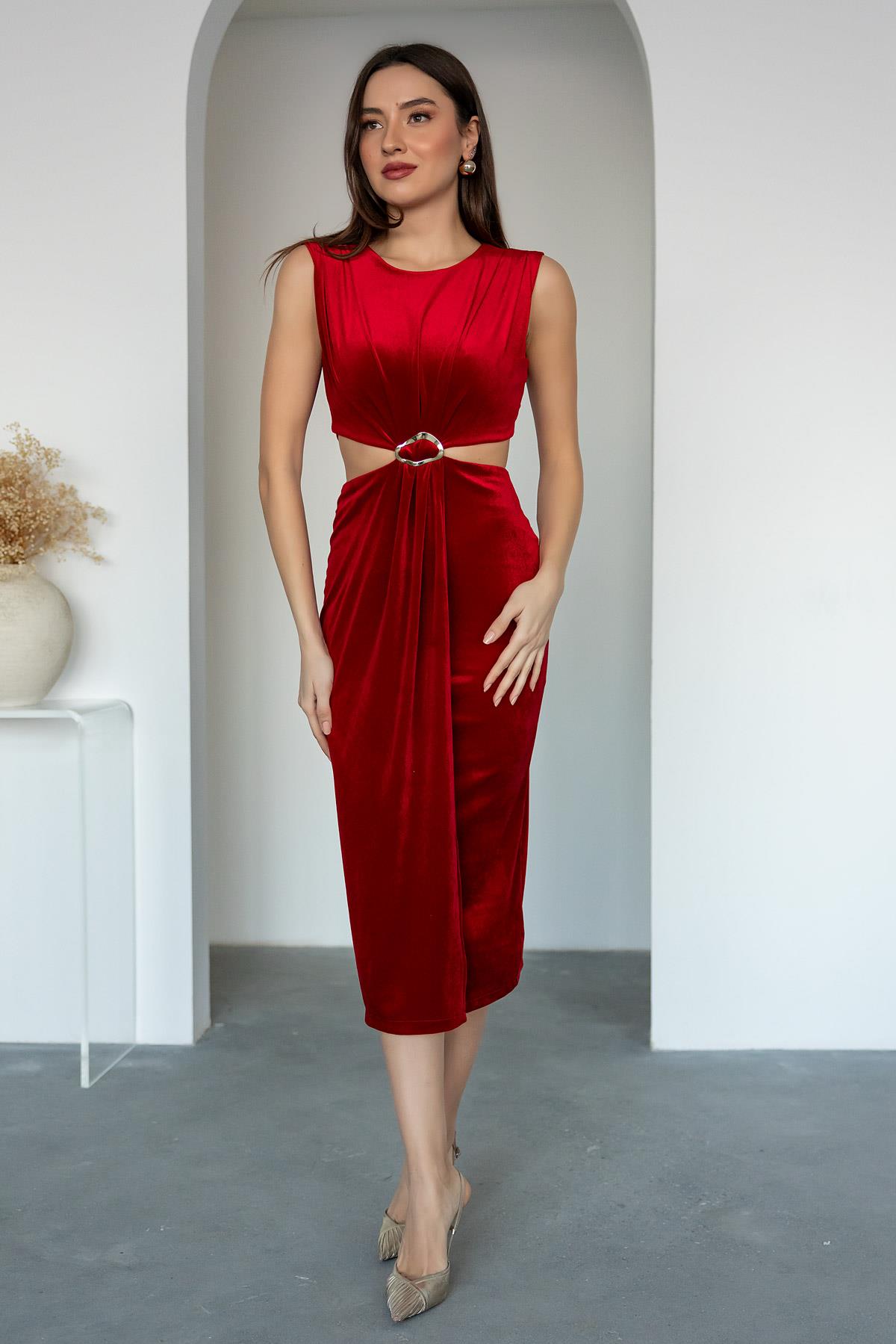 Bel Tokalı Kadife Elbise - BORDO (BEW065ELB0007121)