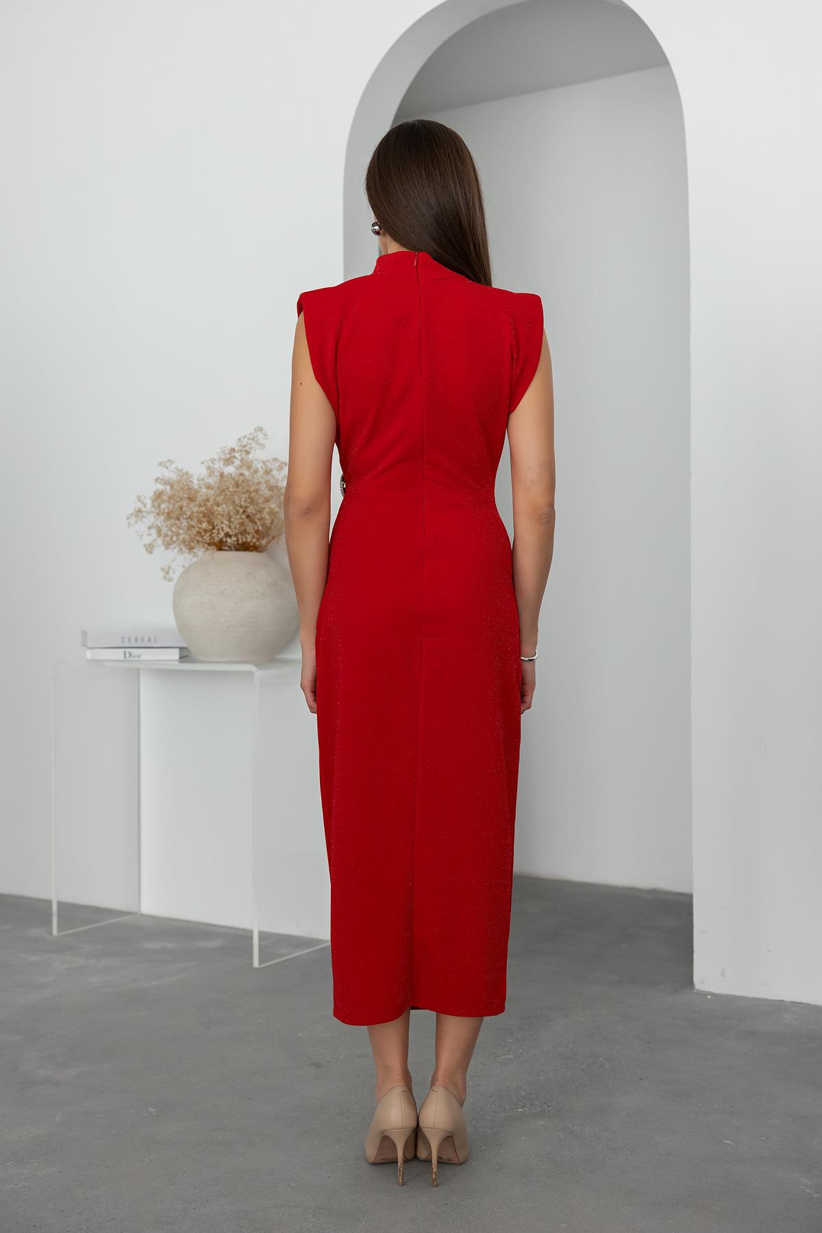Broş Detay Işıltılı Elbise - KIRMIZI (BDS037ELB0041124)