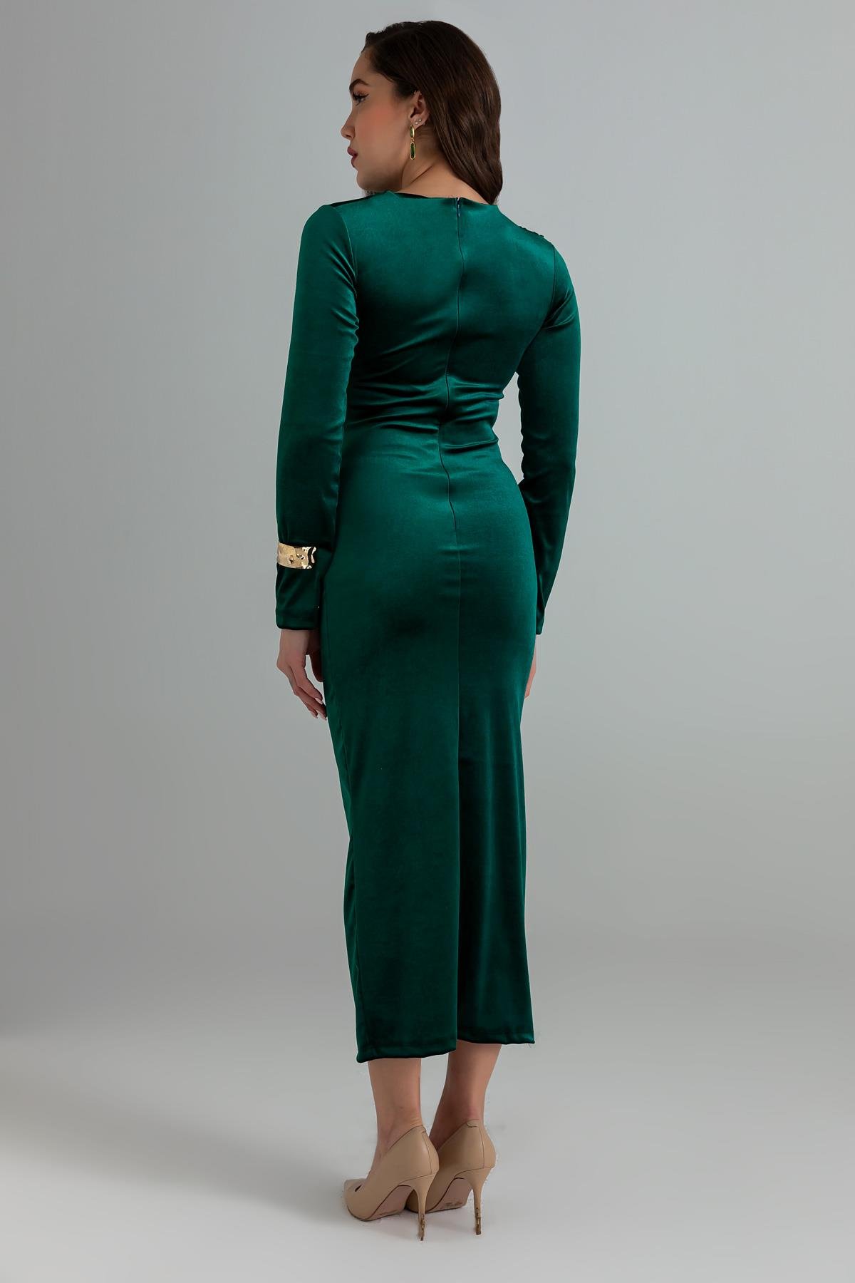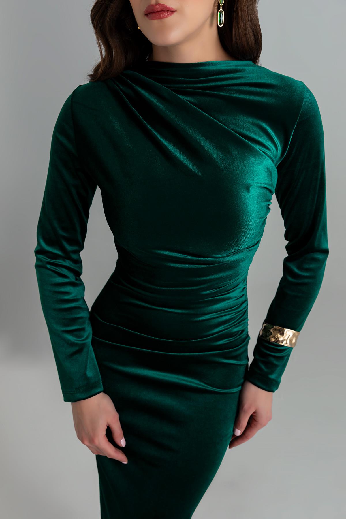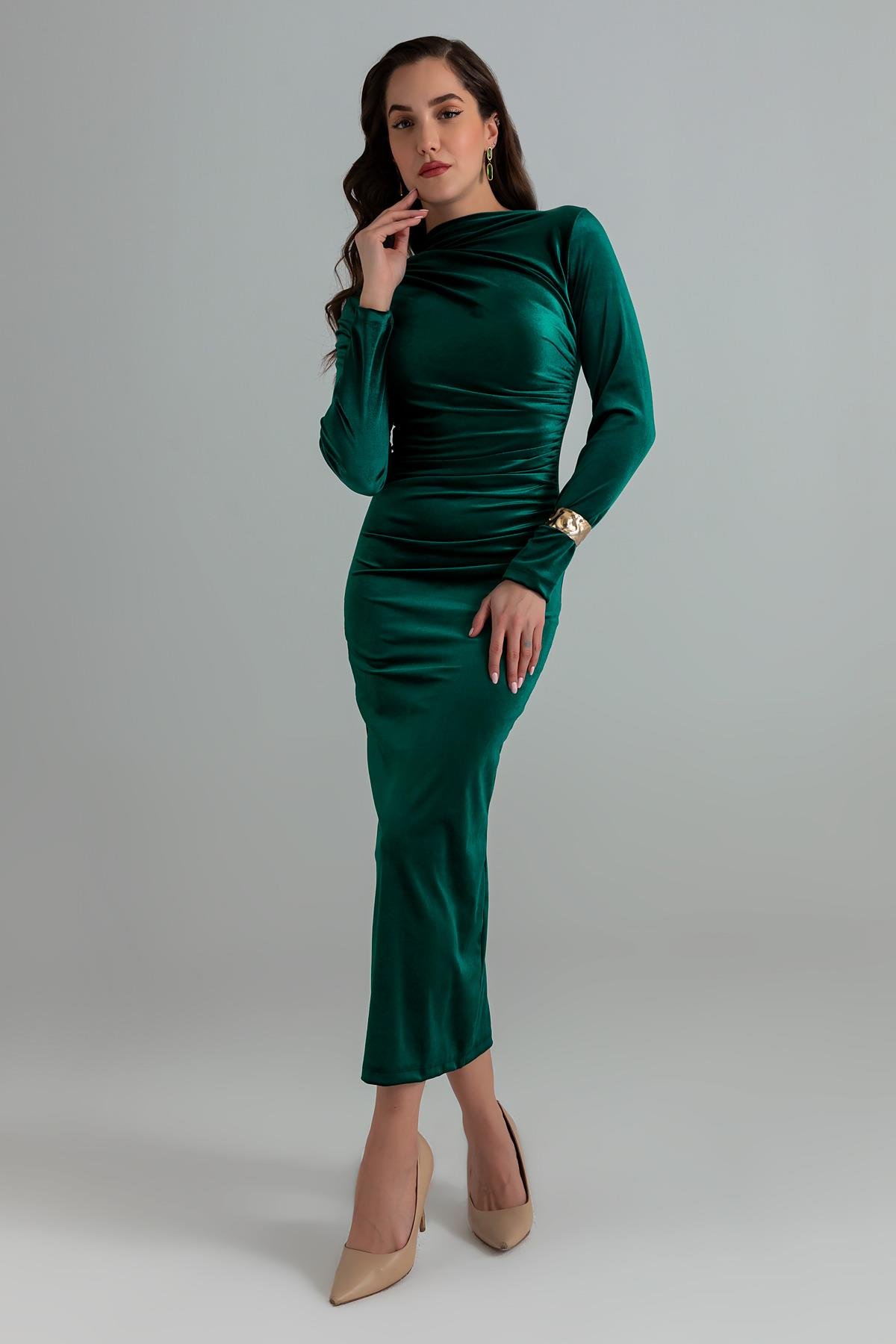 Büzgülü Uzun Kadife Elbise - ZÜMRÜT YEŞİL (BEW065ELB0008201)
