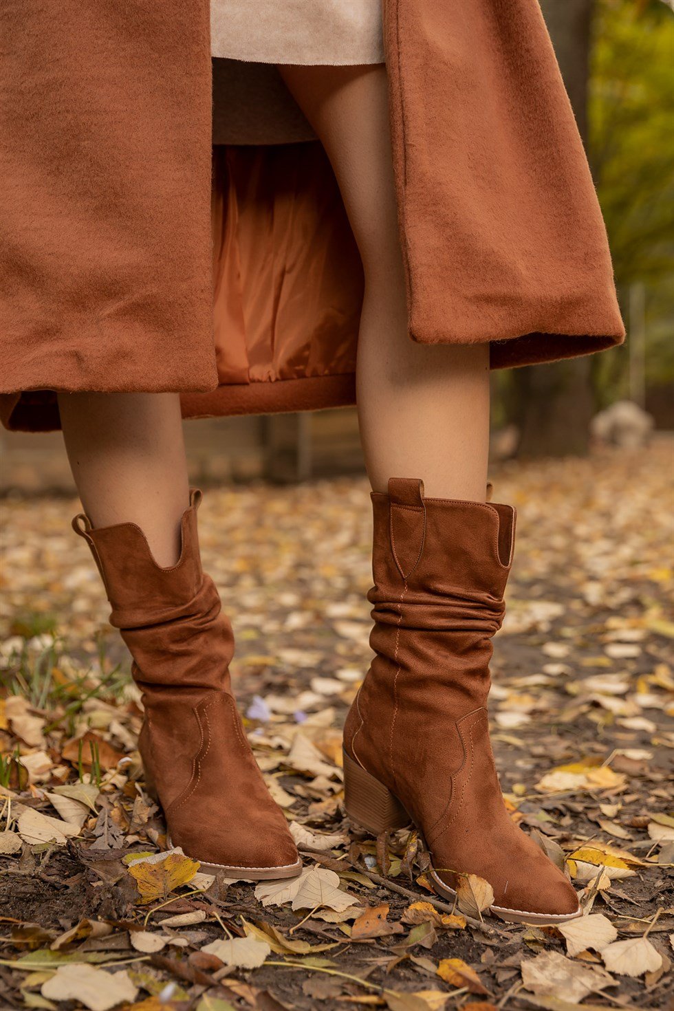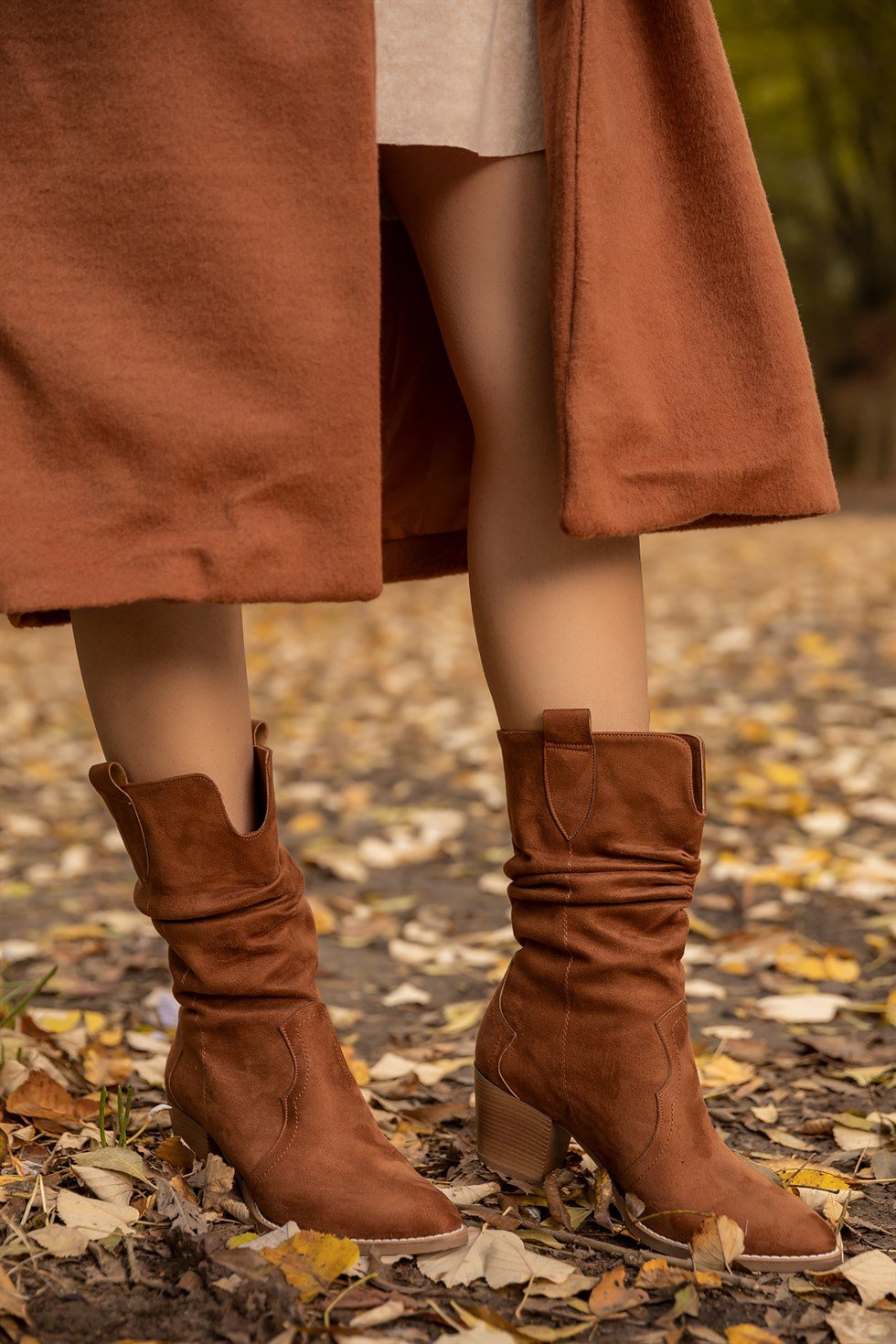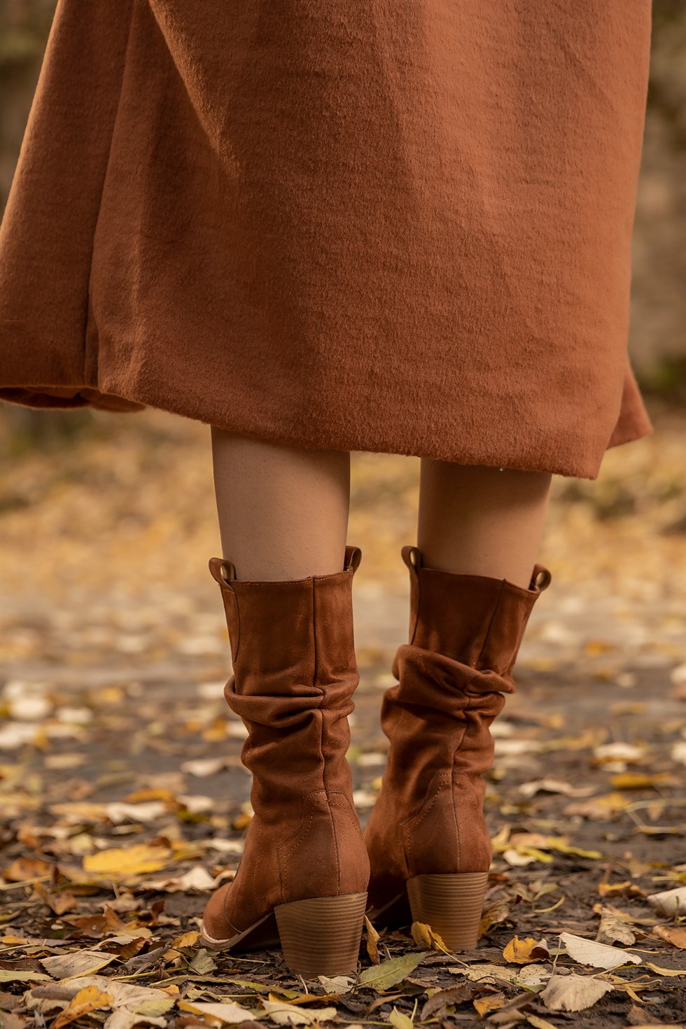 Büzgülü Western Süet Çizme - TABA (BAW277AYK0016143)