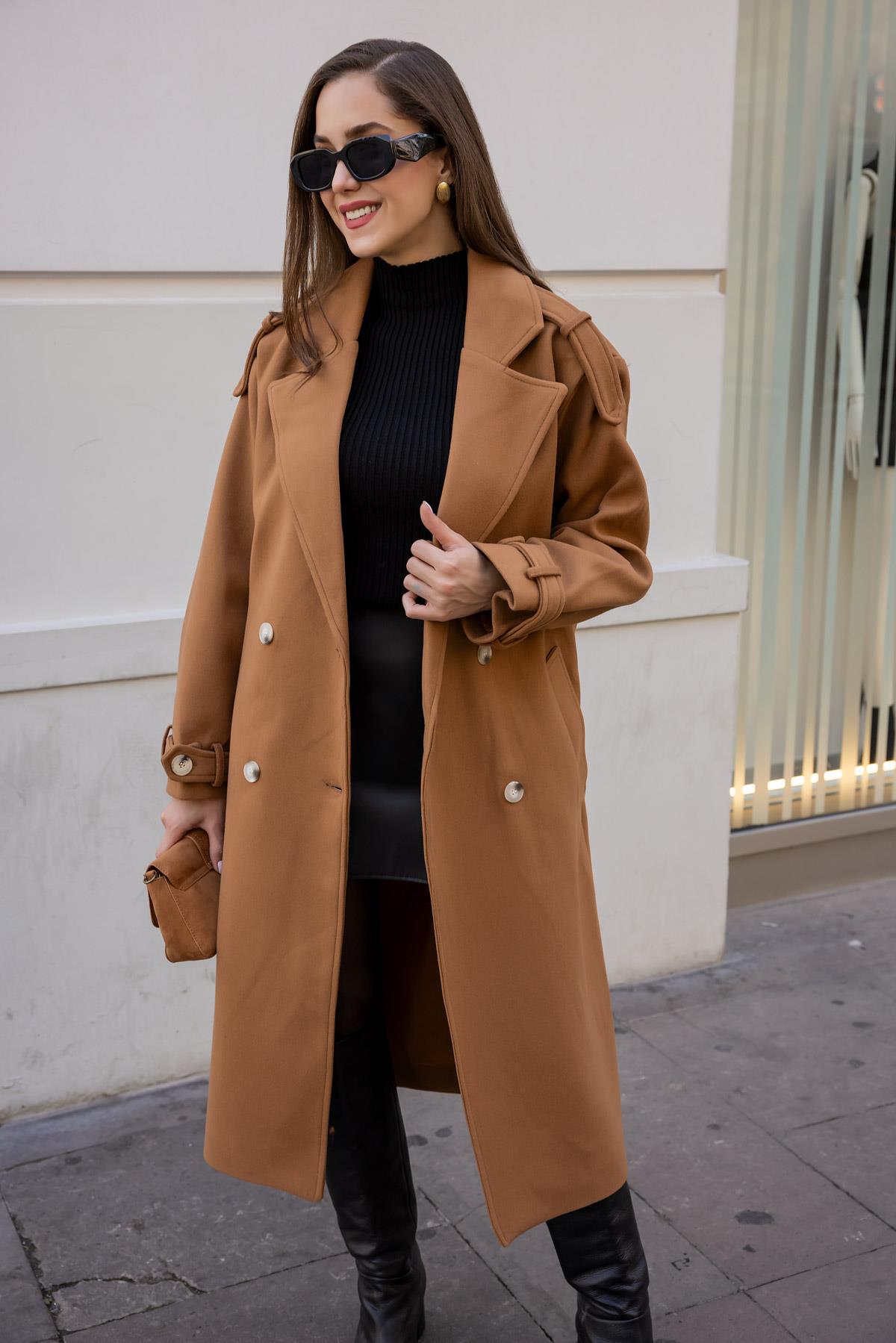 Çift Düğmeli Kaşe Kaban - TABA (BEW182KBN0005143)