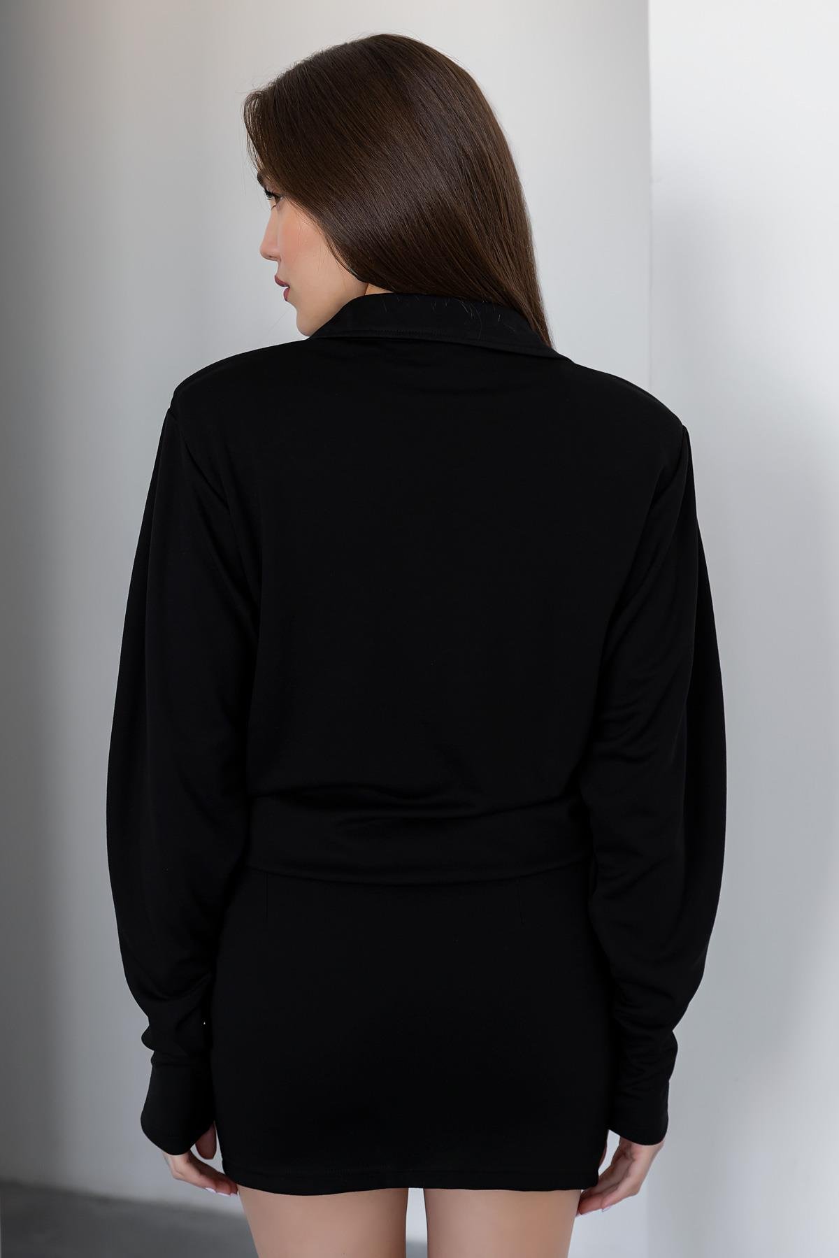 Düğme Kapamalı Mini Elbise - SİYAH (BEW515ELB0001100)