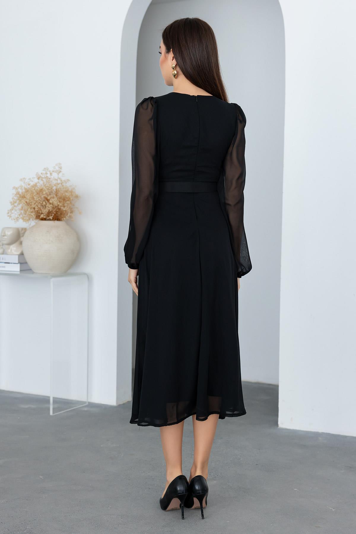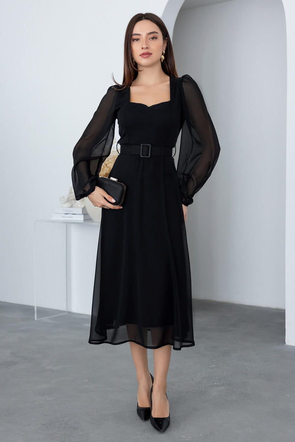 Kare Yaka Şifon Elbise - SİYAH (BEW531ELB0033100)