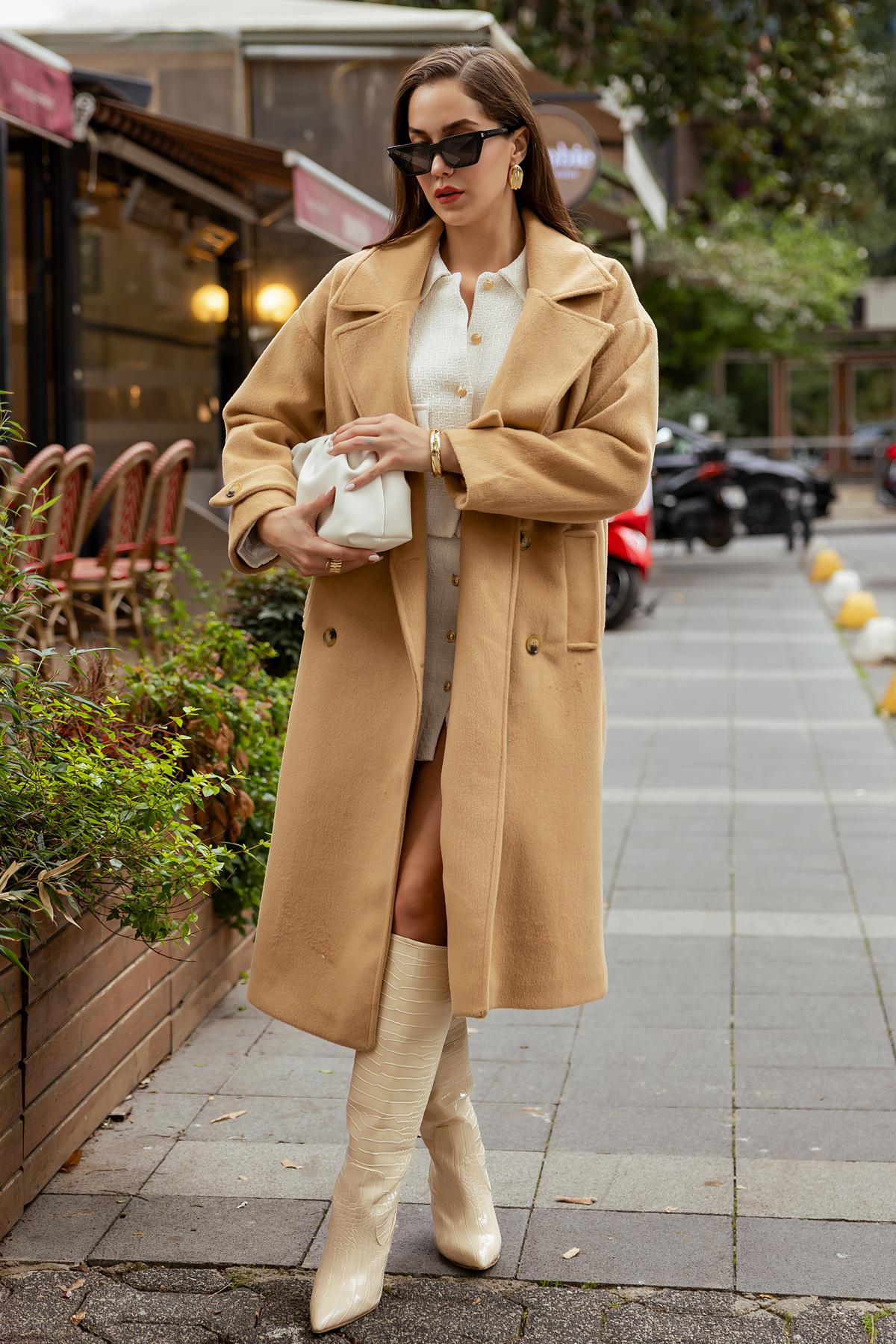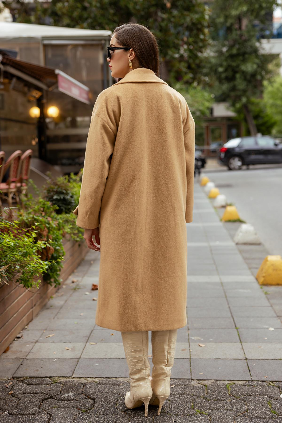 Kol Düğmeli Kaşe Kaban - BEJ (BEW453KBN0007146)