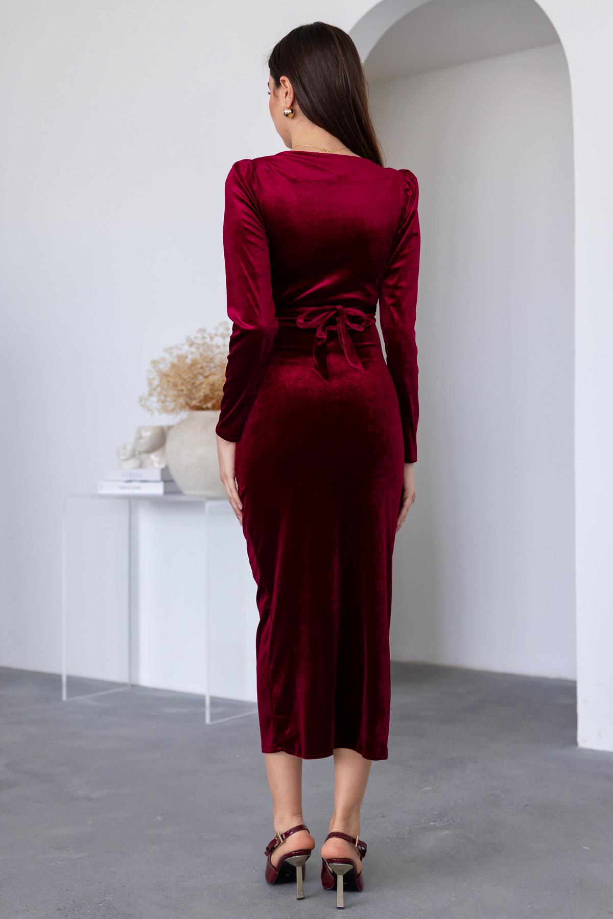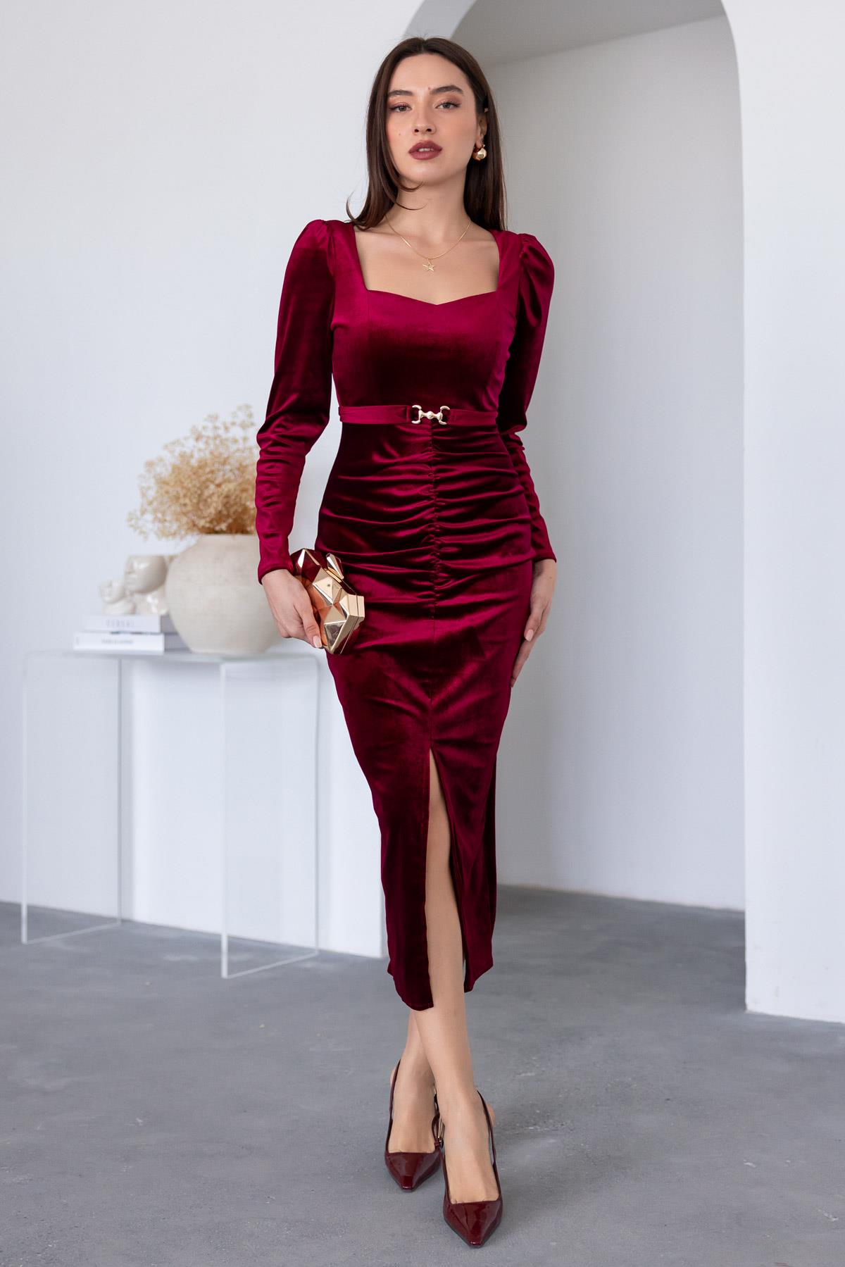 Kuşaklı Kadife Abiye - BORDO (BEW531ABY0005121)