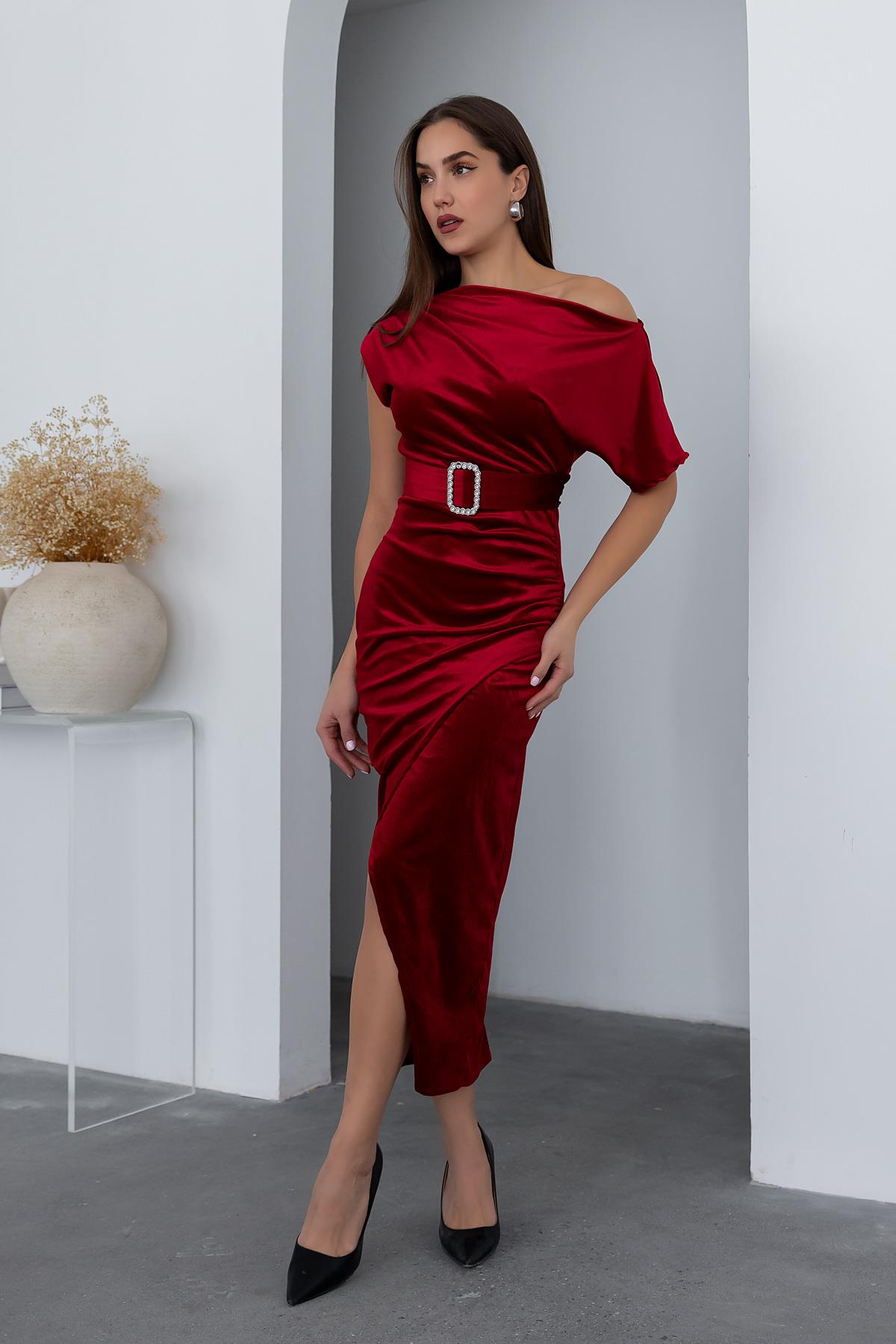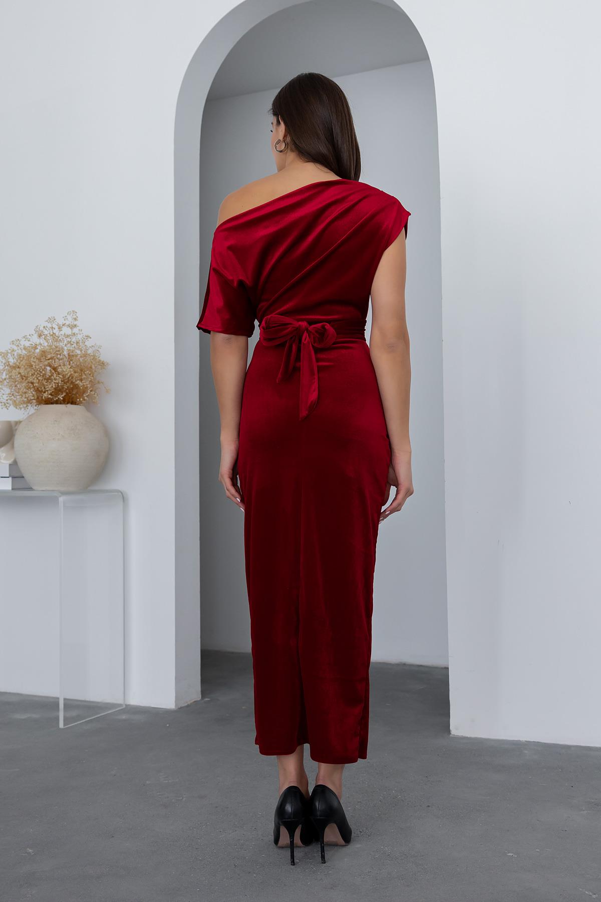 Kuşaklı Kadife Elbise - KIRMIZI (BEW531ELB0031124)