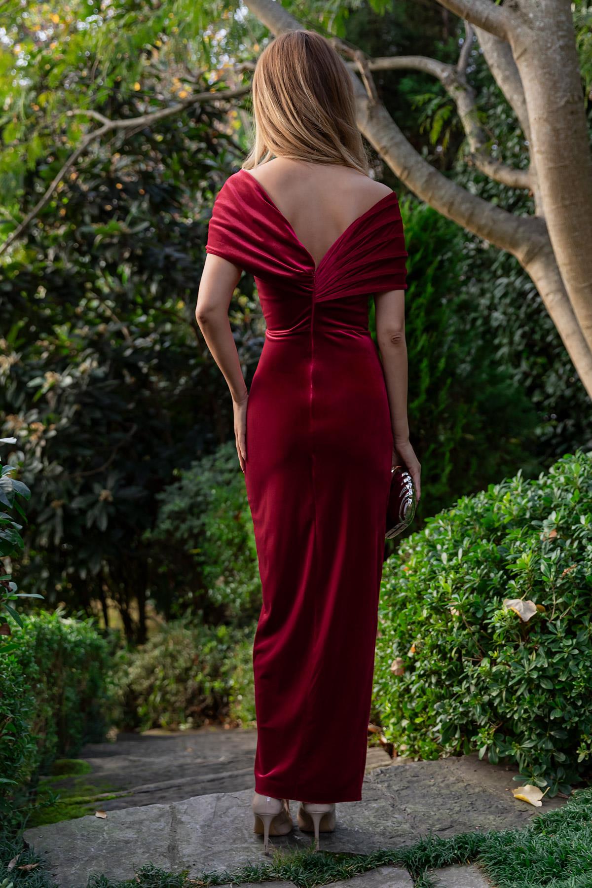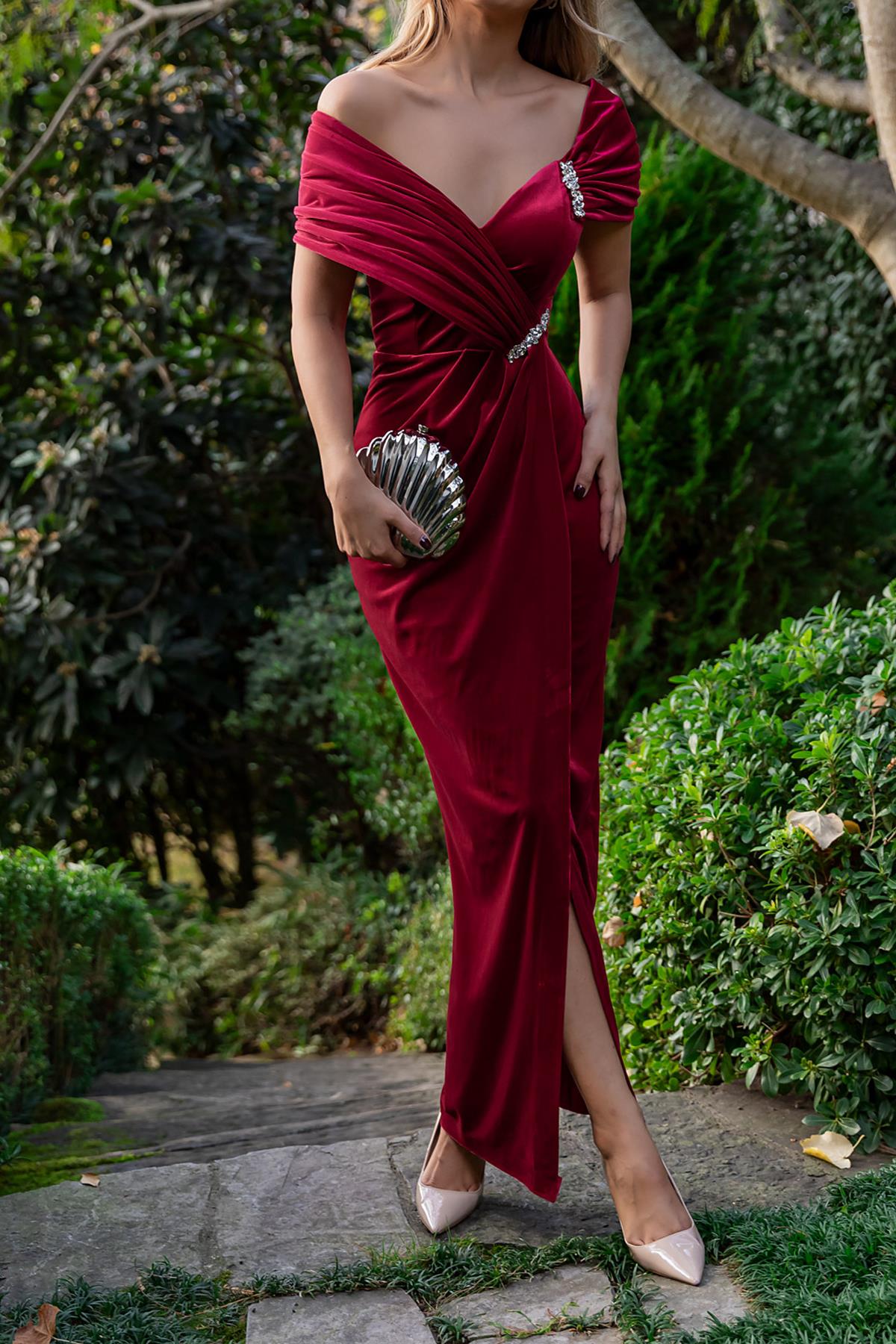 Omuz Tasarım Taşlı Abiye - BORDO (BEW253ABY0001121)