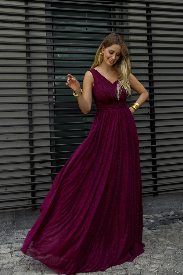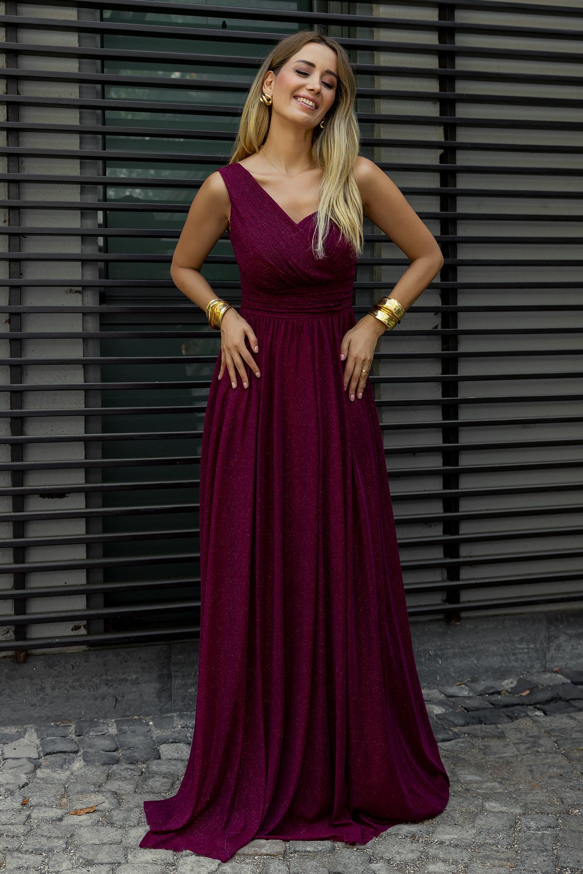 Simli Uzun Abiye - BORDO (BDS008ABY0027121)