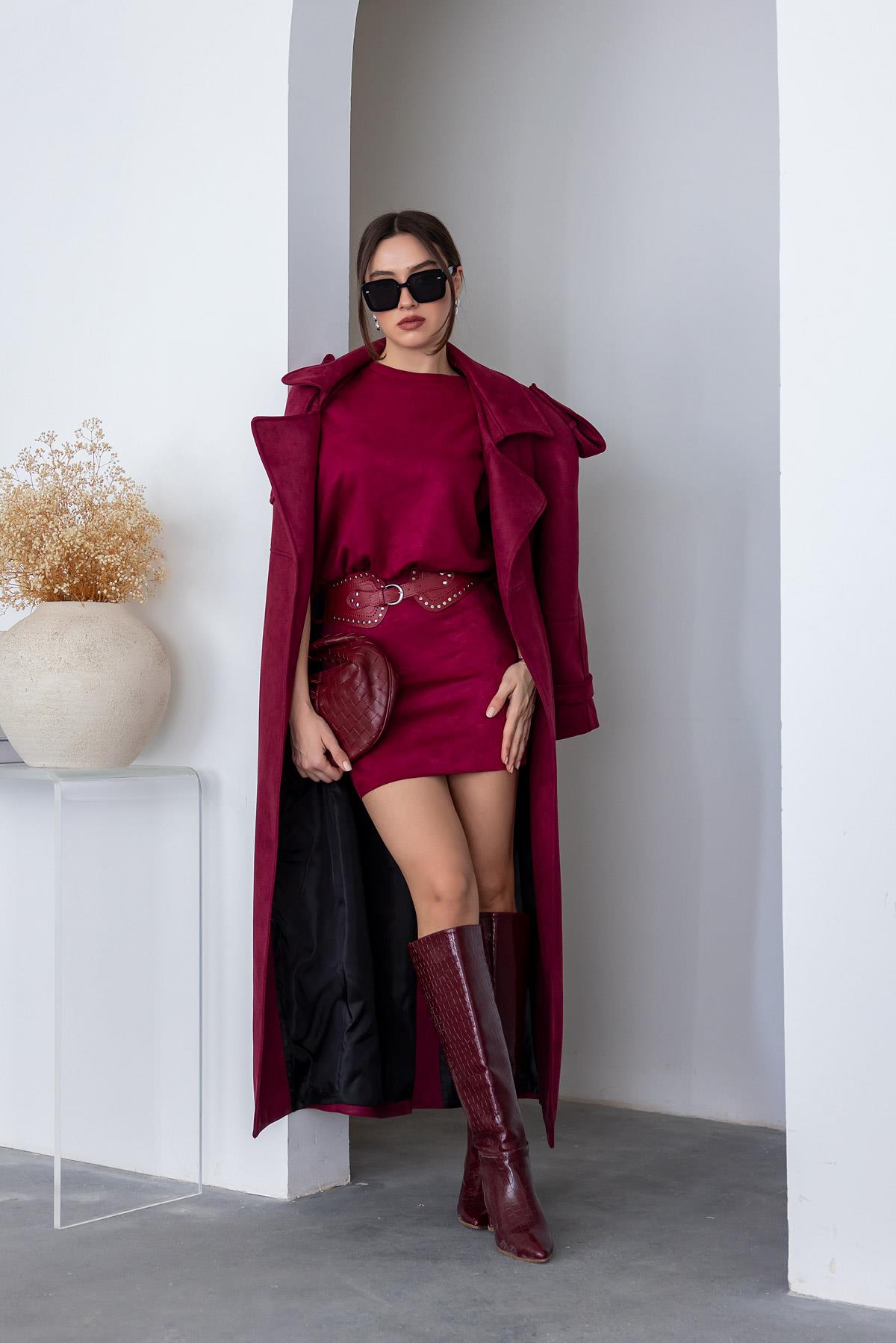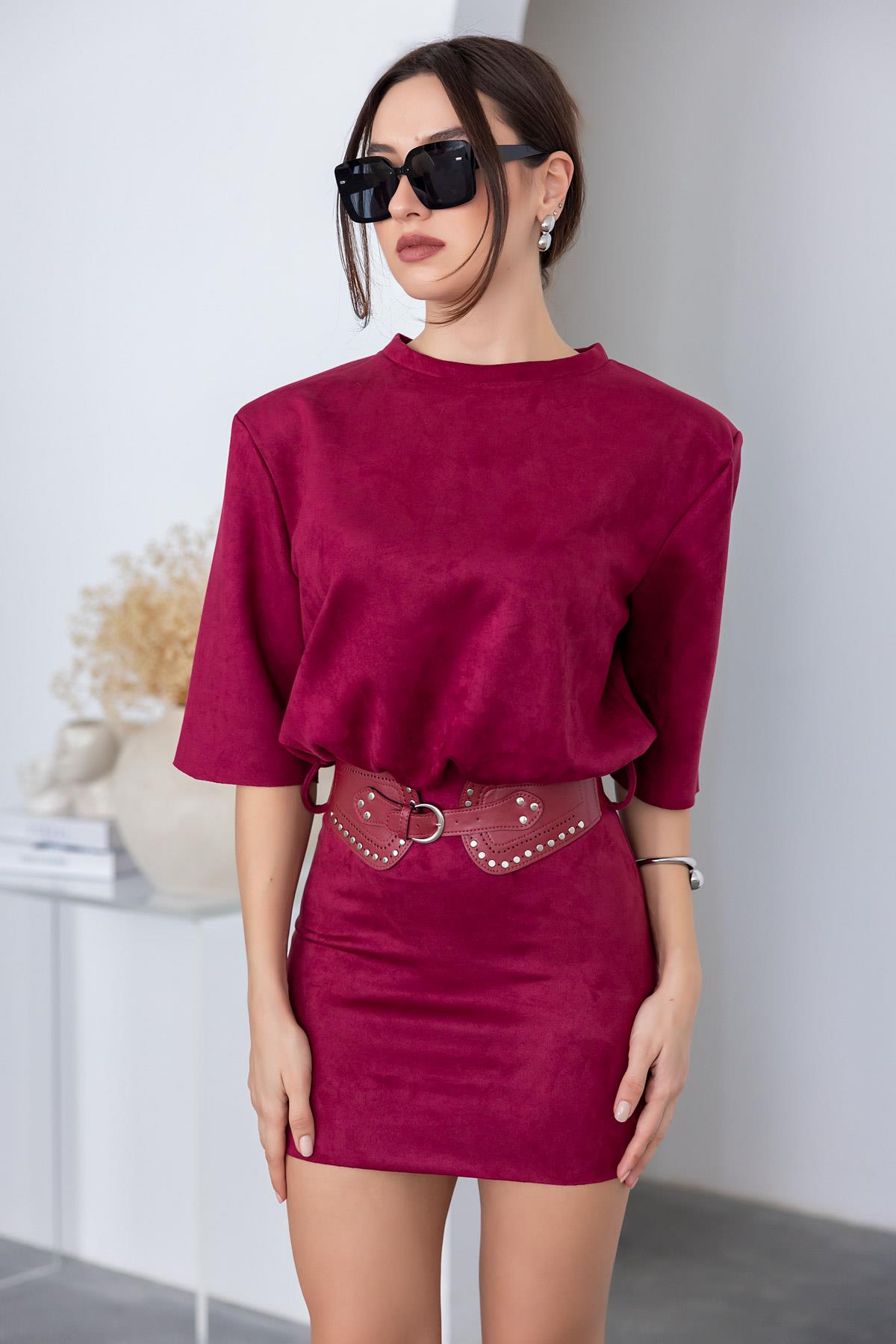 Süet Mini Elbise - BORDO (BEW037ELB0007121)