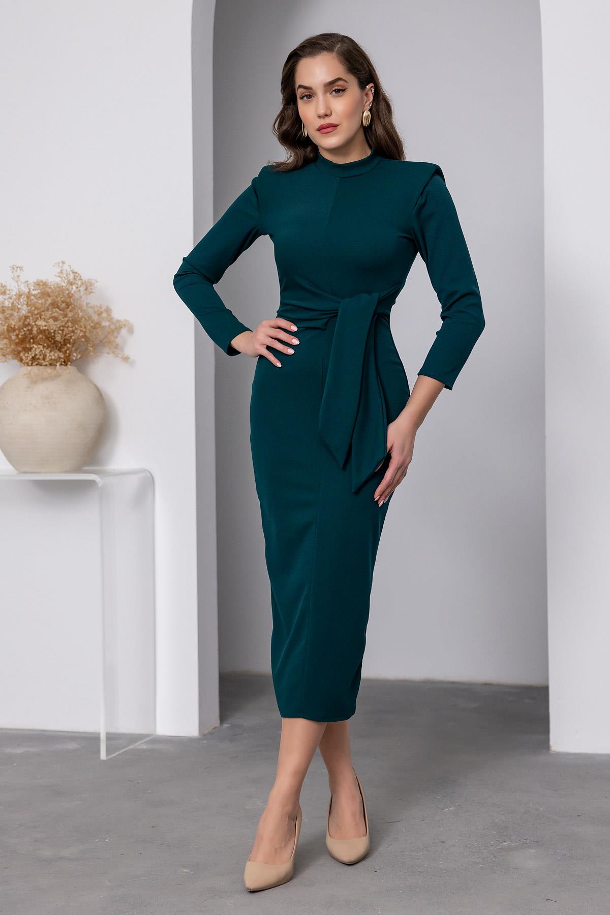 Dik Yakalı Bağlamalı Elbise - ZÜMRÜT YEŞİL (BEW531ELB0048201)