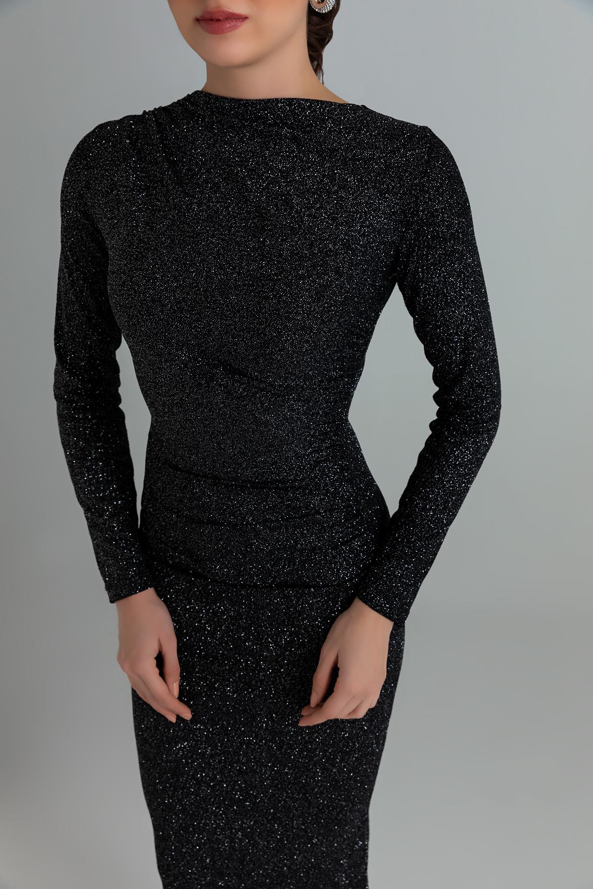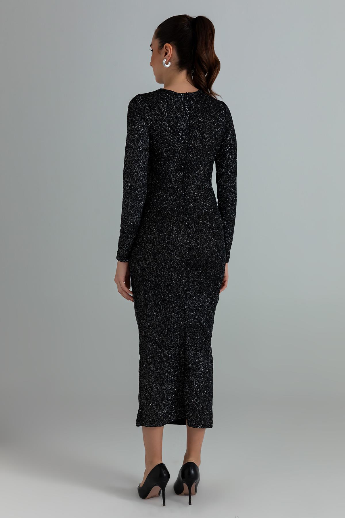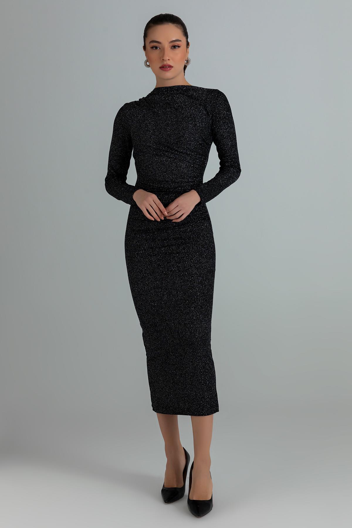 Drapeli Simli Elbise - SİYAH (BEW065ELB0009100)