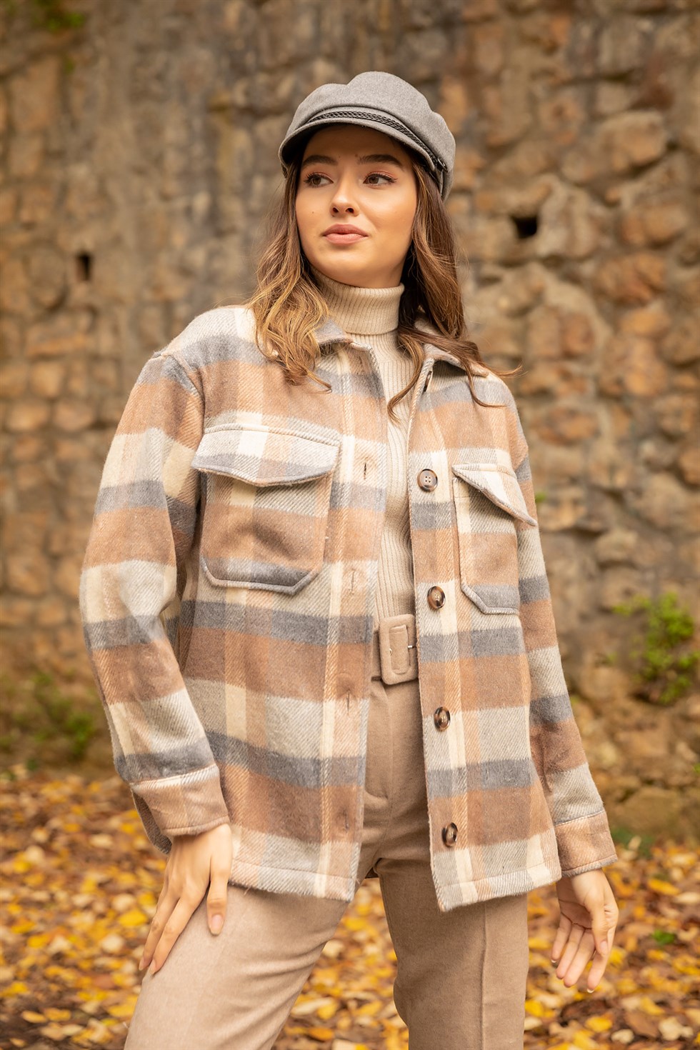 Ekose Desen Yünlü Gömlek - VİZON (BAW151GÖM0004125)