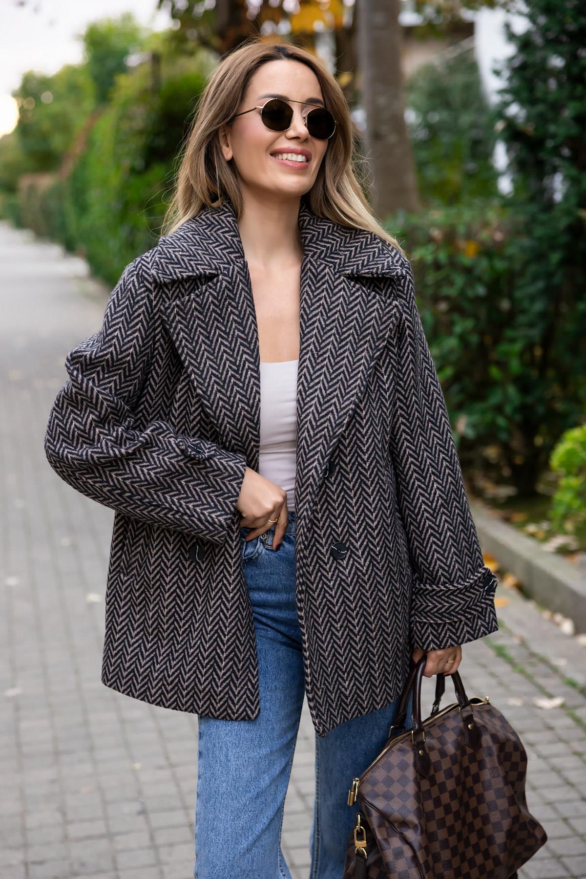 Balıksırtı Oversize Kısa Kaban - VİZON (BEW181KBN0002125)
