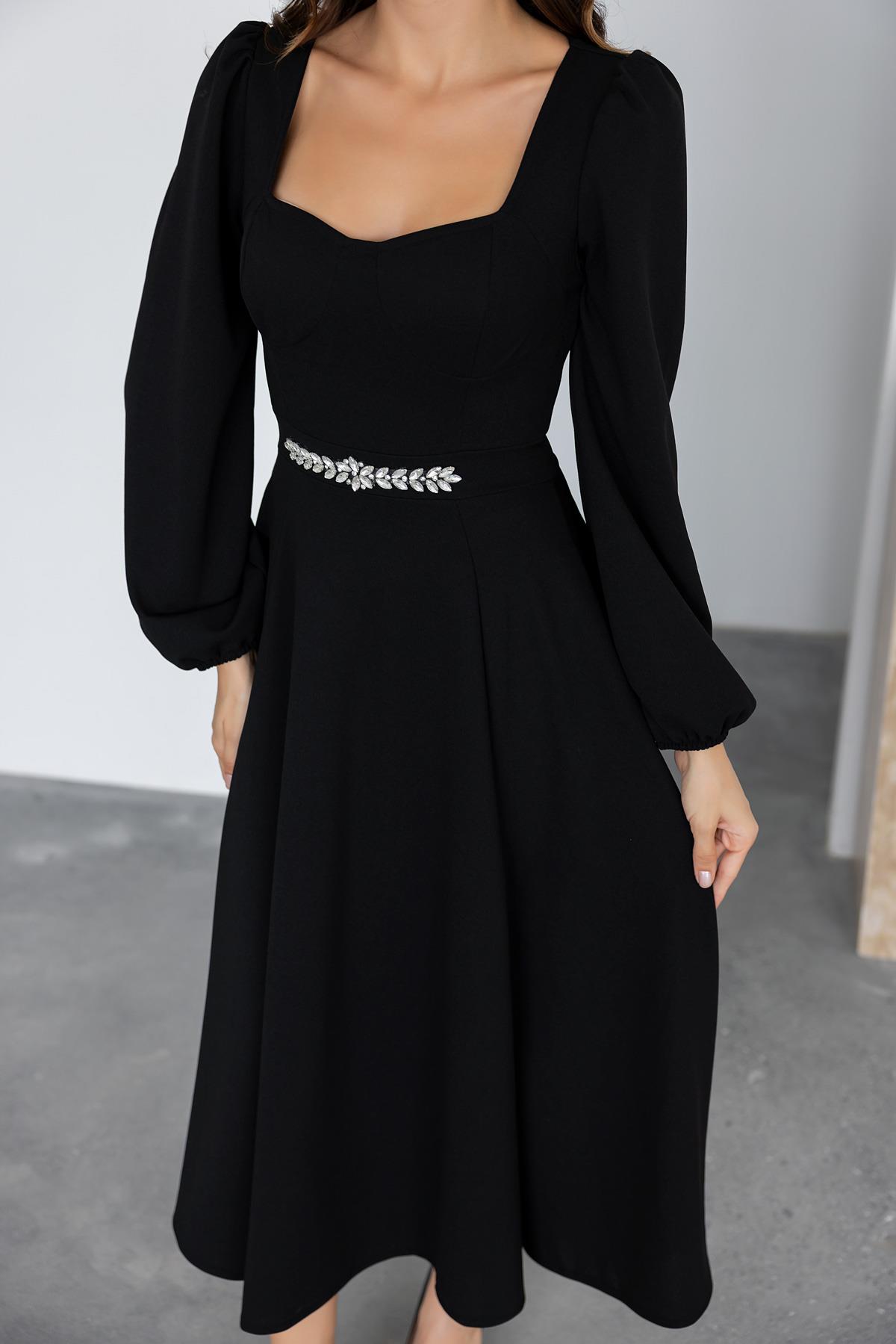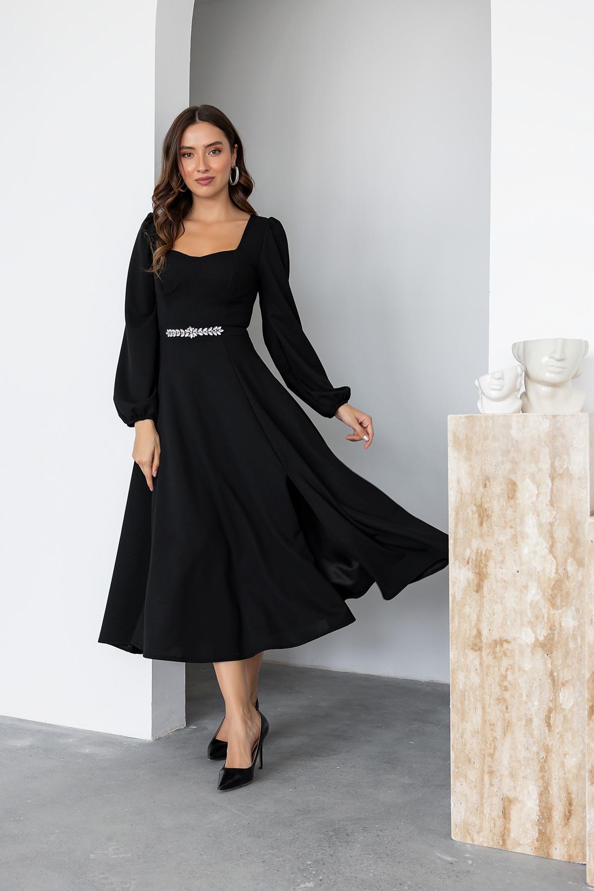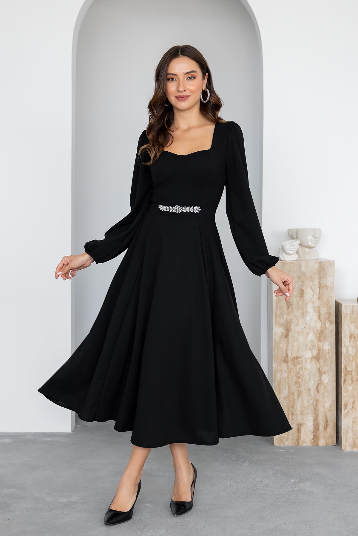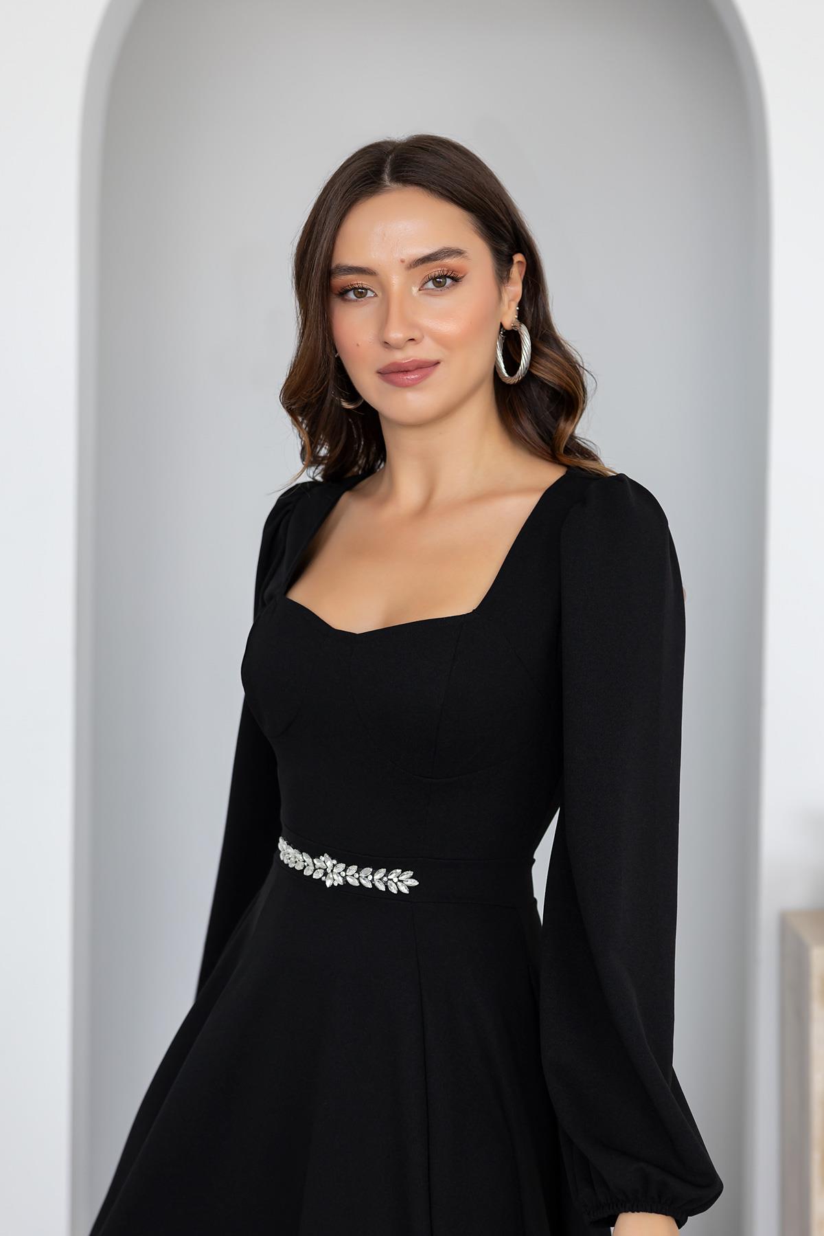Bel Taşlı Midi Elbise - SİYAH (BDW169ELB0003100)