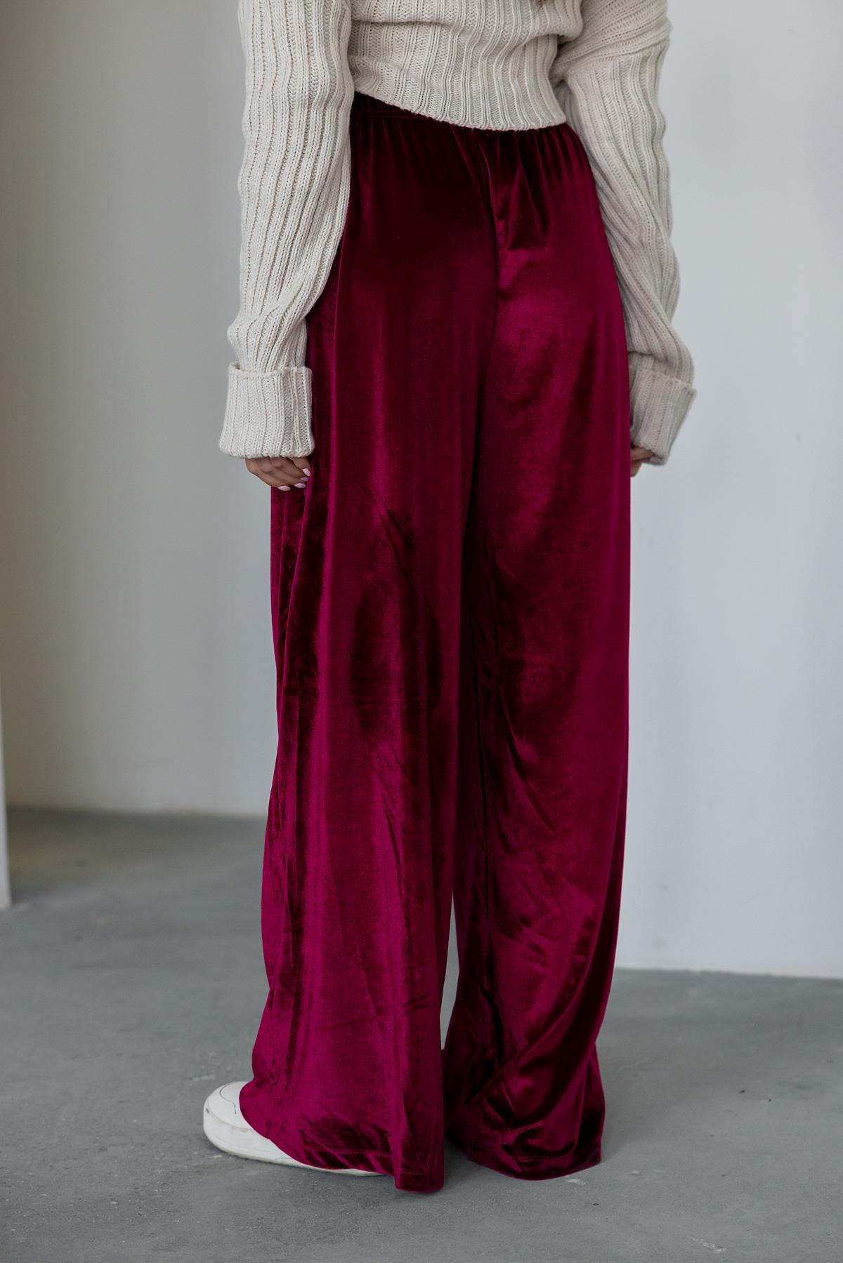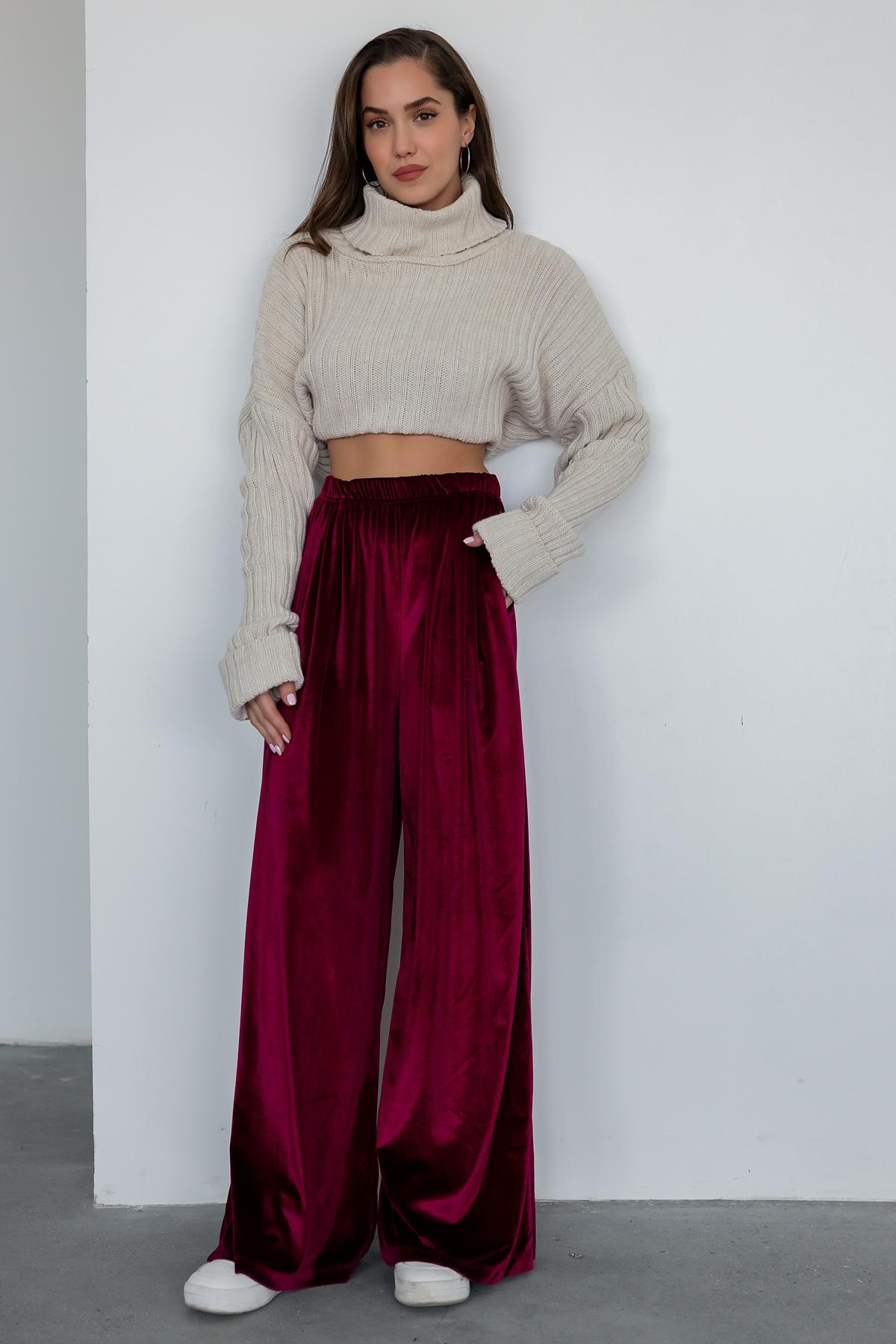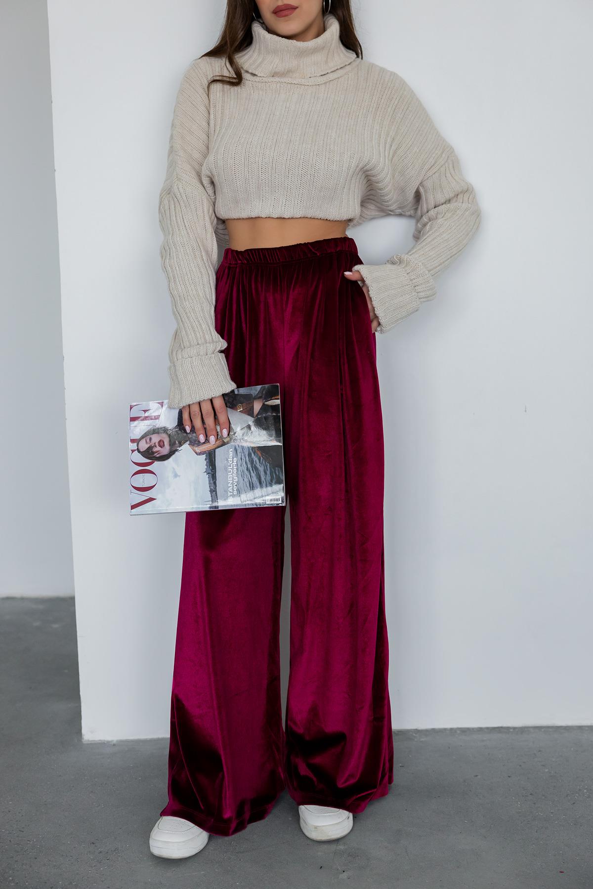 Bol Paça Kadife Pantolon - BORDO (BEW130PAN0001121)
