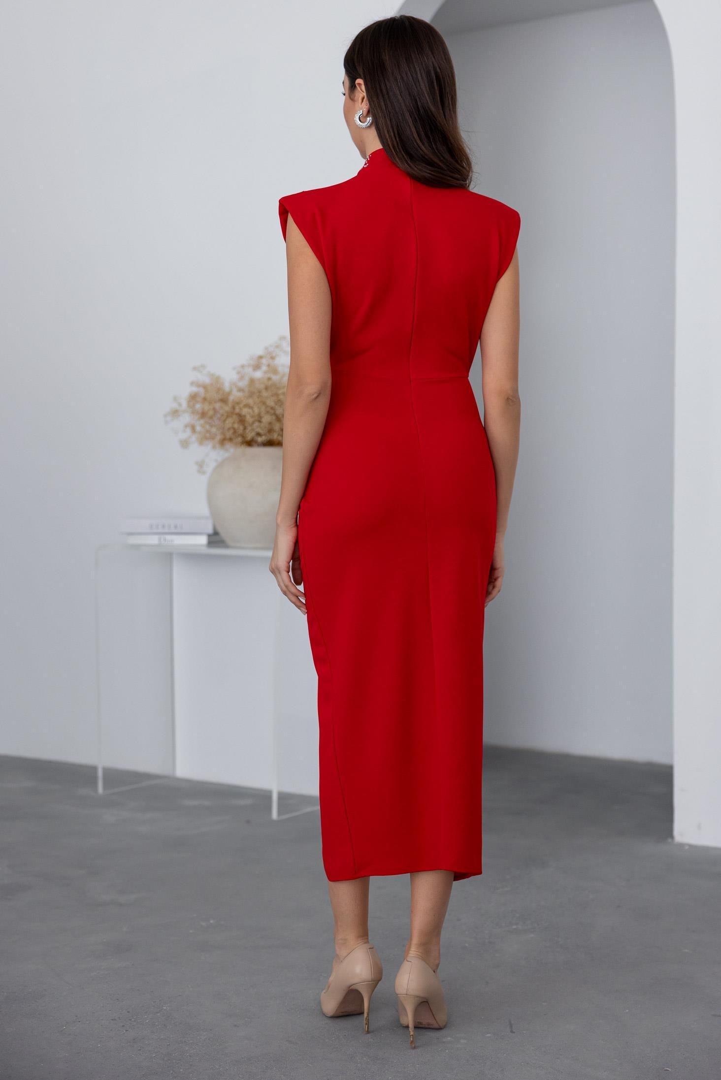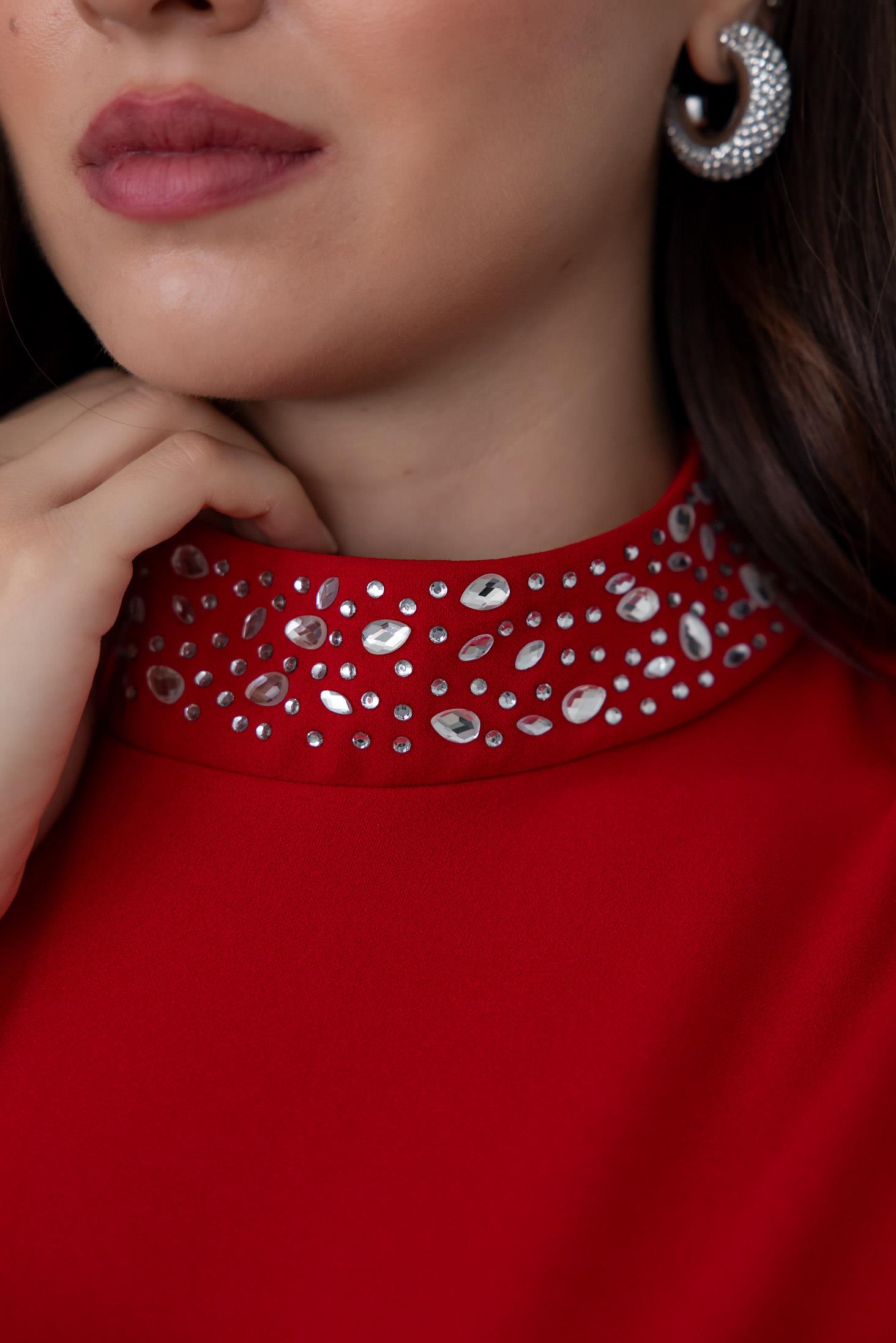 Boyun Taşlı Anvelop Elbise - KIRMIZI (BEW531ELB0024124)