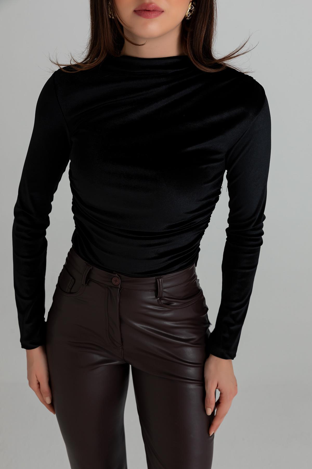 Büzgülü Kadife Crop Bluz - SİYAH (BEW103BLZ0001100)