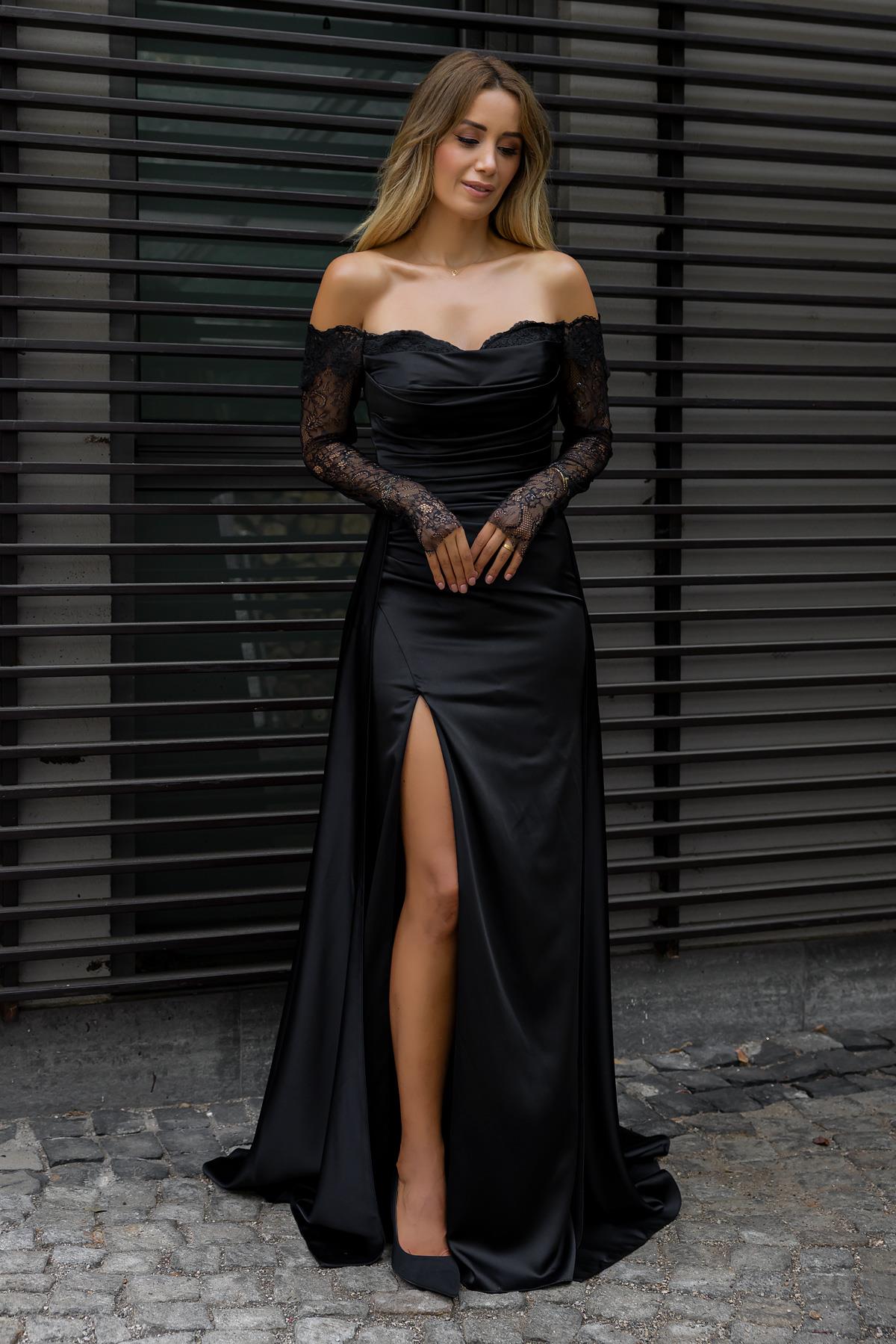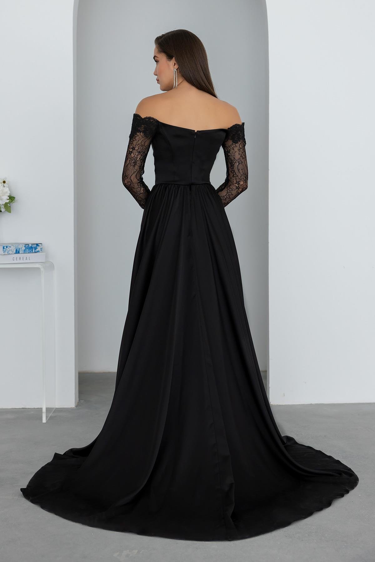 Dantelli Saten Abiye - SİYAH (BDS603ABY0013100)