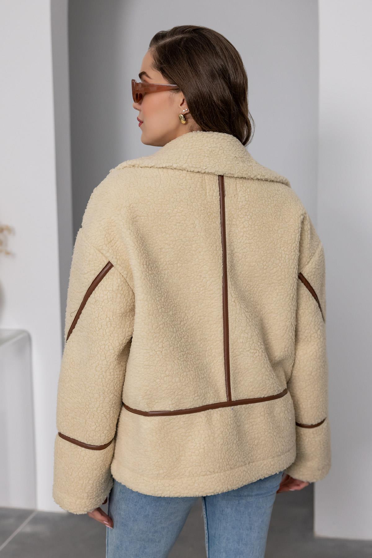 Deri Detaylı Kısa Mont - KREM (BEW031MNT0001131)