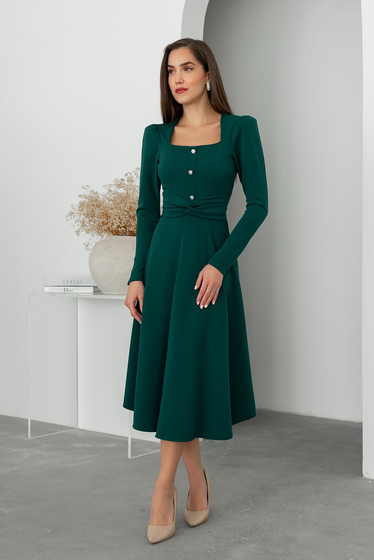 Düğme Detay Midi Elbise - ZÜMRÜT YEŞİL (BEW531ELB0023201)