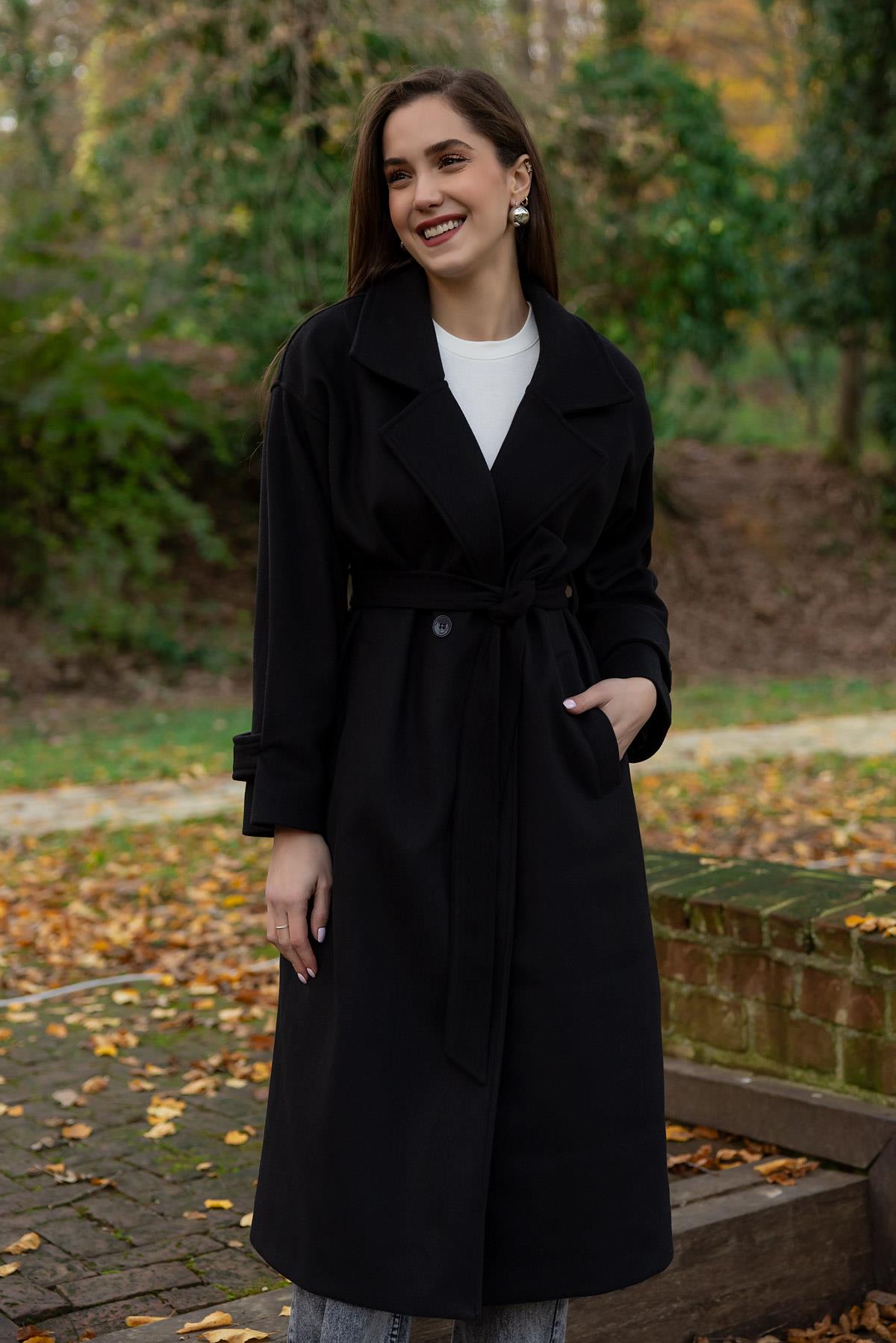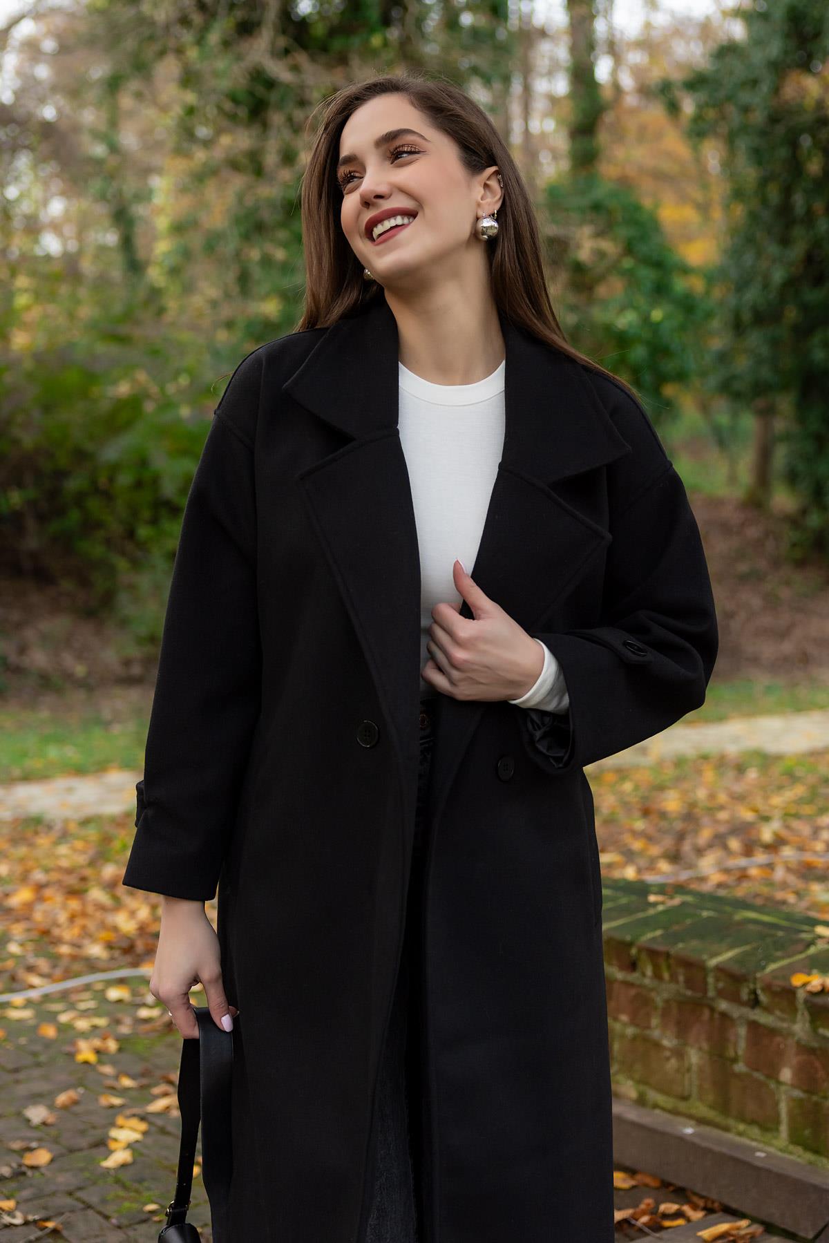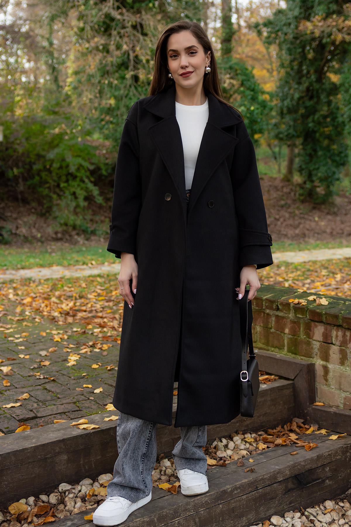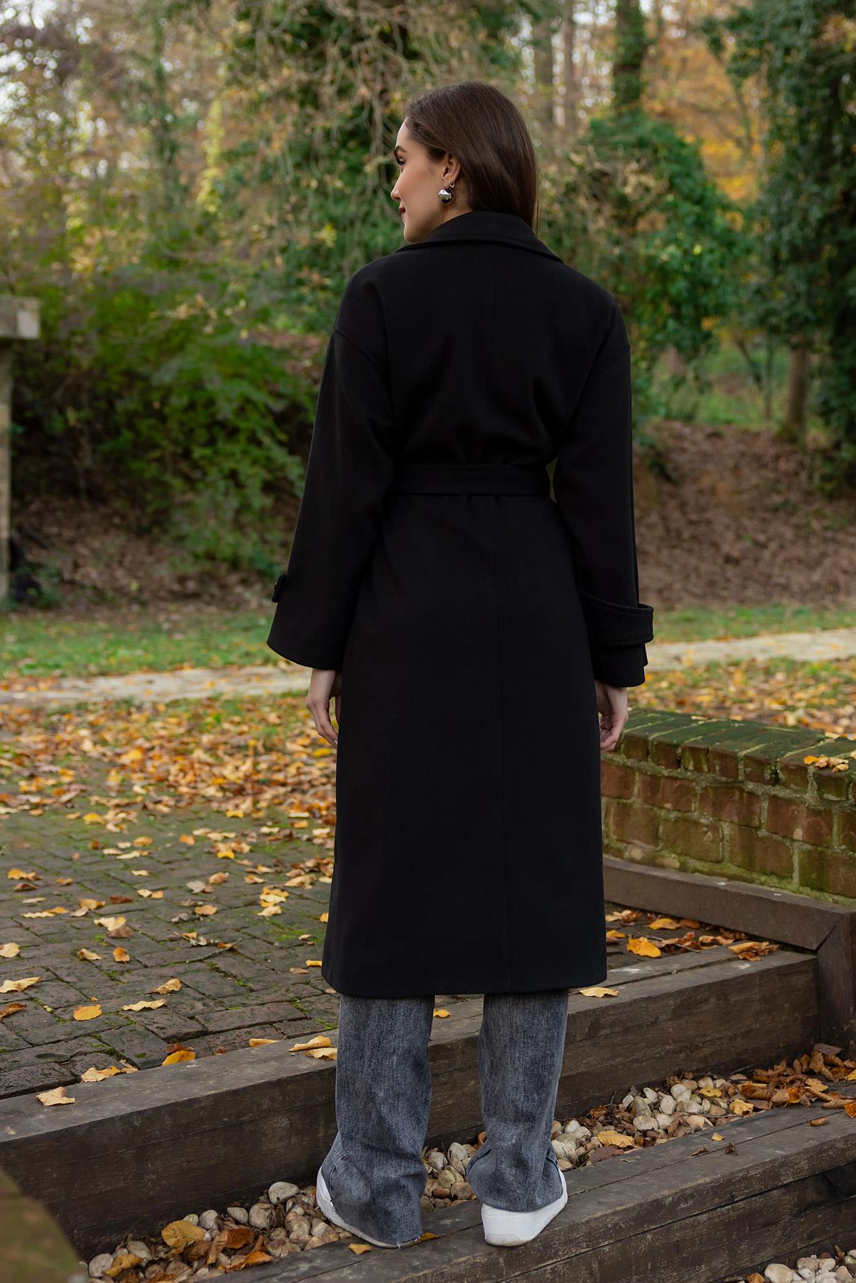 Düğme Kapamalı Kaşe Kaban - SİYAH (BEW631KBN0001100)