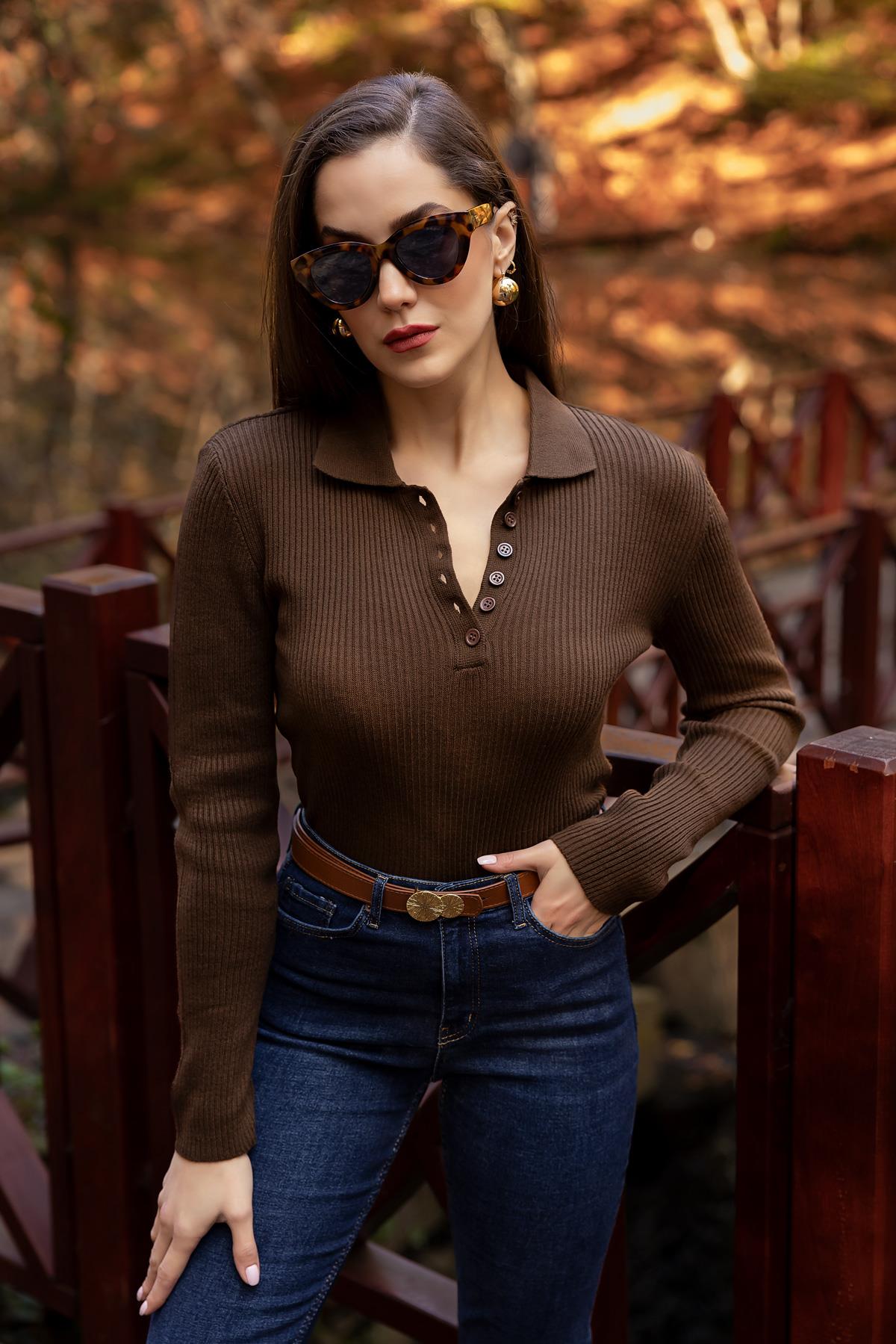 Düğme Kapamalı Triko - KAHVERENGİ (BEW440KZK0001112)