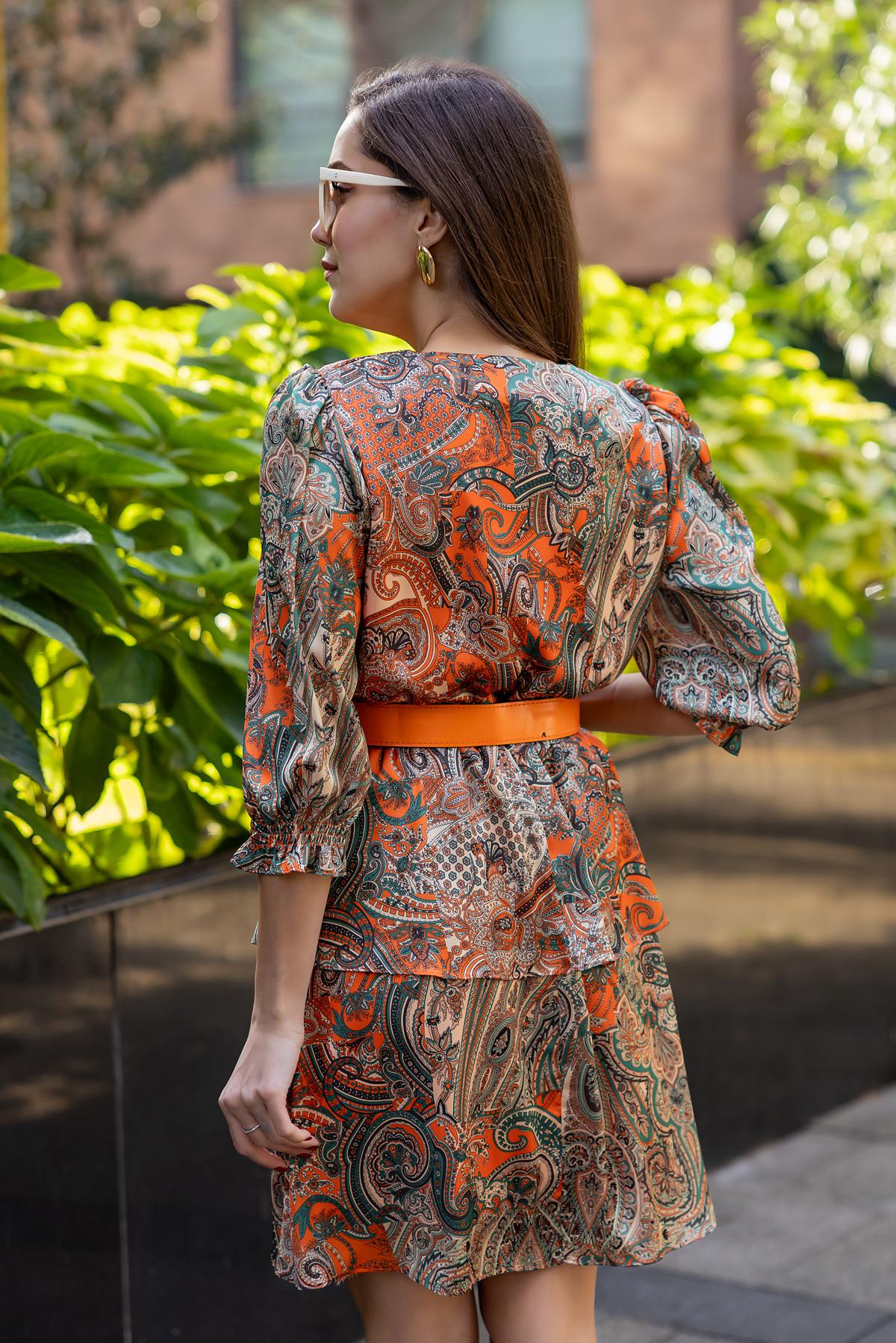 Etnik Desenli Mini Elbise - TURUNCU (BEW590ELB0013108)