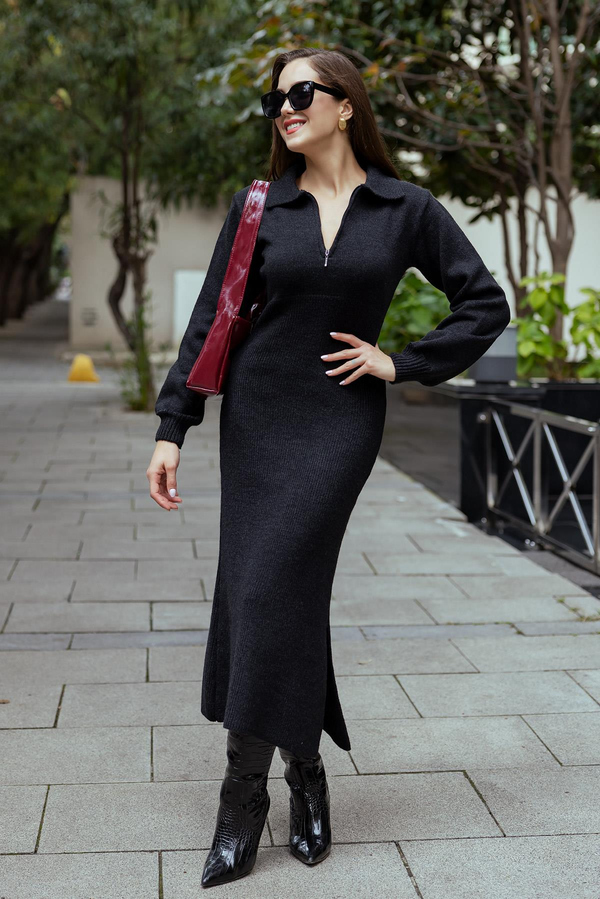 Fermuar Detay Triko Elbise - SİYAH (BEW531ELB0012100)