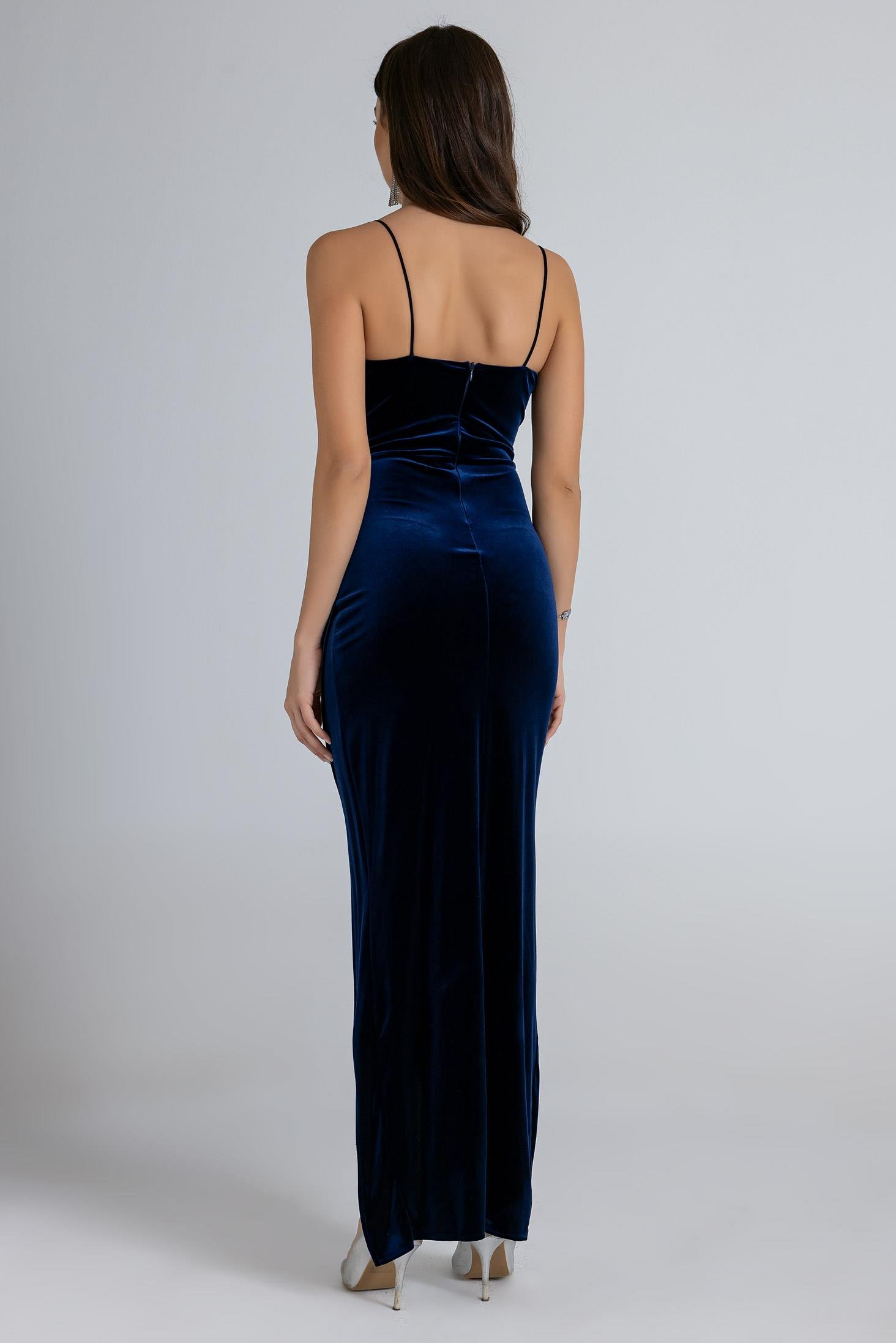 Göğüs İşlemeli Kadife Abiye - LACİVERT (BEW008ABY0001110)