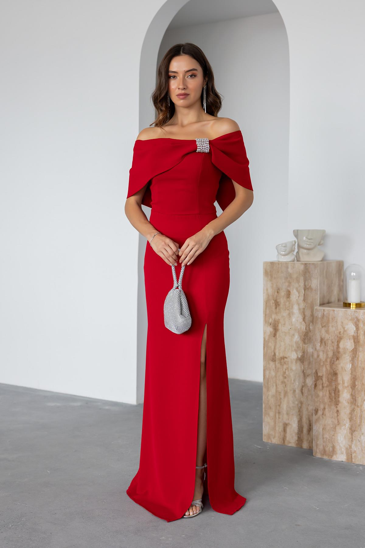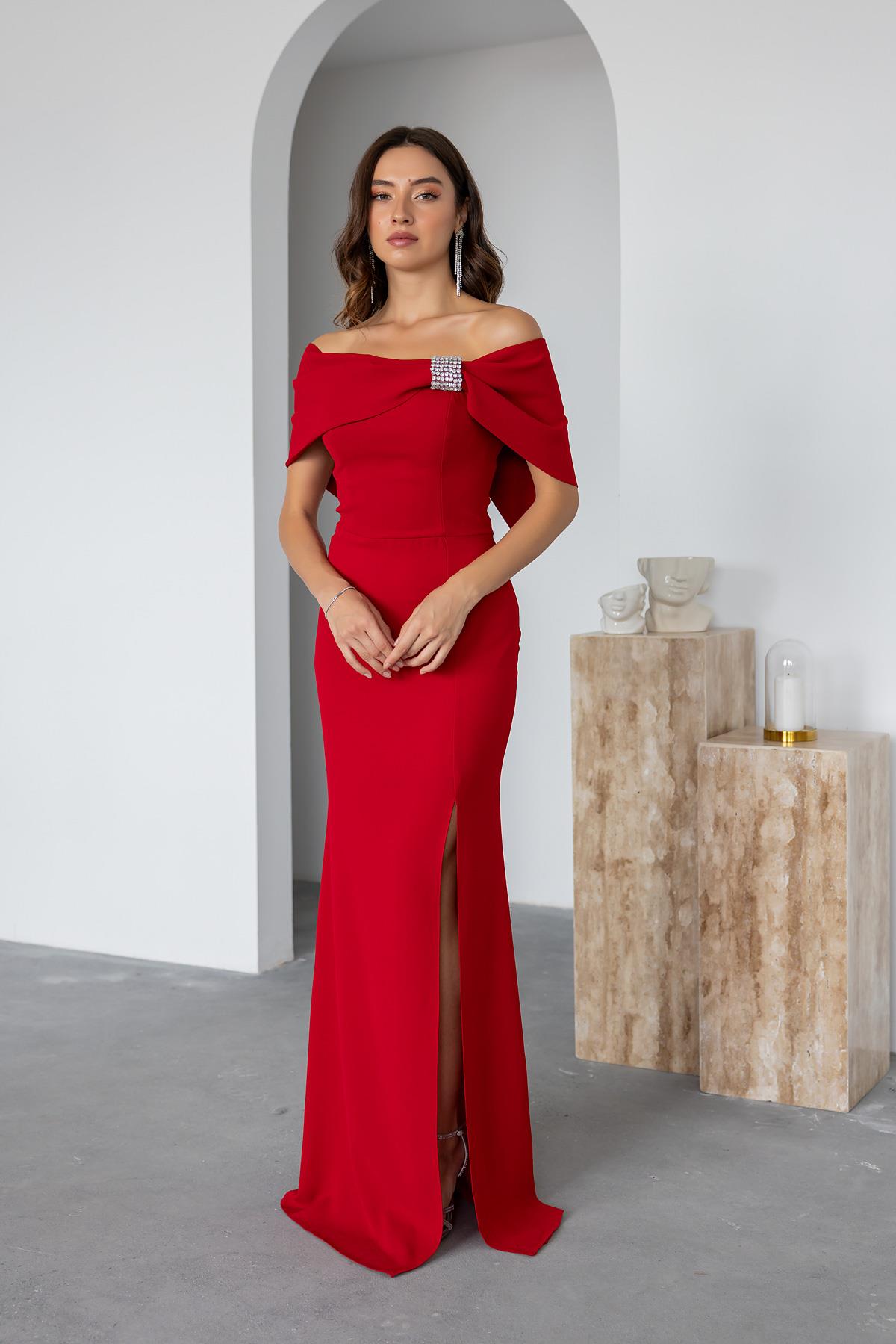 Göğüs Tasarım Gece Elbisesi - KIRMIZI (BDS624ABY0003124)