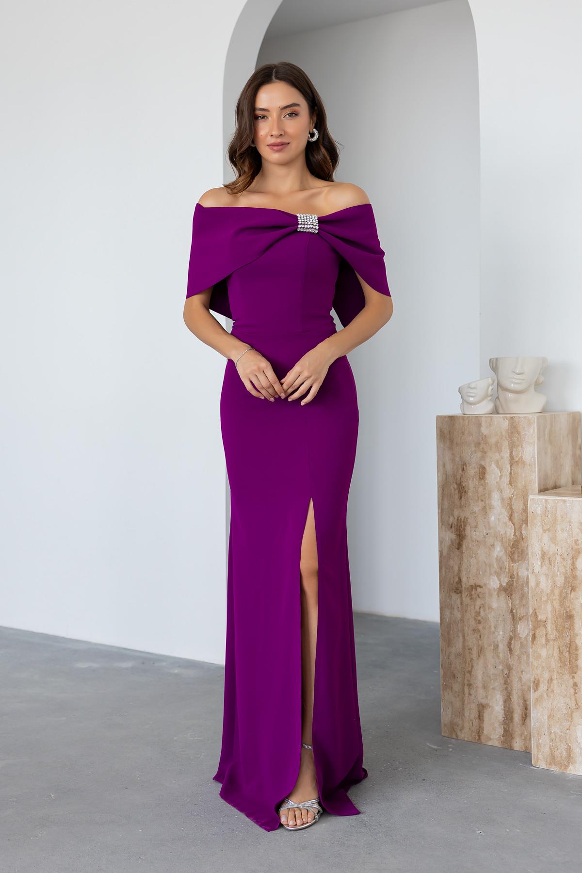 Göğüs Tasarım Gece Elbisesi - MOR (BDS624ABY0003126)
