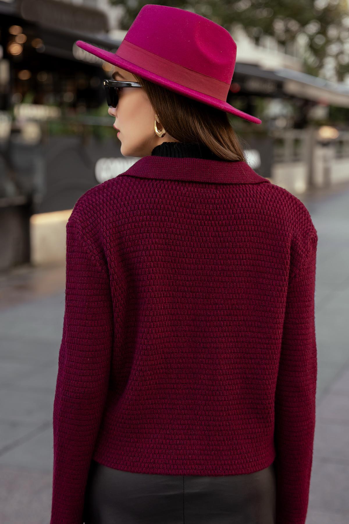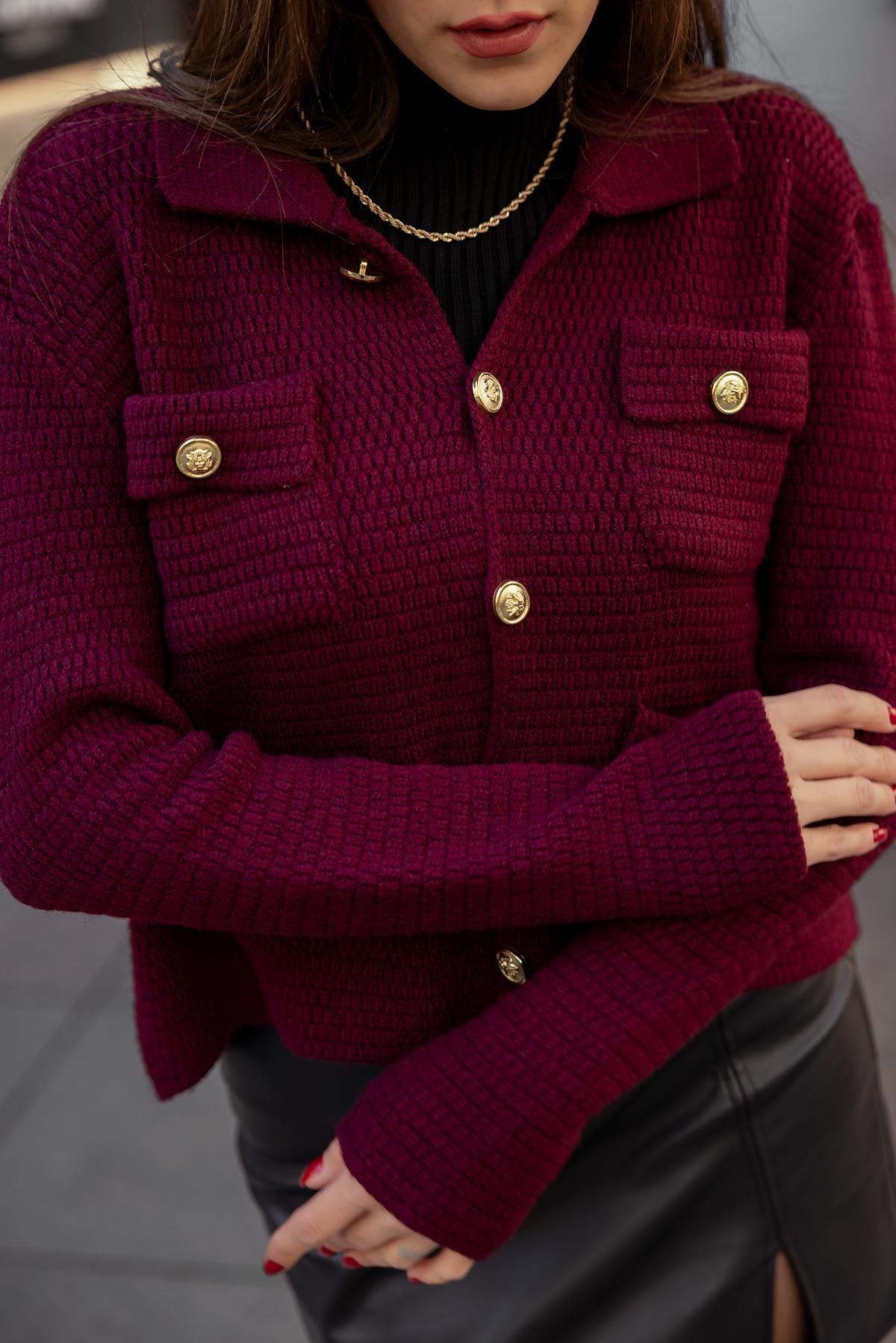 Gold Düğmeli Triko Hırka - BORDO (BEW552HRK0001121)