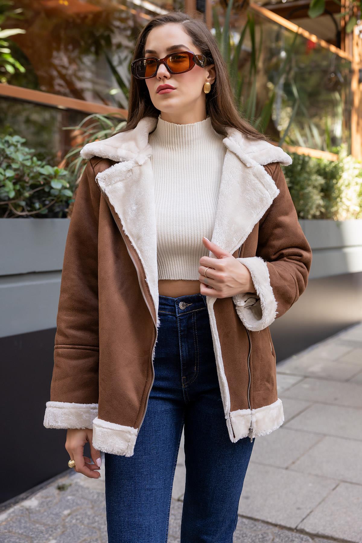 İçi Kürklü Süet Mont - KAHVERENGİ (BEW396MNT0001112)
