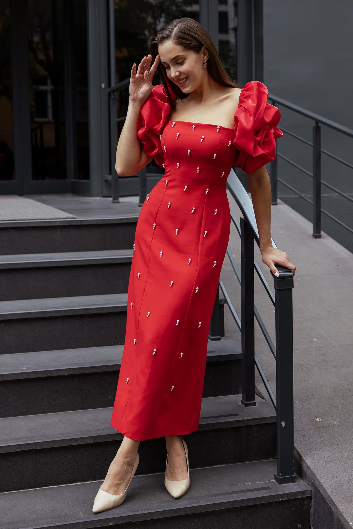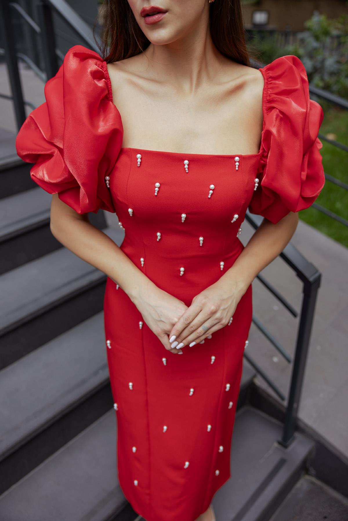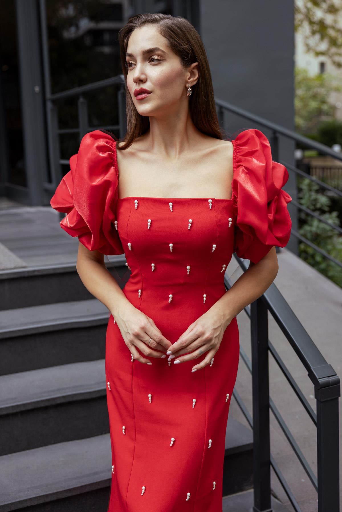 İnci İşlemeli Gece Elbisesi - KIRMIZI (BDW383ELB0026124)