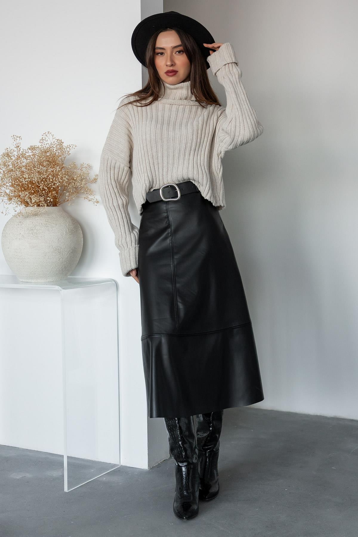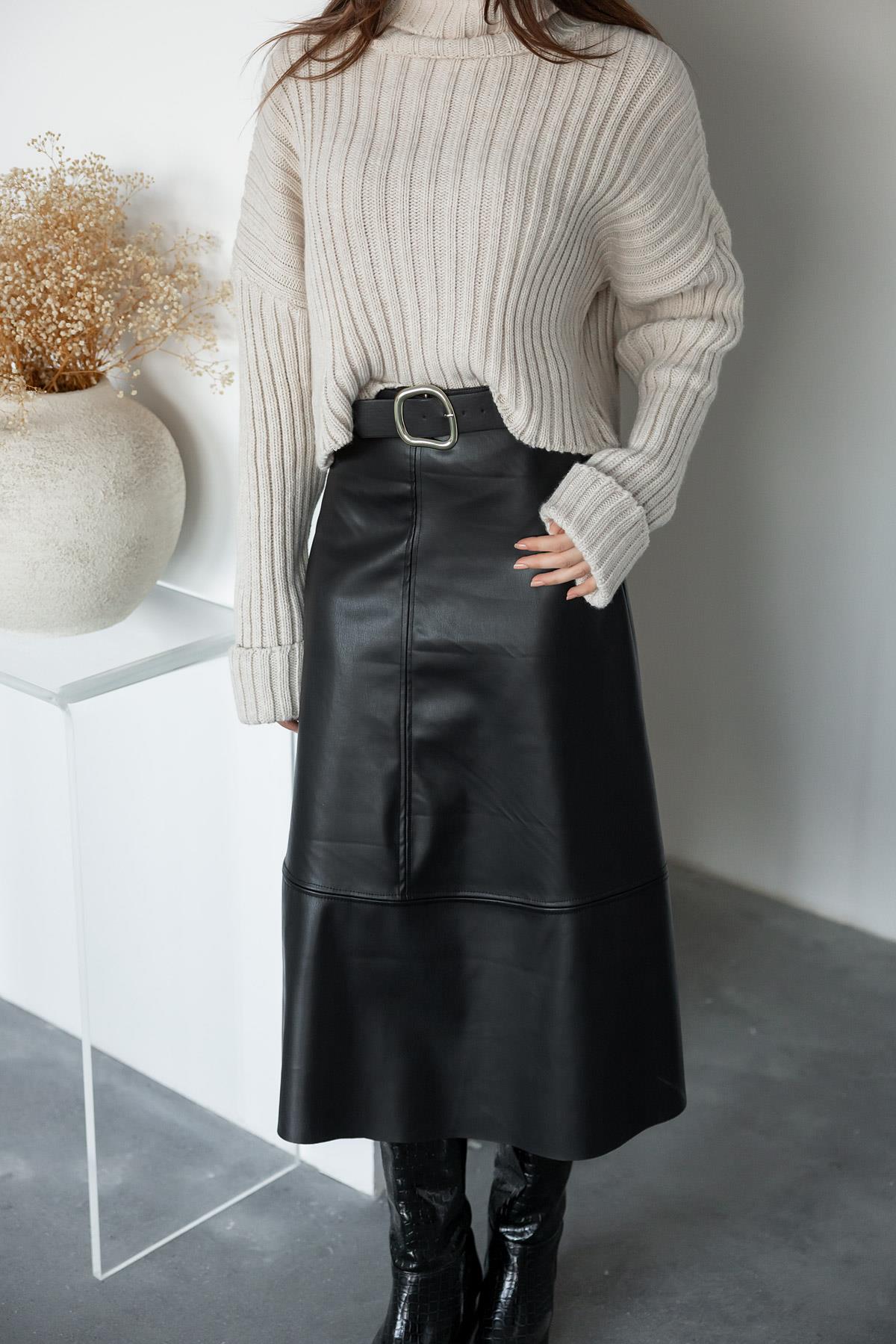 Kemerli Deri Uzun Etek - SİYAH (BEW397ETK0002100)