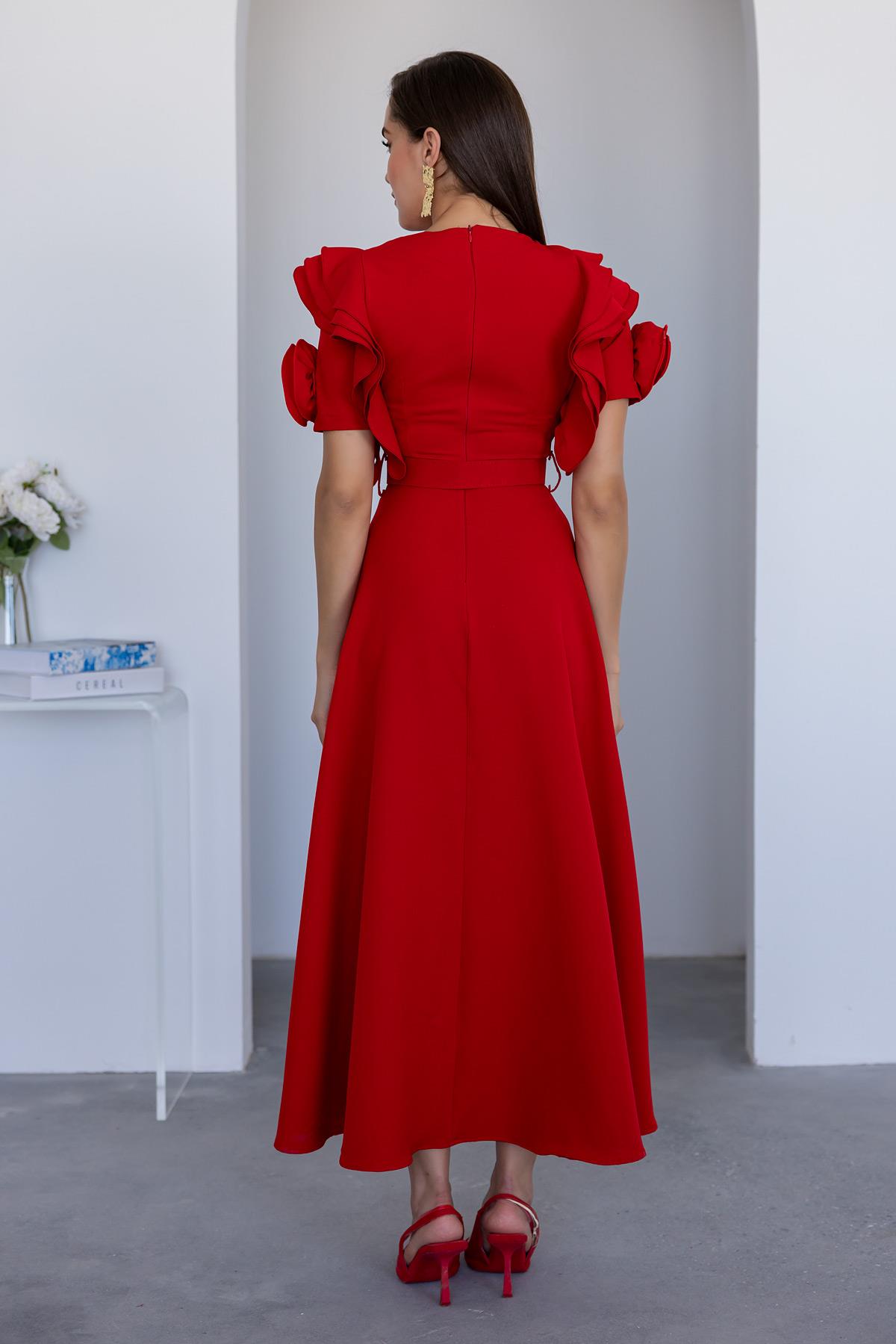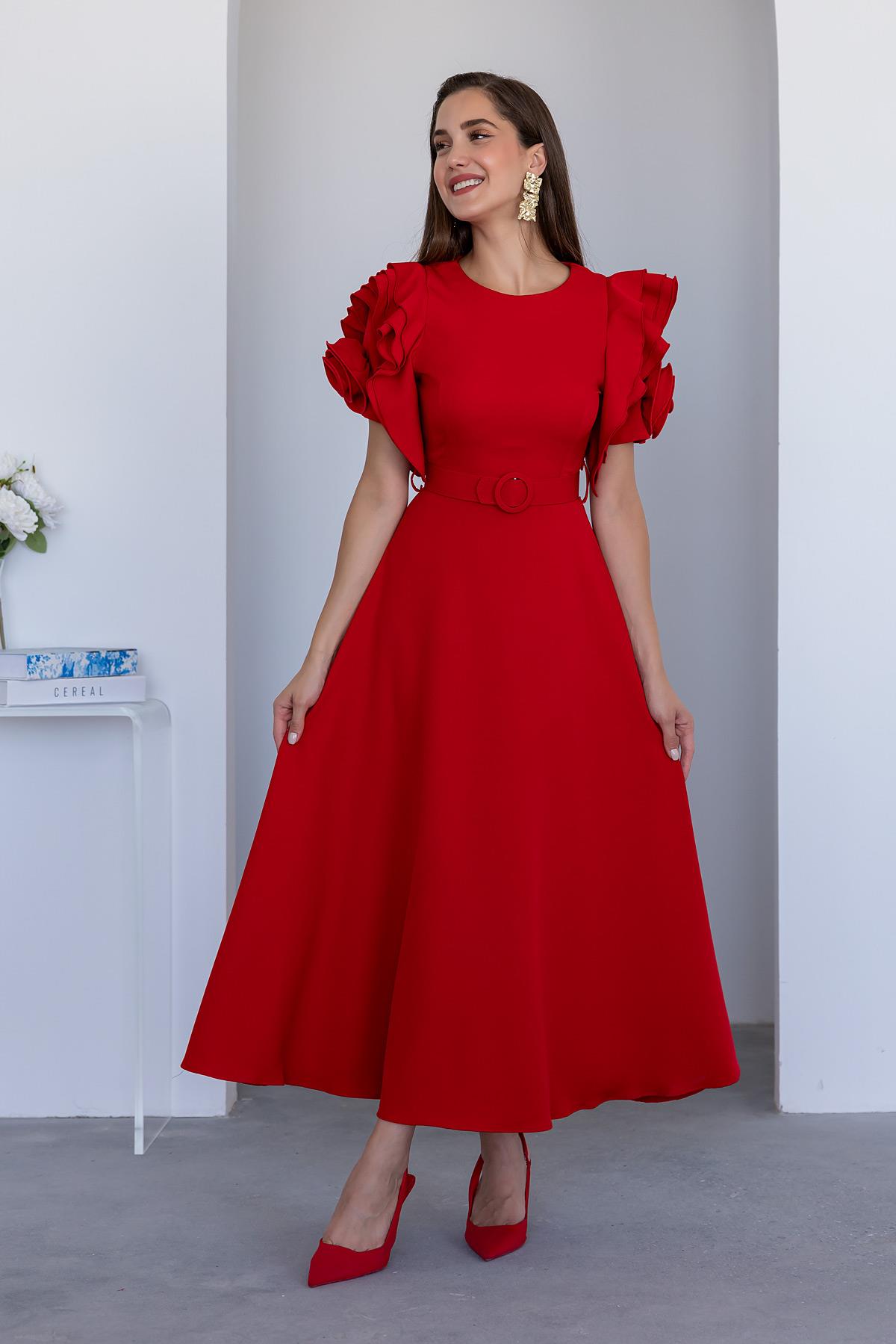 Kol Tasarım Kemerli Elbise - KIRMIZI (BDS383ELB0040124)