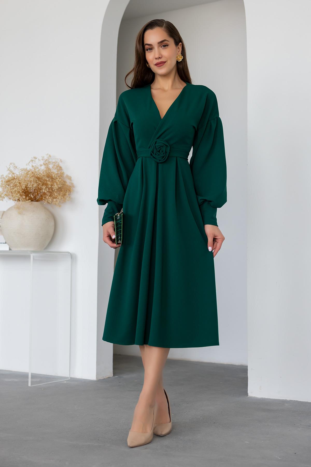 Kruvaze Yaka Gül Detay Elbise - ZÜMRÜT YEŞİL (BEW531ELB0036201)