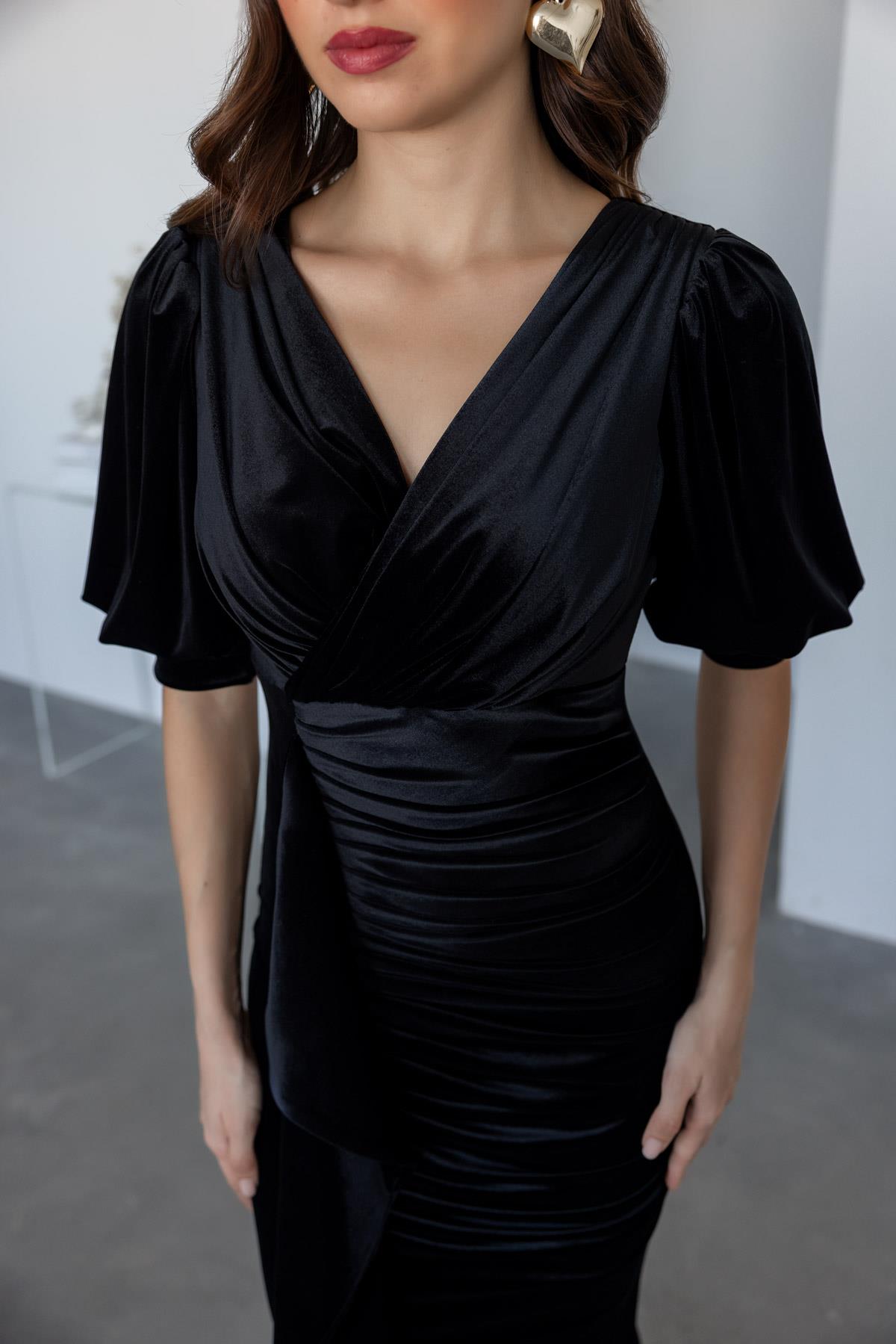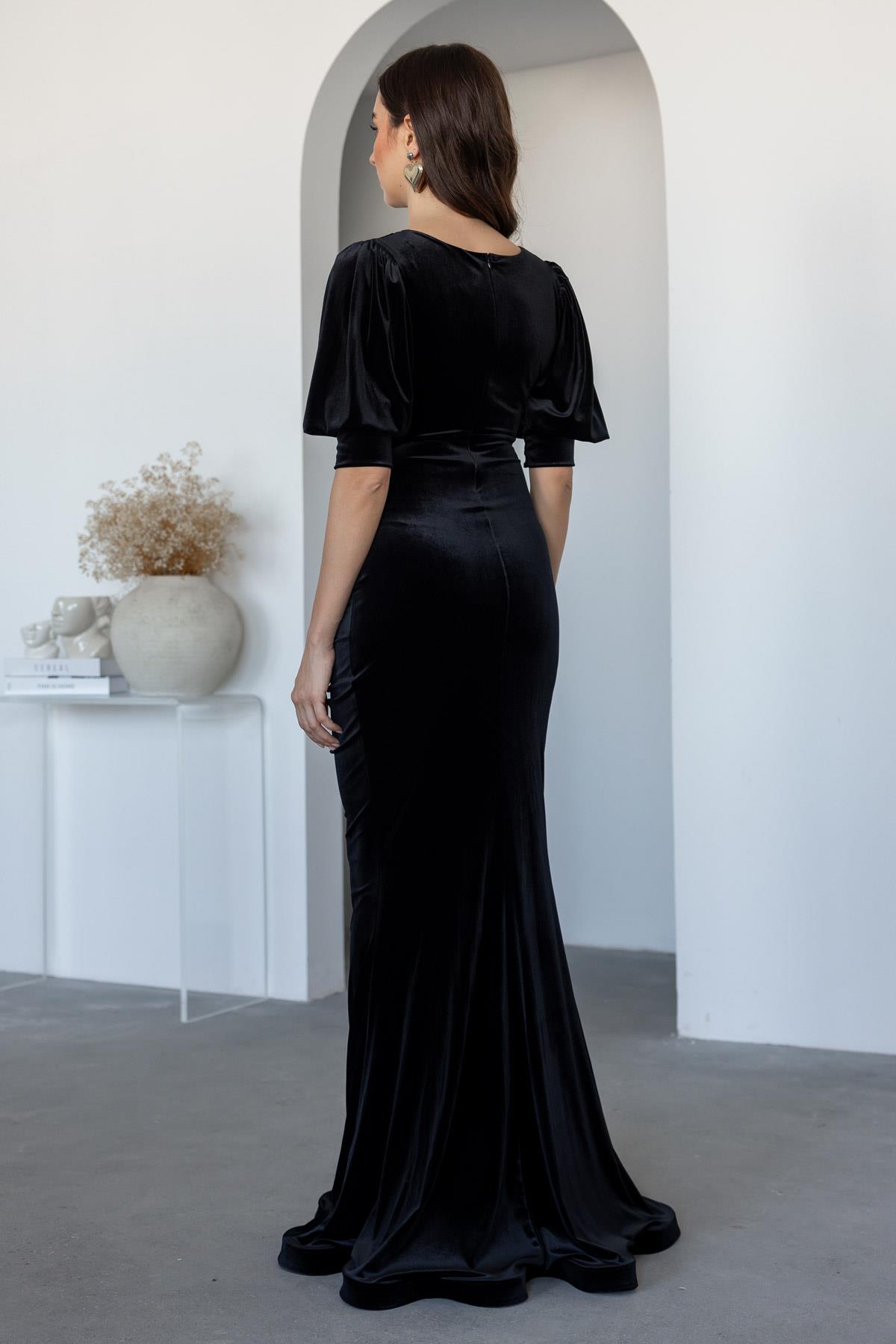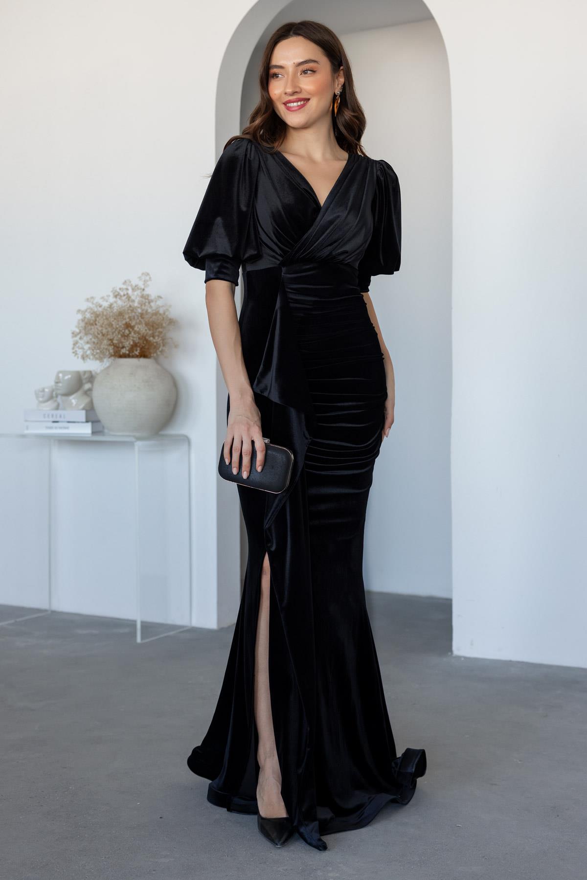 Kruvaze Yaka Kadife Abiye - SİYAH (BEW008ABY0004100)