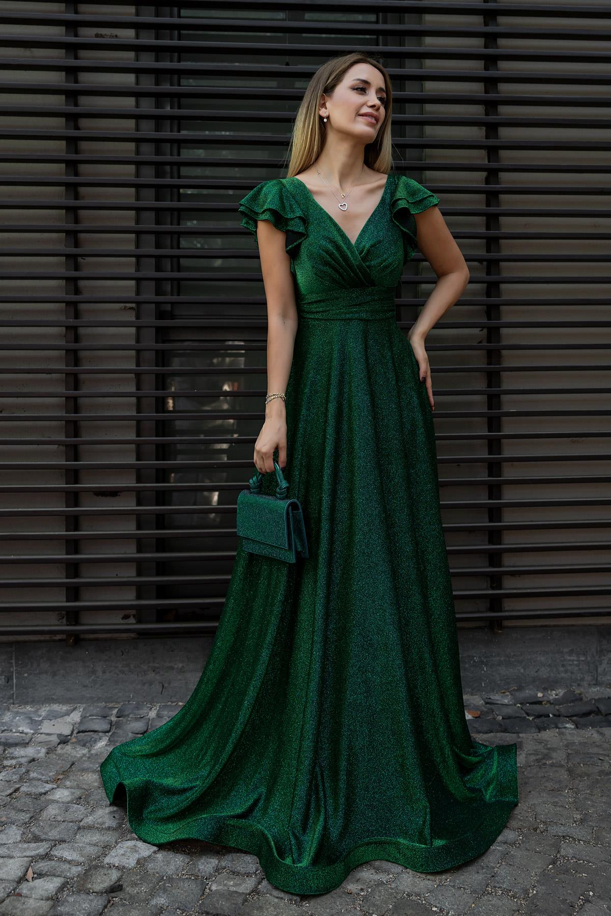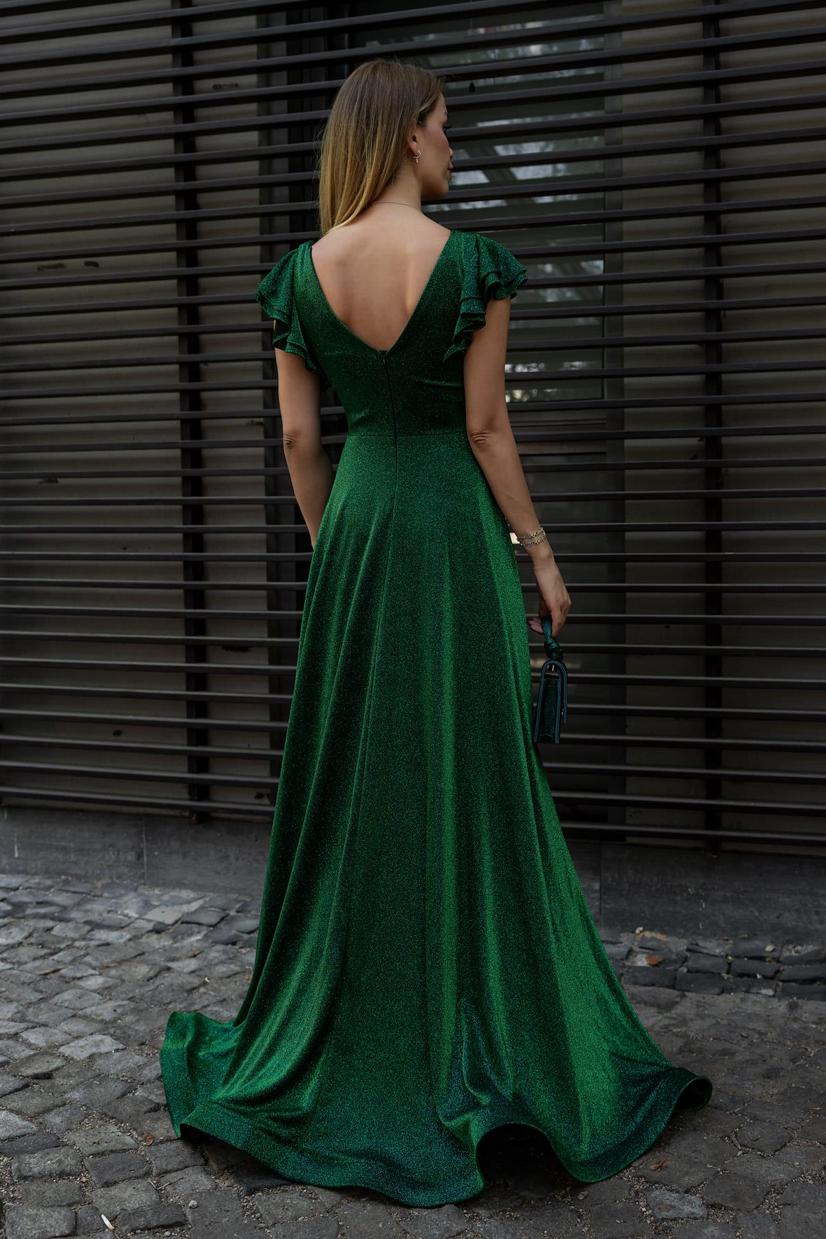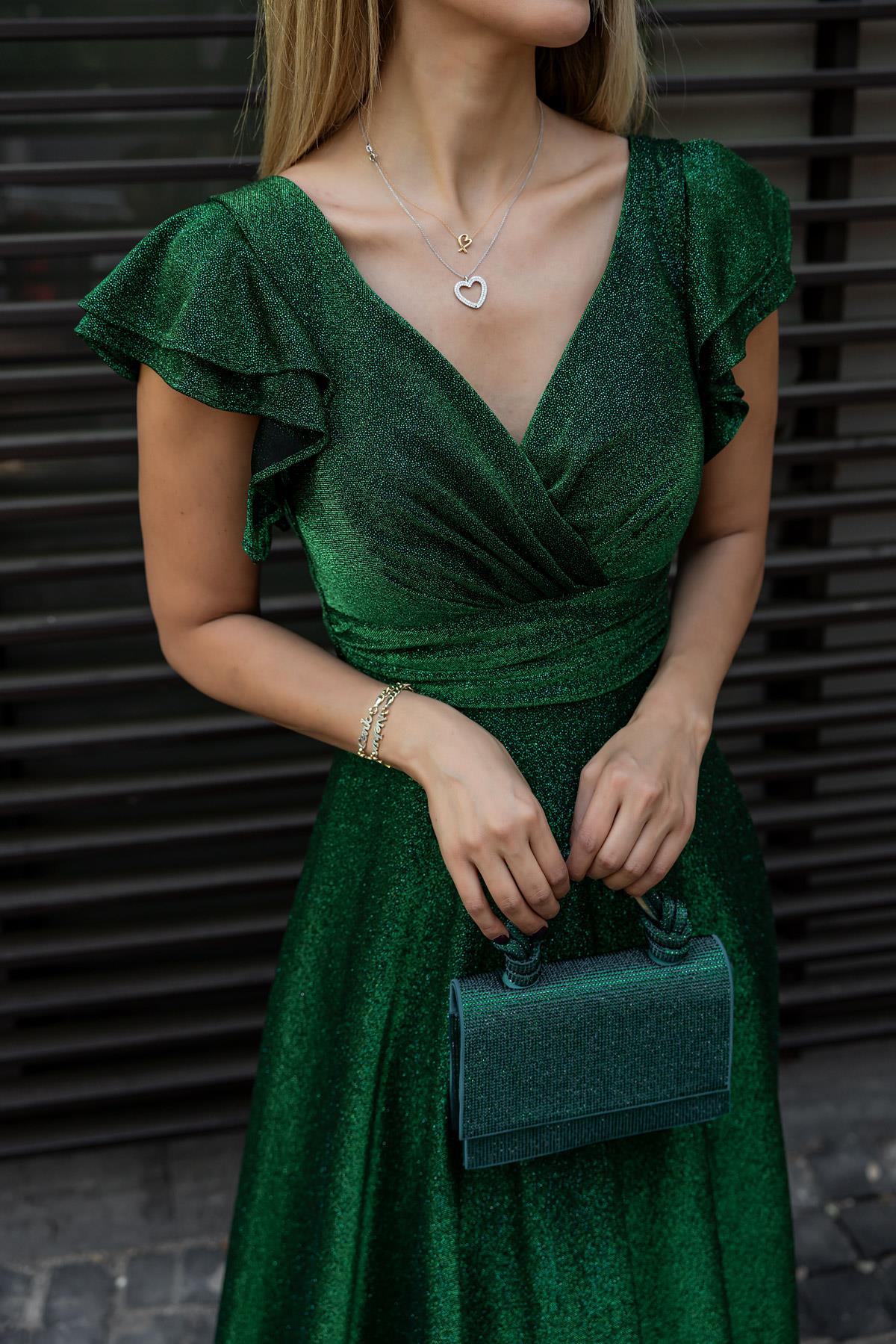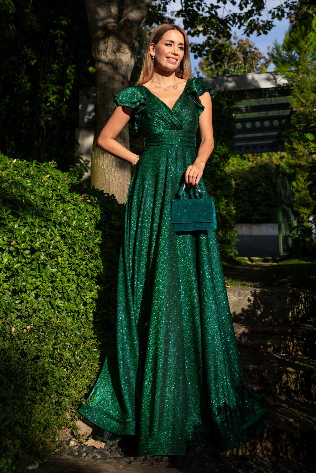 Kruvaze Yaka Volanlı Abiye - ZÜMRÜT YEŞİL (BDW008ABY0020201)