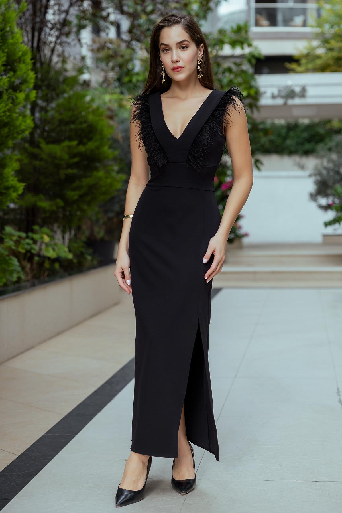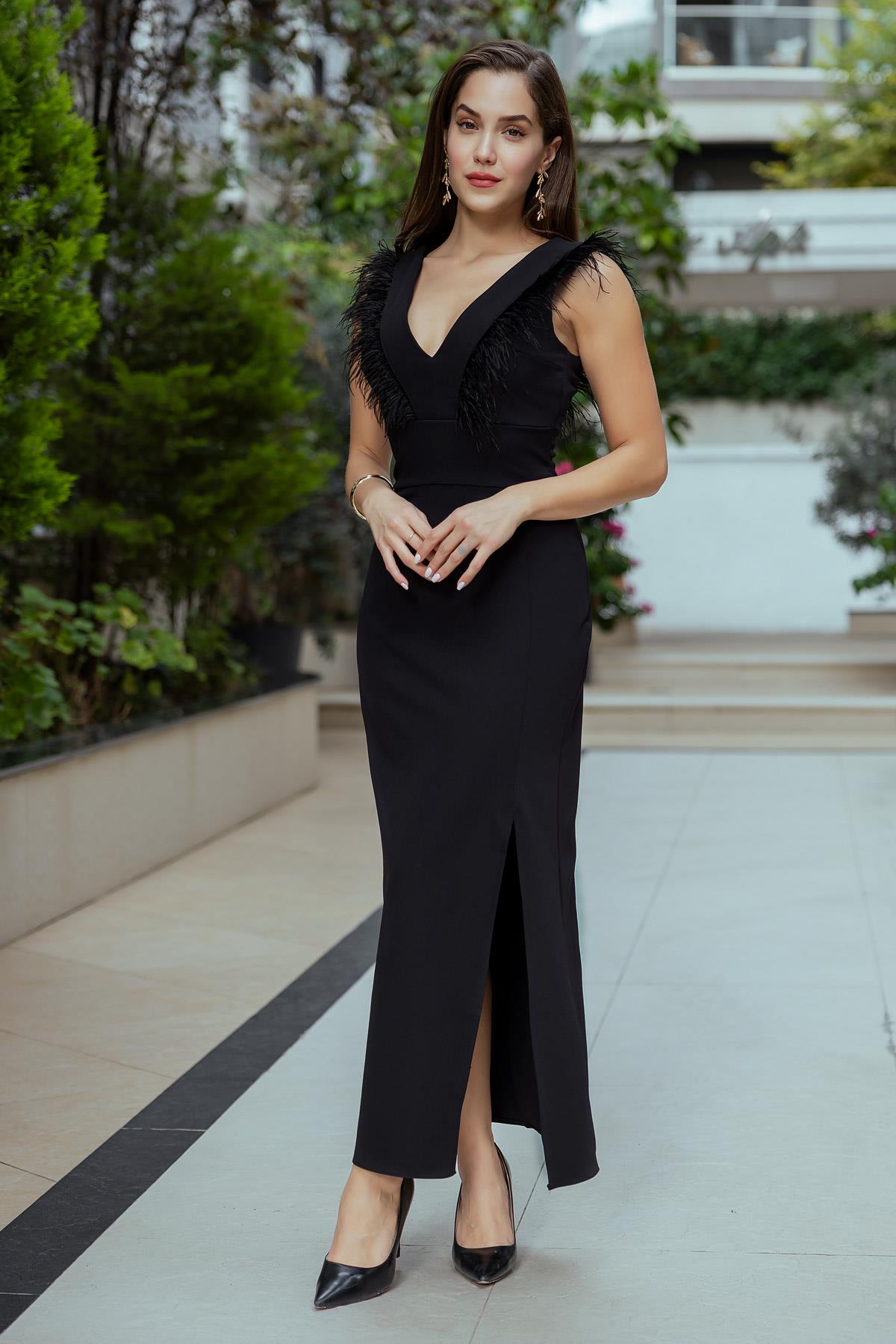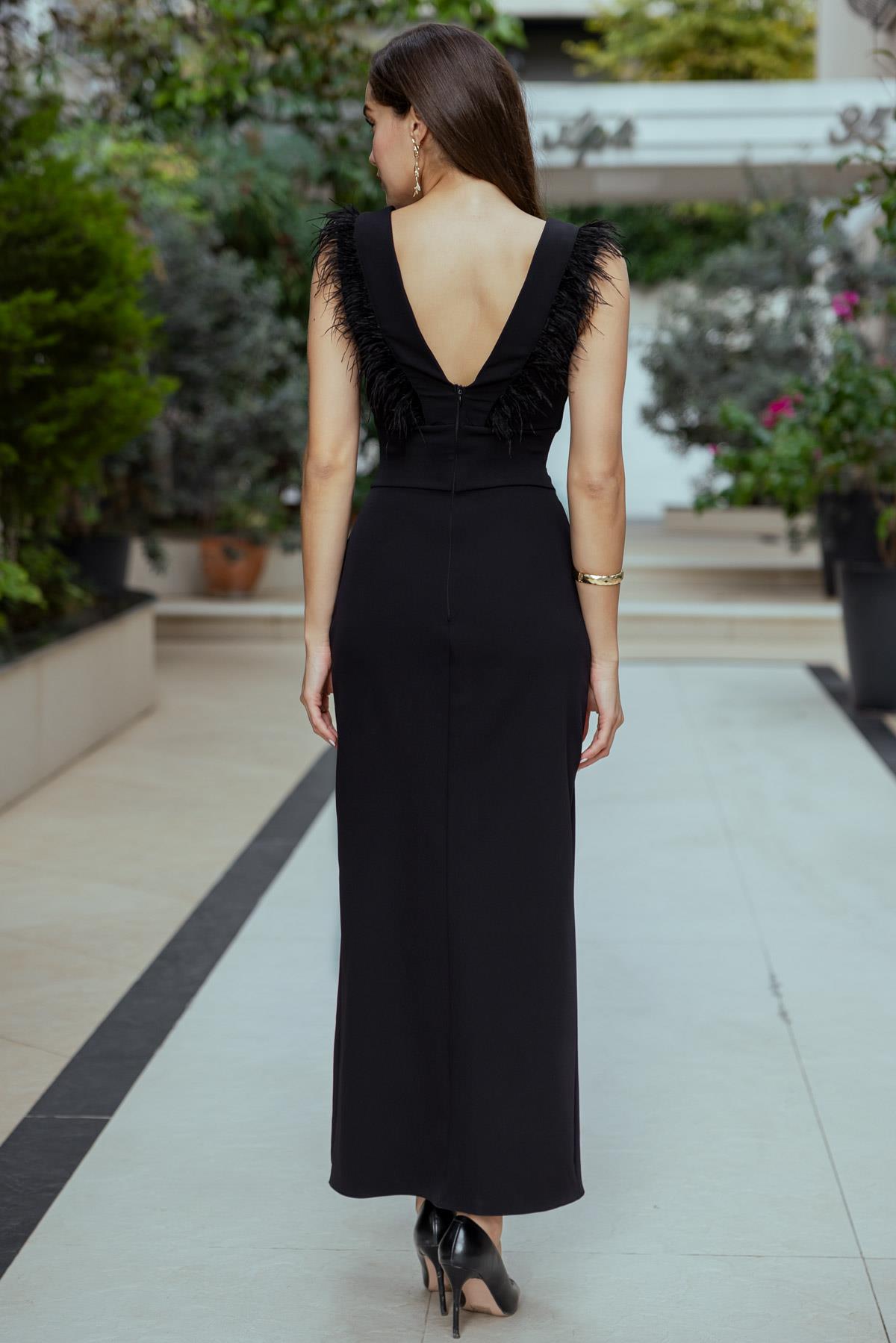 Otriş Detay Uzun Elbise - SİYAH (BEW383ELB0003100)