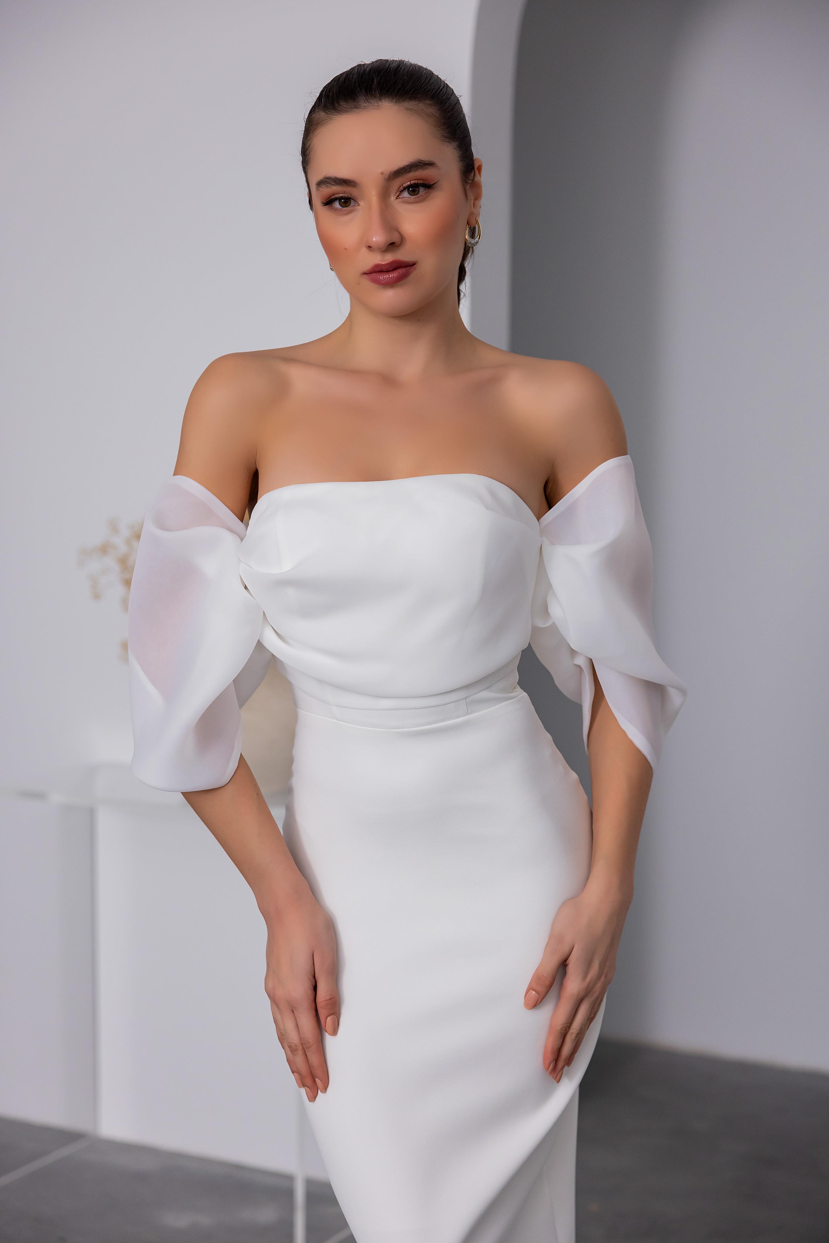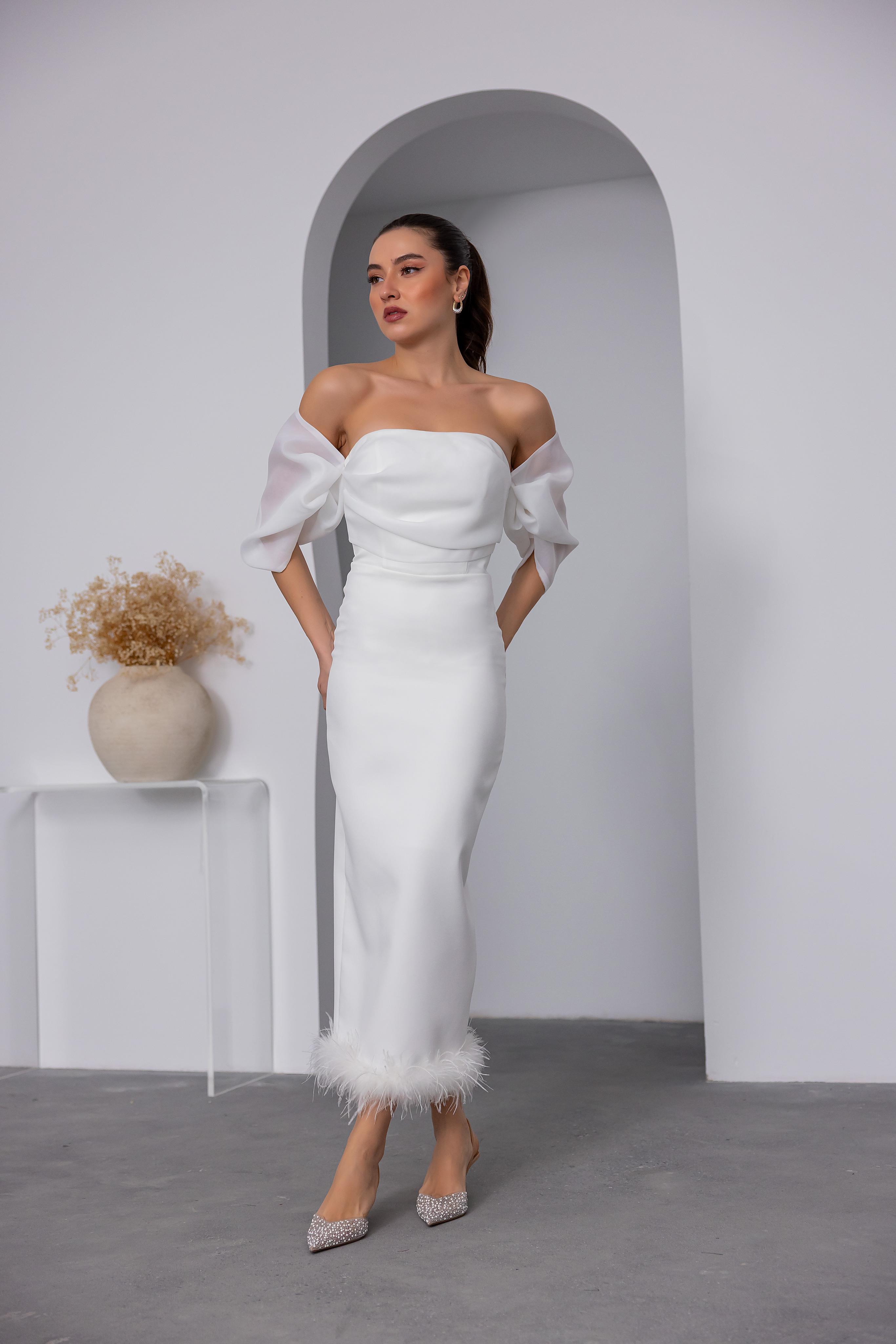 Otriş Detaylı Midi Abiye - BEYAZ (BEW626ABY0010101)