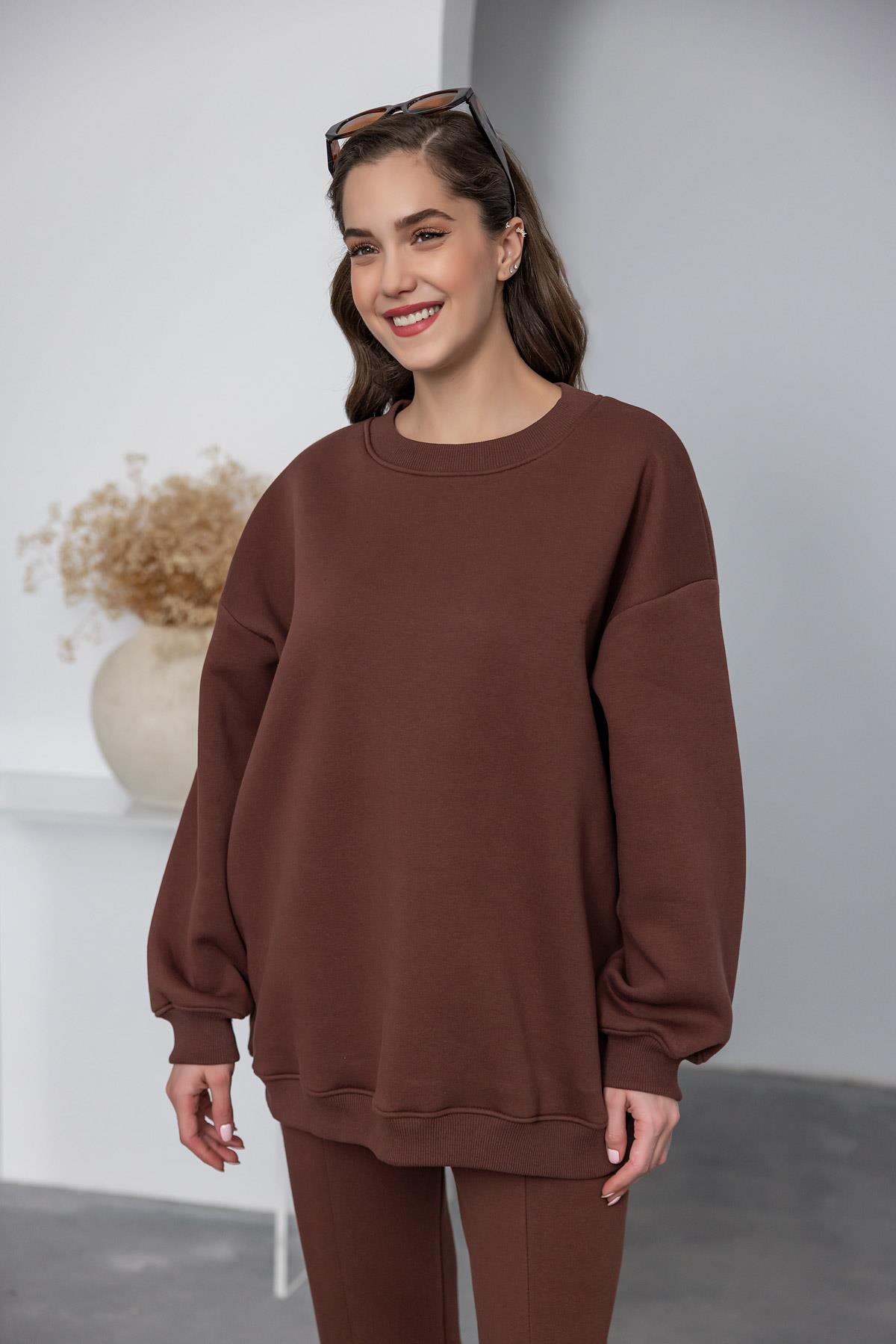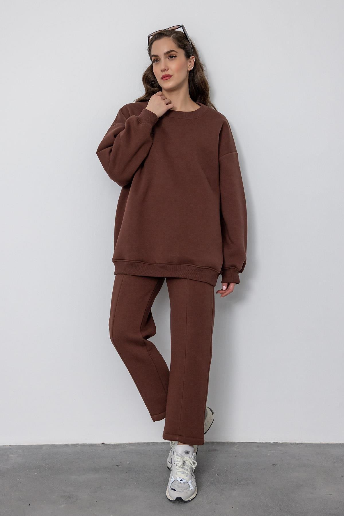 Oversize 2'li Eşofman Takımı - KAHVERENGİ (BEW542TKM0001112)