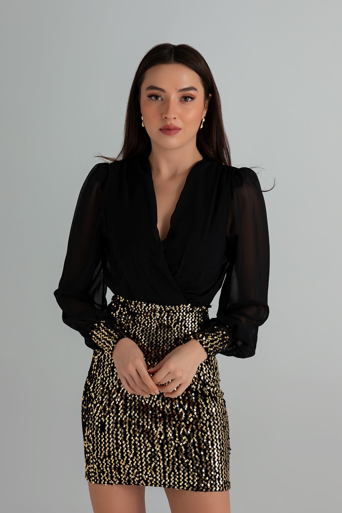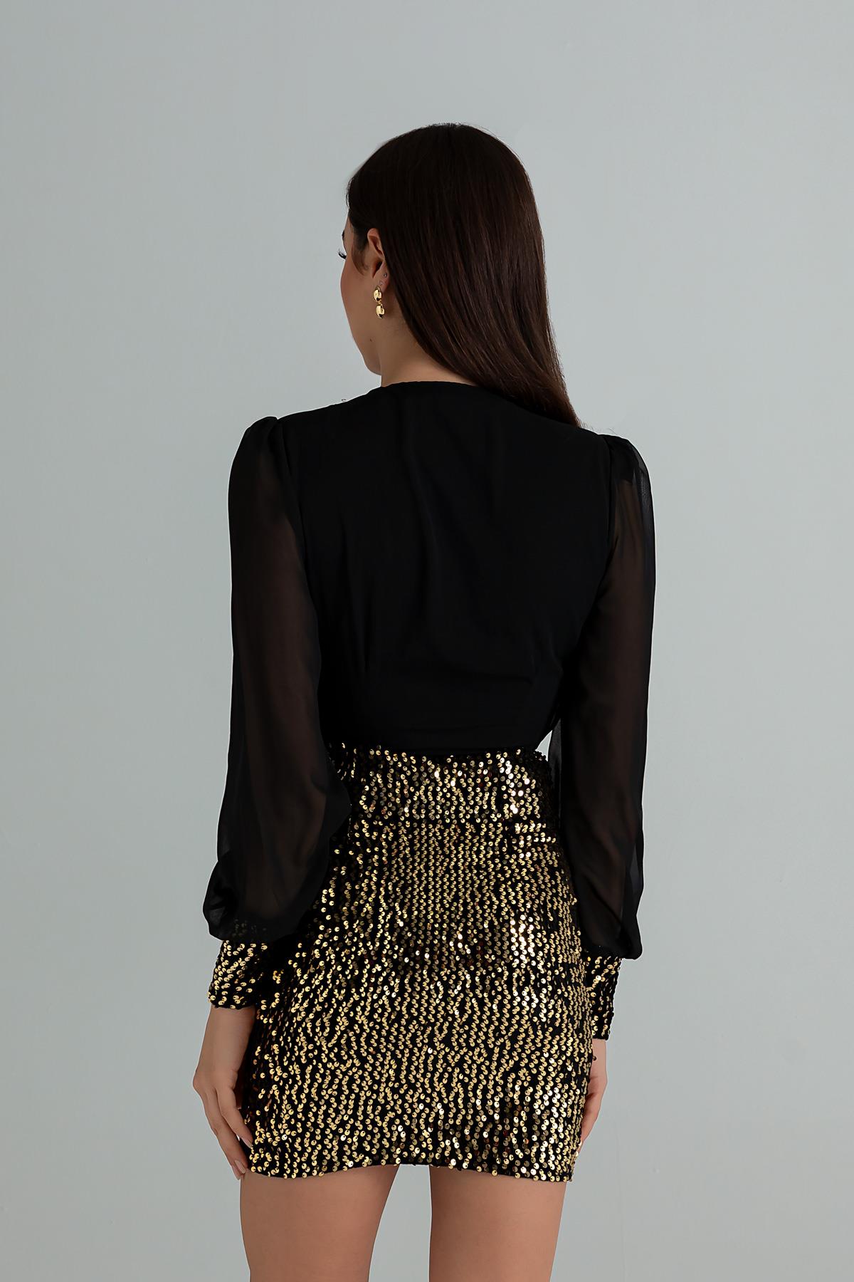 Payet Detaylı Mini Elbise - GOLD (BEW531ELB0041151)