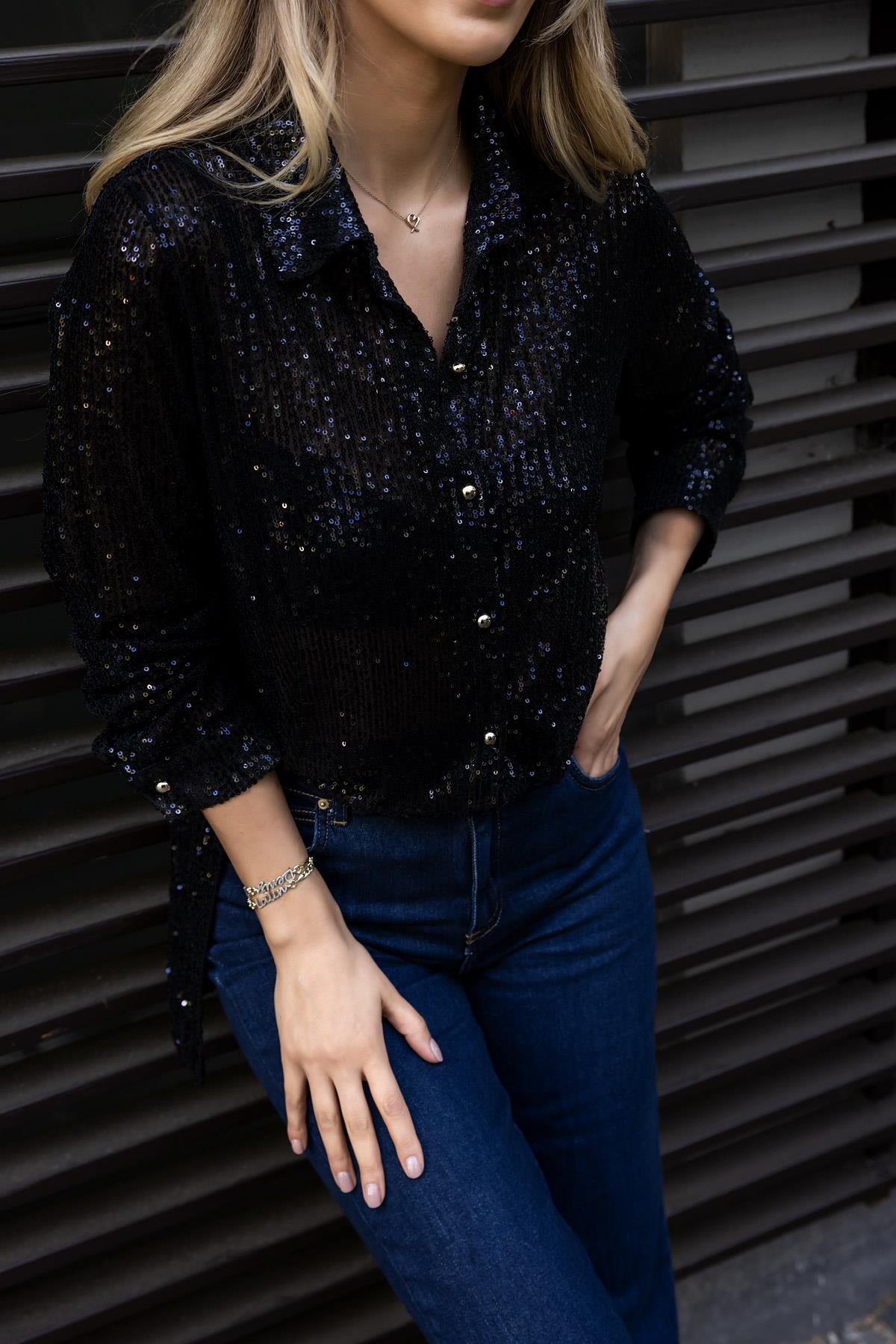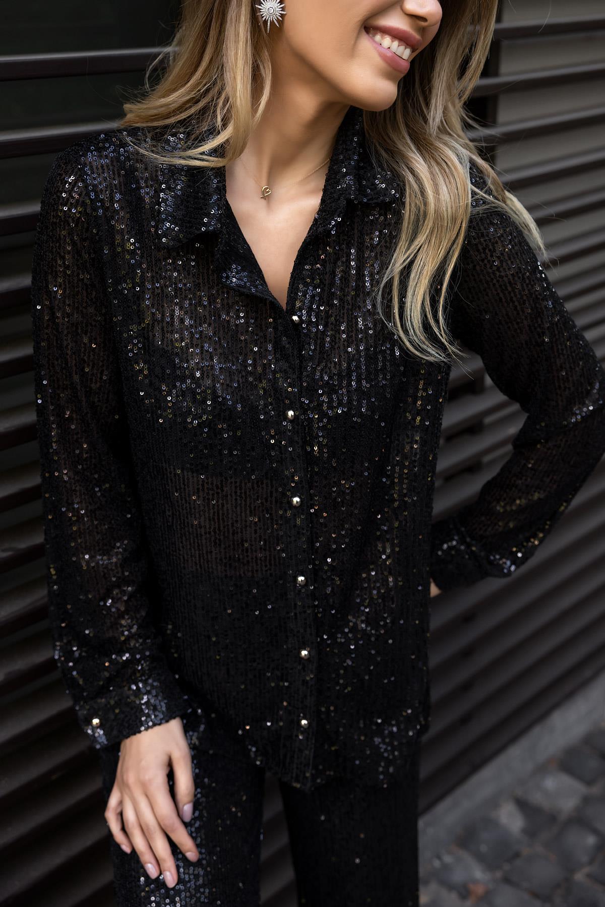 Pul Payetli Gömlek - SİYAH (BEW355GÖM0001100)