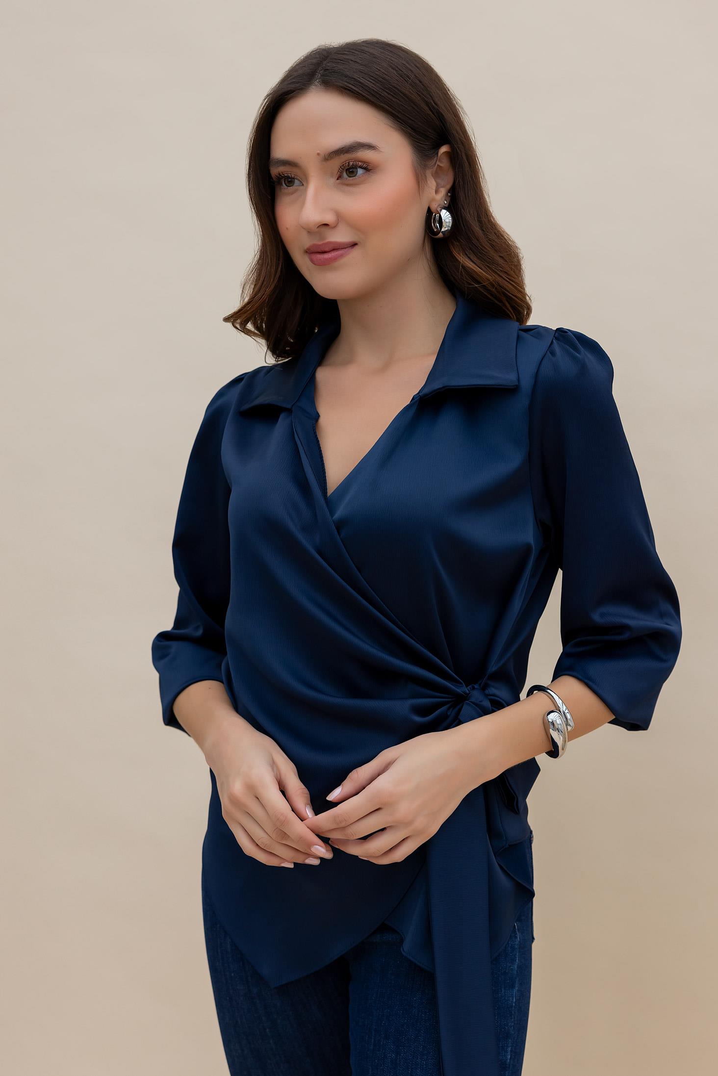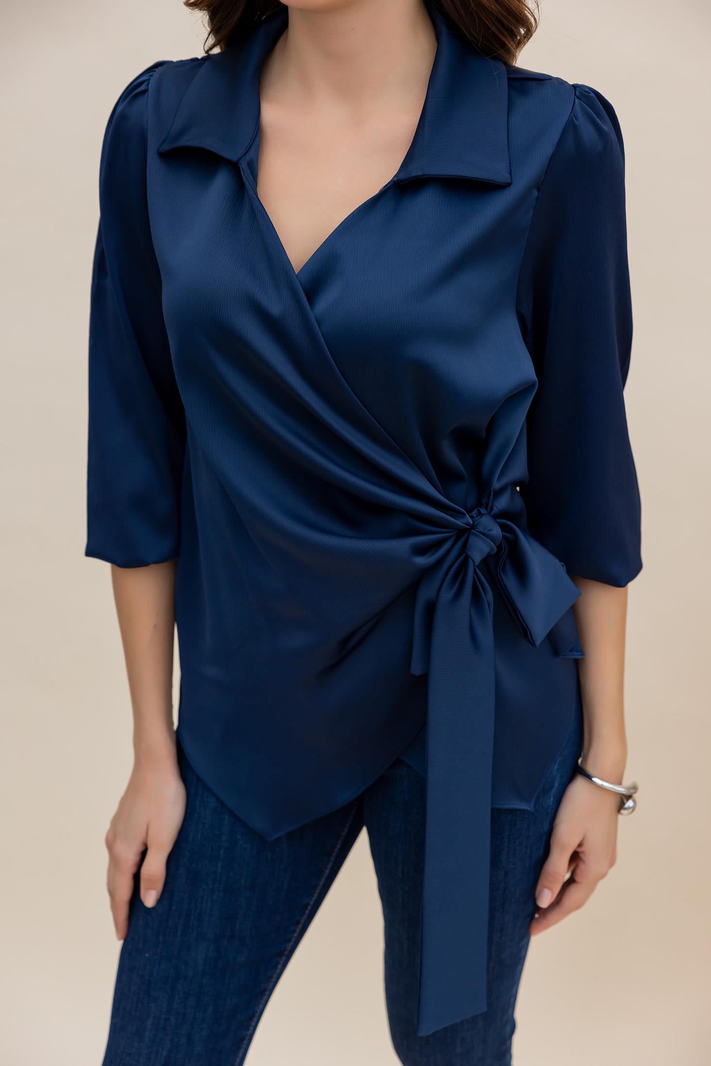 Saten Bağlamalı Bluz - LACİVERT (BDW486BLZ0001110)