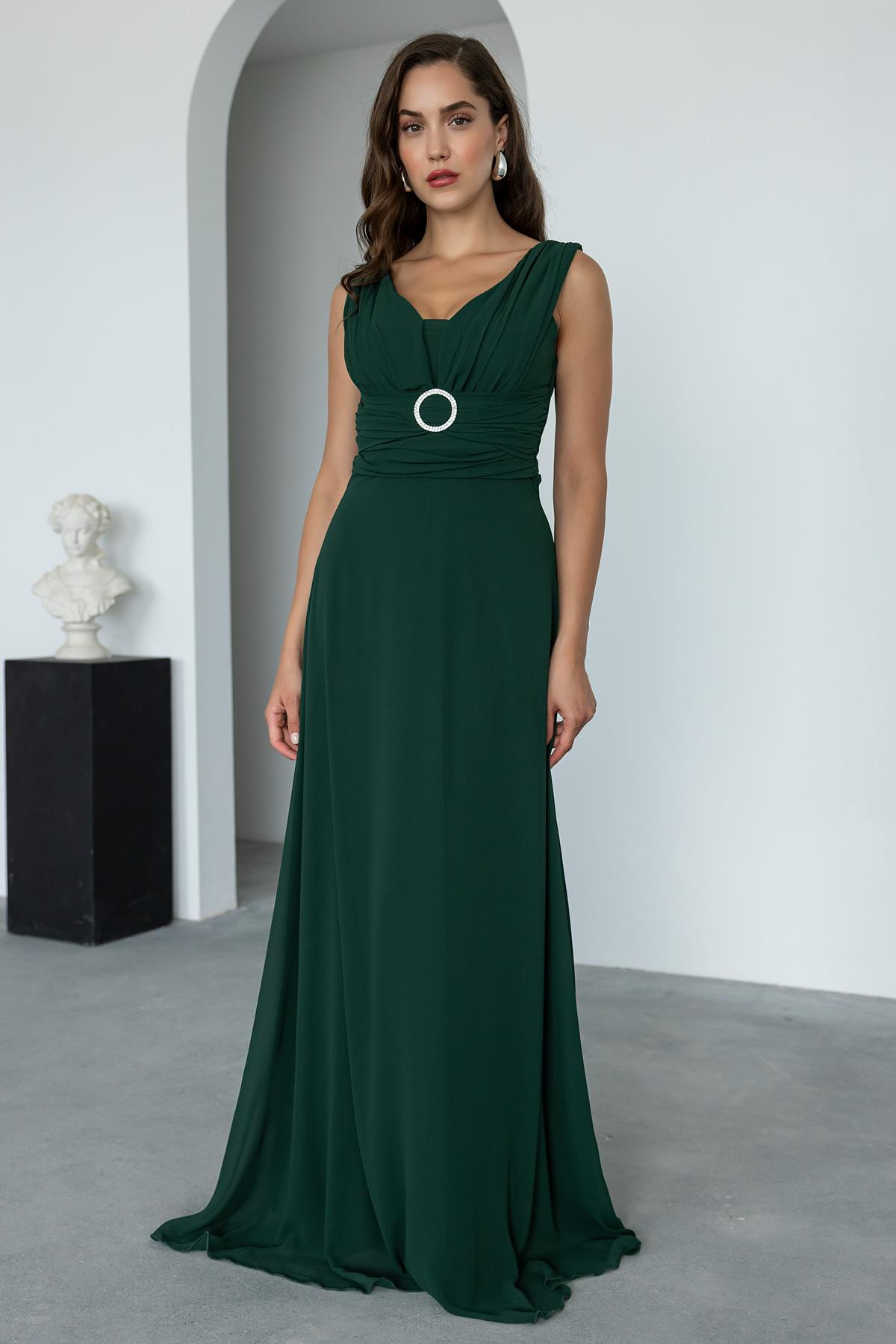 Şifon Kemerli Abiye - ZÜMRÜT YEŞİL (BDS246ABY0003201)