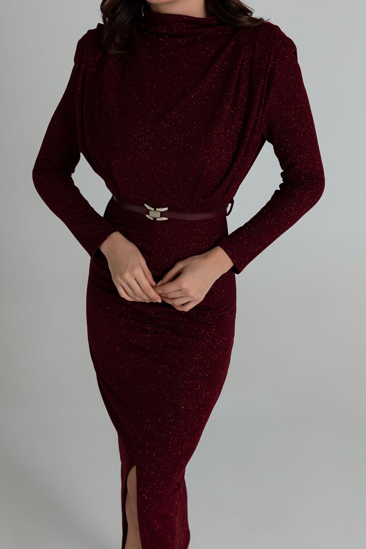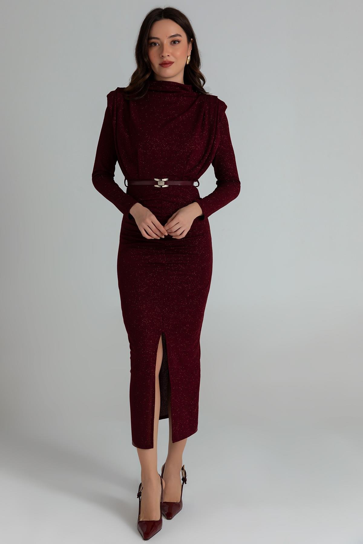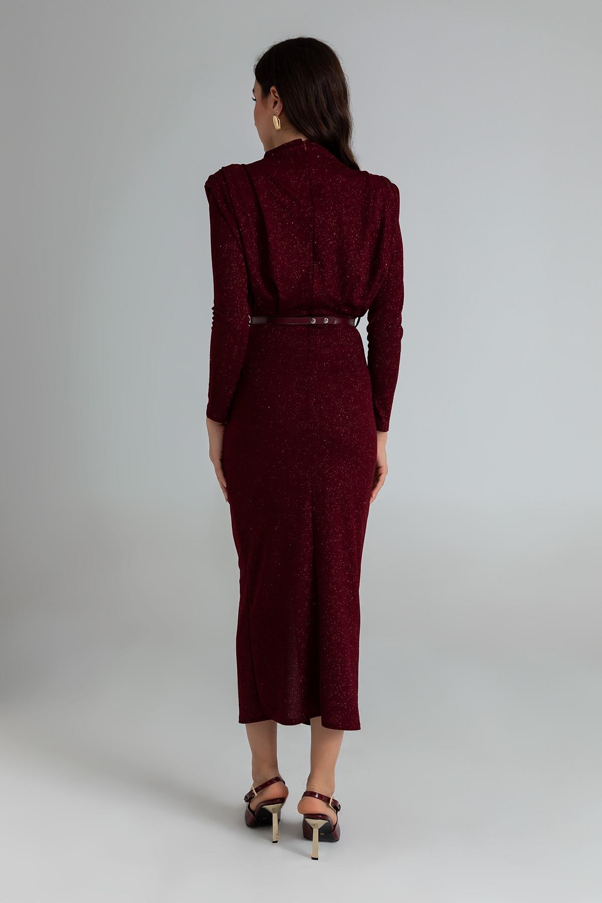Simli Uzun Gece Elbisesi - BORDO (BEW531ELB0020121)